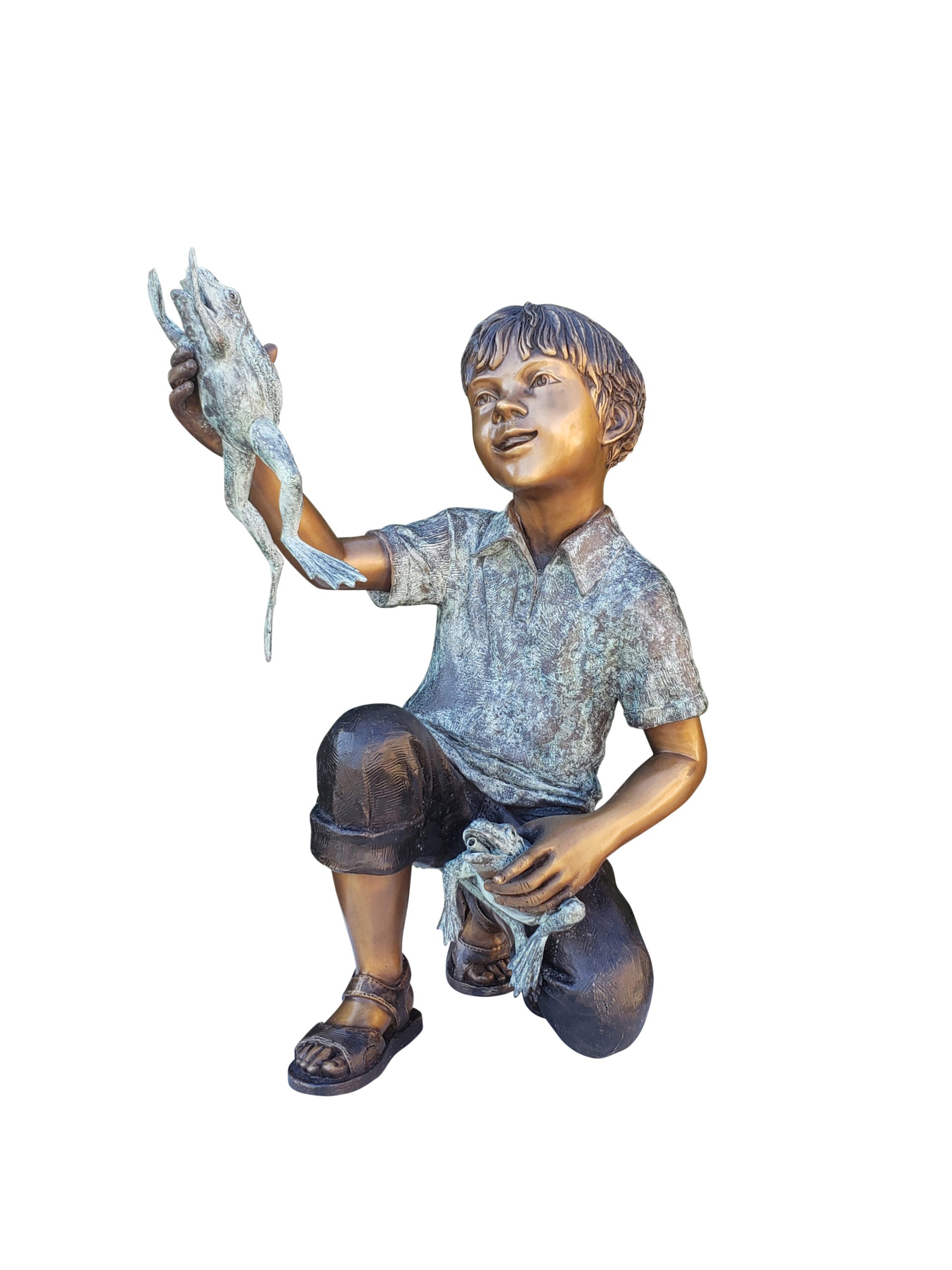 A Little Boy Playing with Two Frogs Bronze Statue Fountain 18" x 16" x 25"H