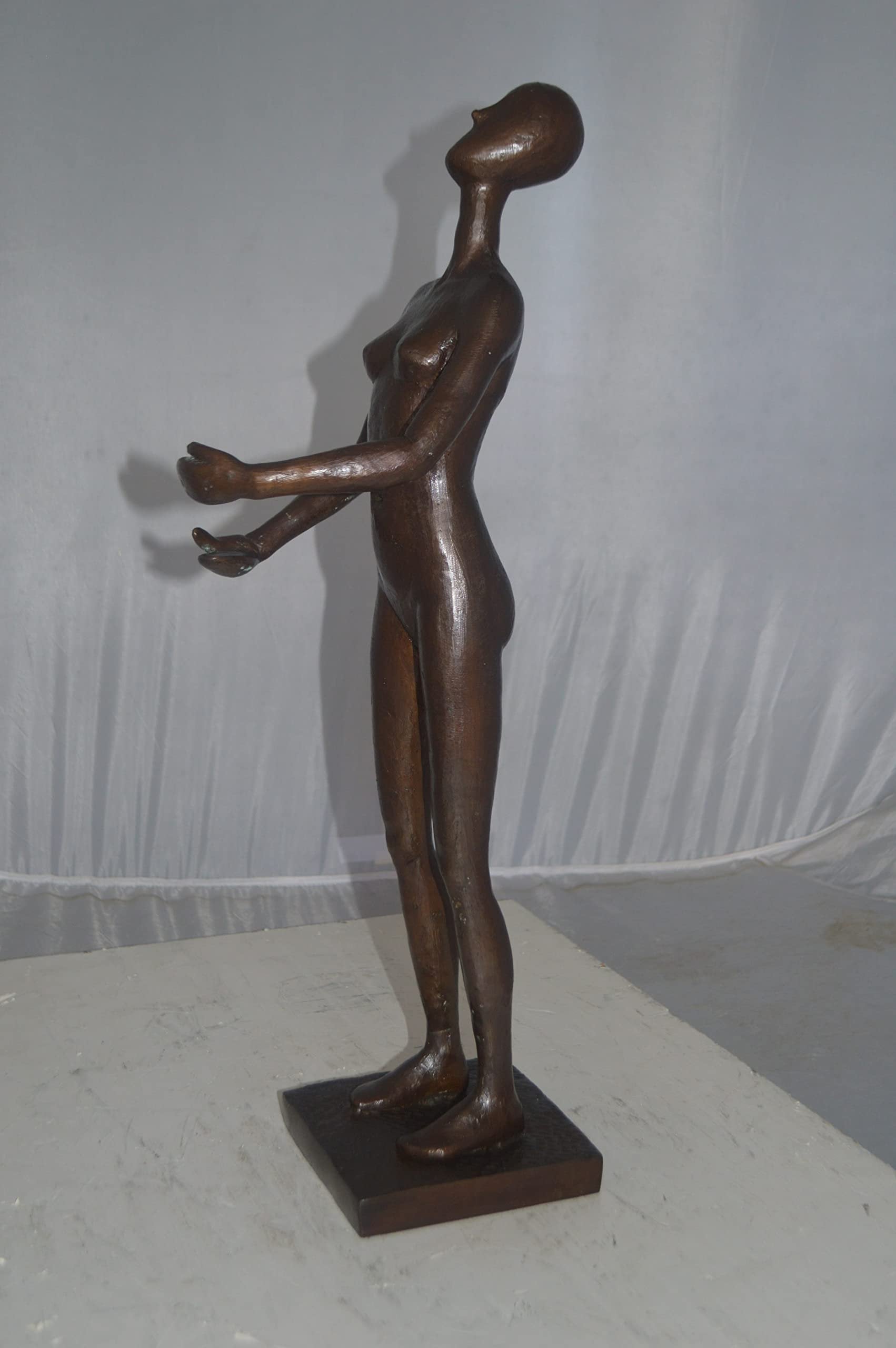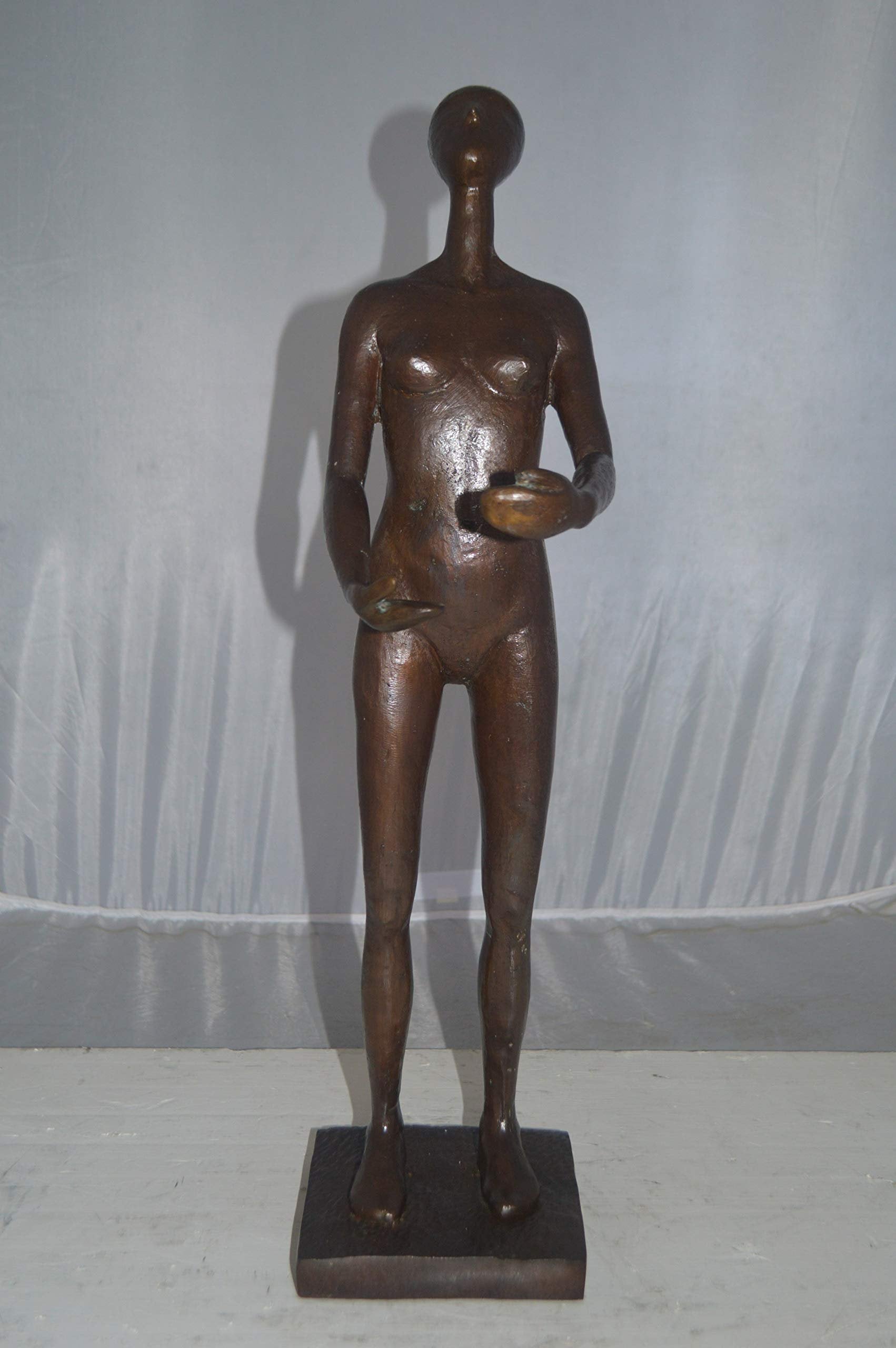 This amazing and creative abstract of a female standing and looking forward. The sculpture is made with the creation of your imagination. The artist captures the girl looking forward as she is trying to say something. This very fine and unique abstract was casted using the ancient old Lost Wax Method stained in brown patina finish for preservation. Handmade from bronze, mounted atop a bronze base shaped as a heavy piece of stone. Size: 6"L x 6"W x 24"H. Weight is: 7Lb
