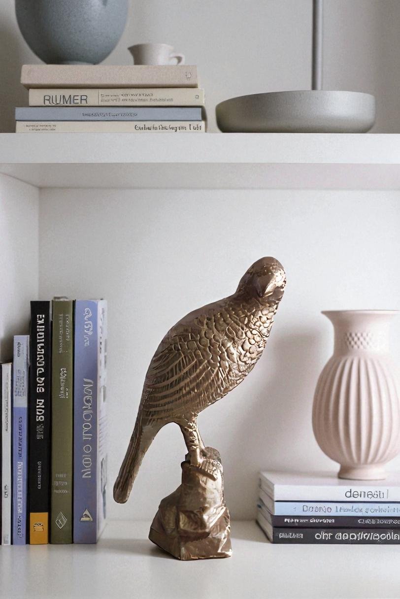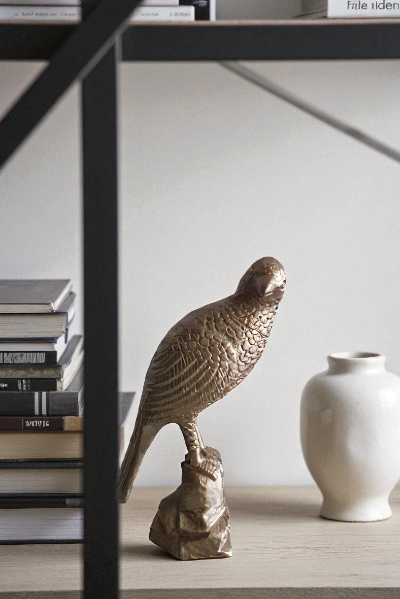 Aluminum Bird on Rock with Gold Finish, Elegant Decor 7" x 5" x 15"H