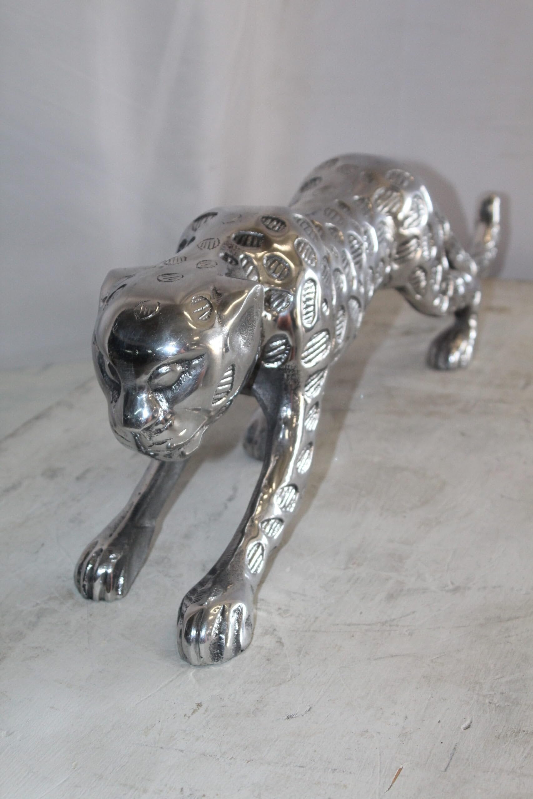 Aluminum Jaguar Statue, bringing graceful elegance to your home décor. Handcrafted and casted with precision, it adds a touch of sophistication to any space. Capture the majestic allure of the jungle with this stunning piece. Size: 24"L x 4"W x 7"H. Weight is: 7Lb