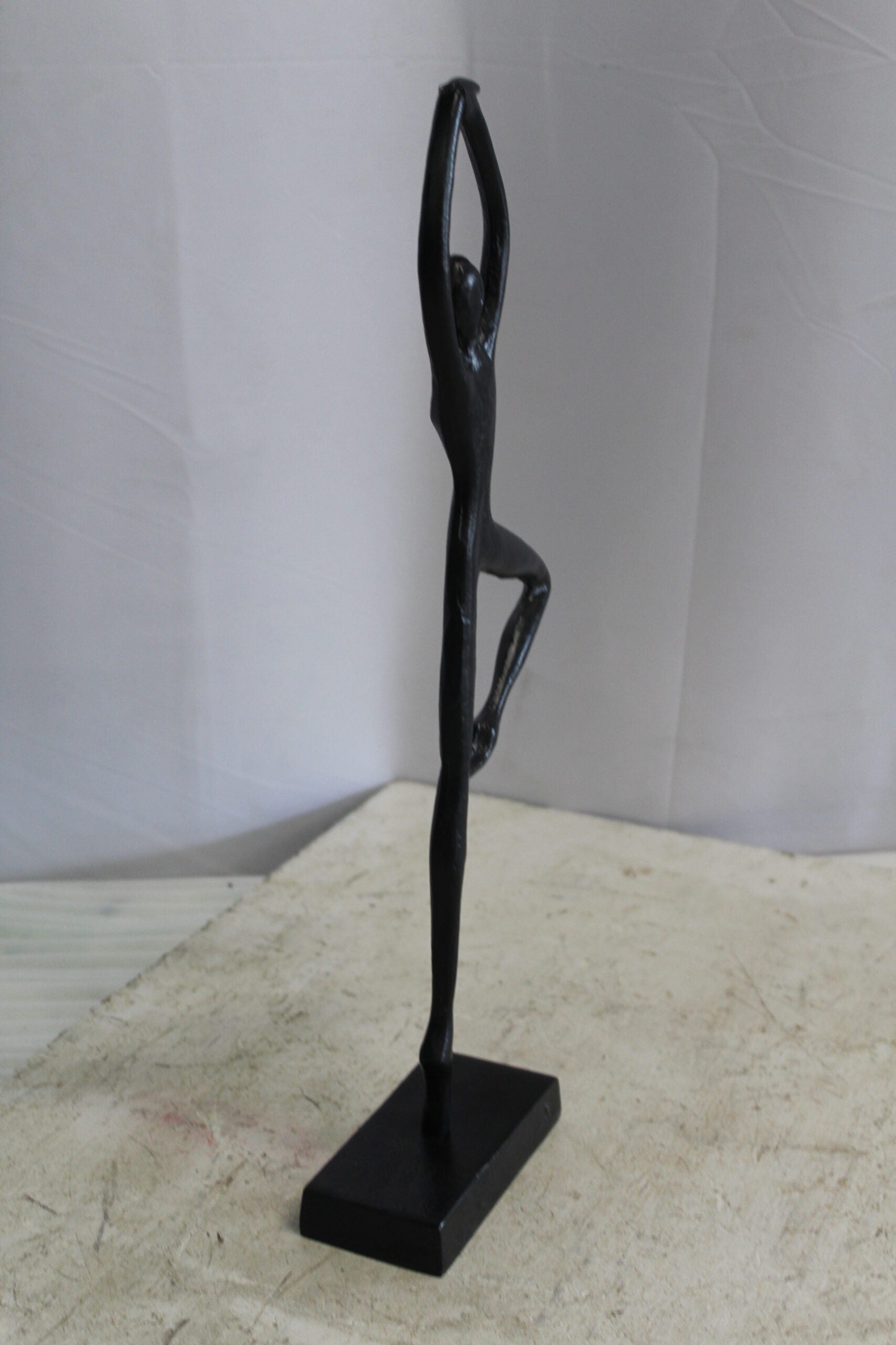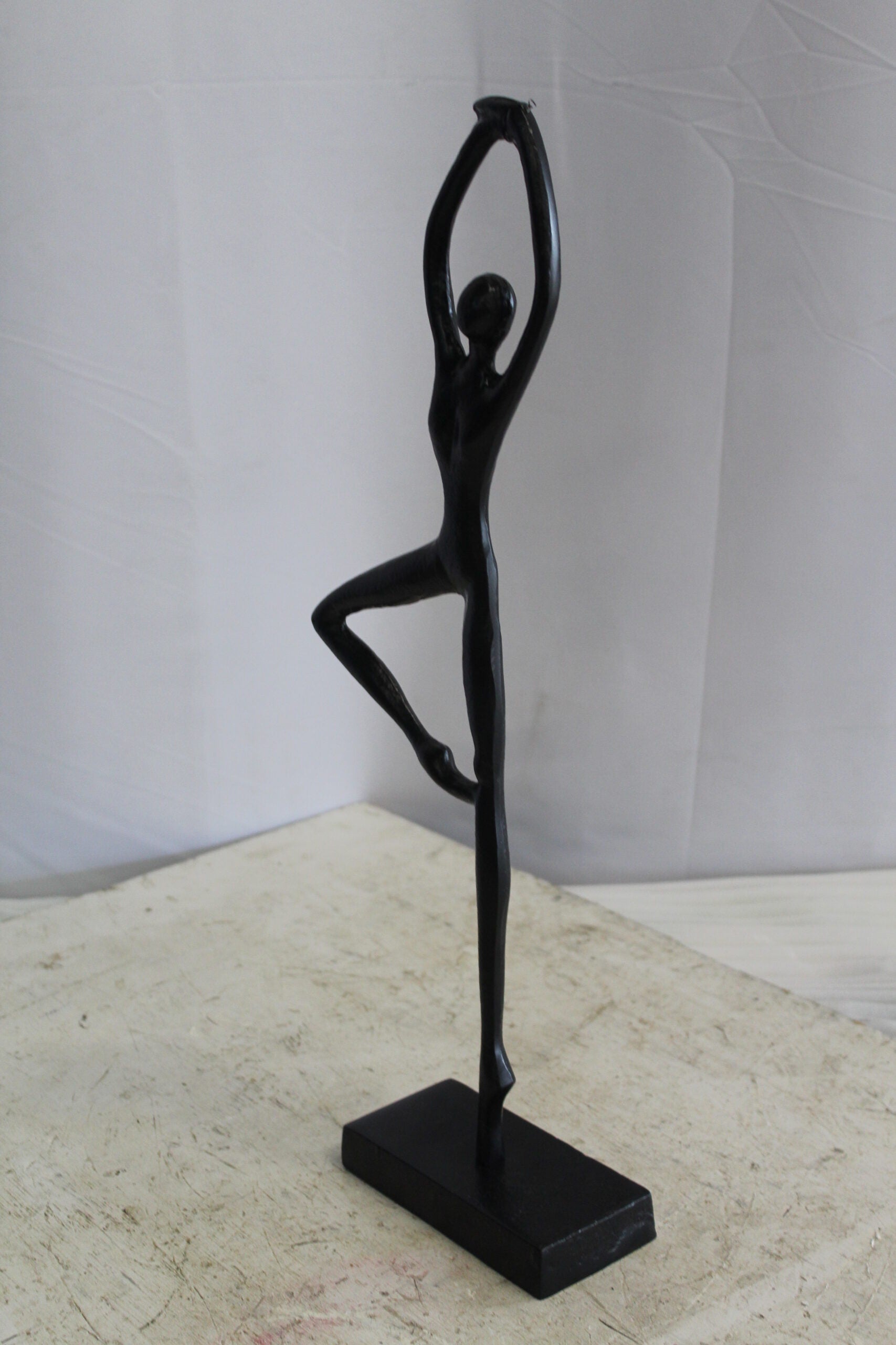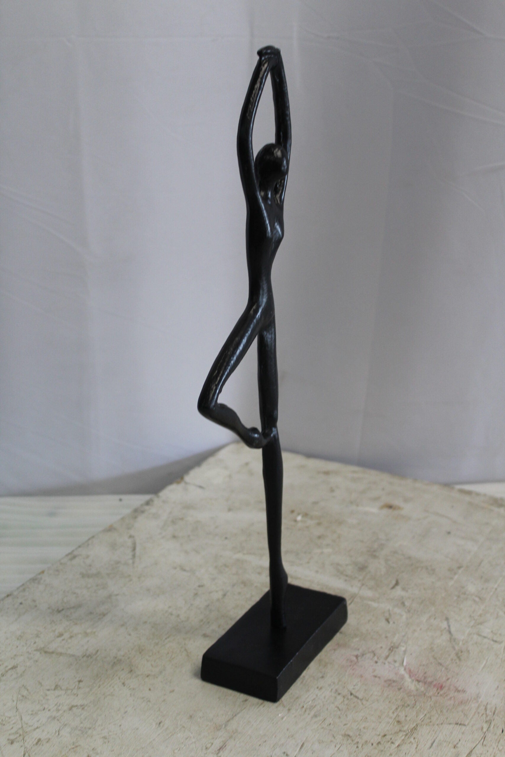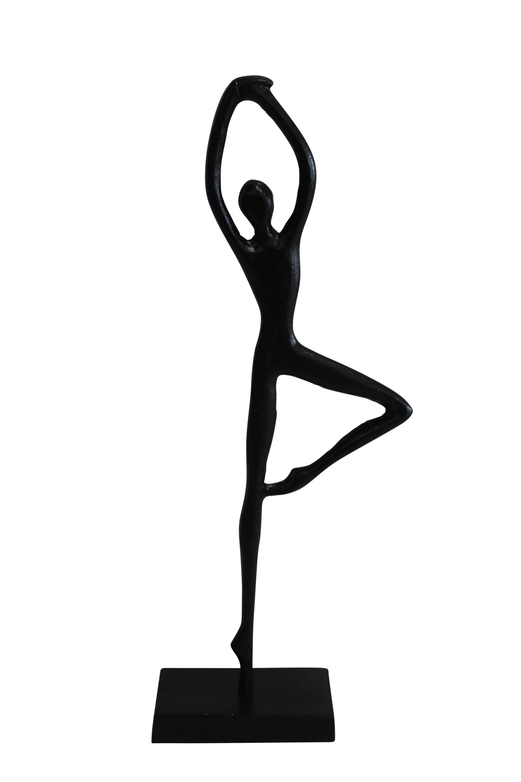 Aluminum tree pose statue for serene yoga decor. Handcrafted with care, exudes tranquility. Perfect for enhancing your yoga space. Durable casting ensures lasting serenity. Size: 7"L x 3"W x 20"H. Weight is: 2Lb