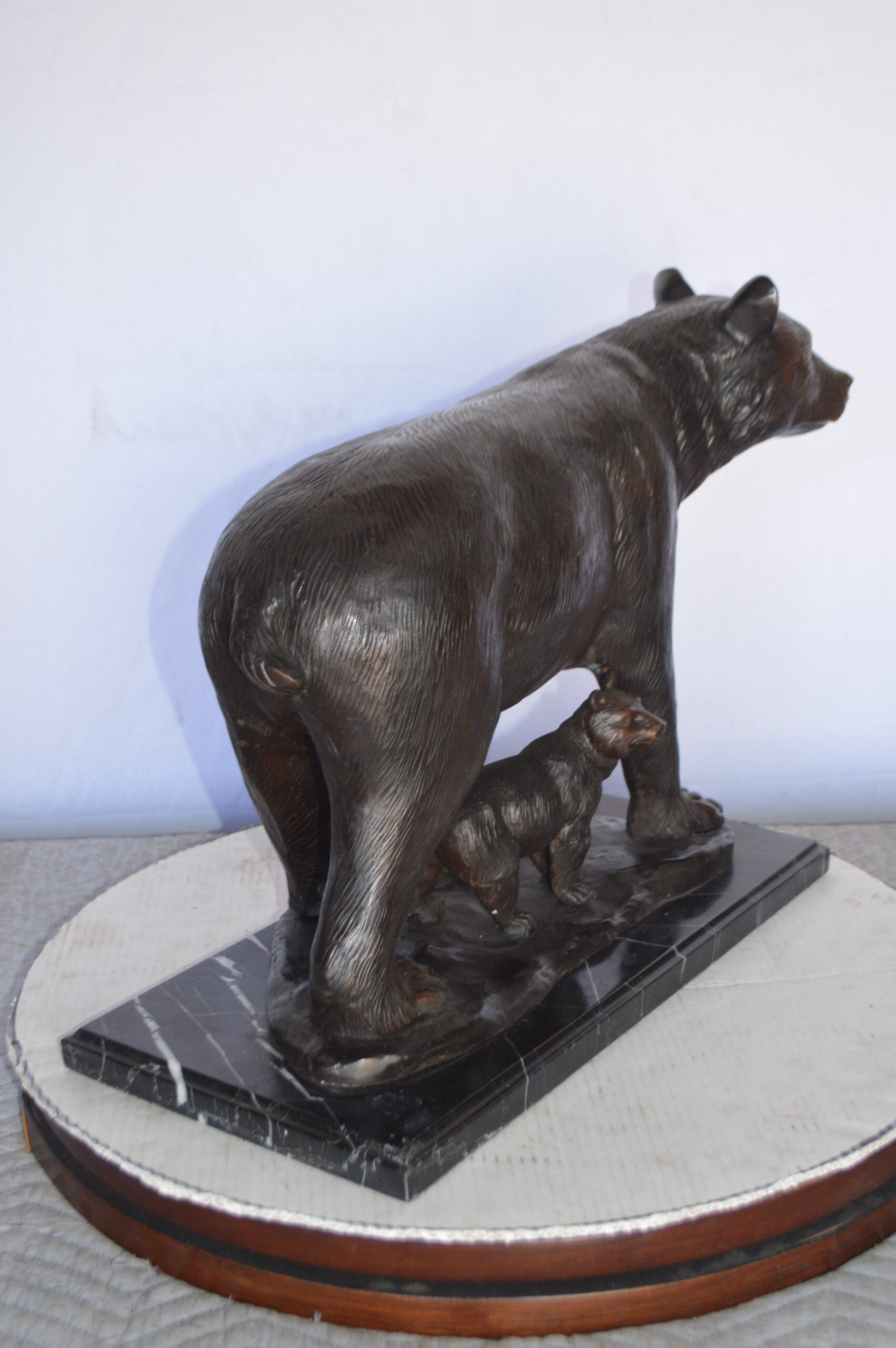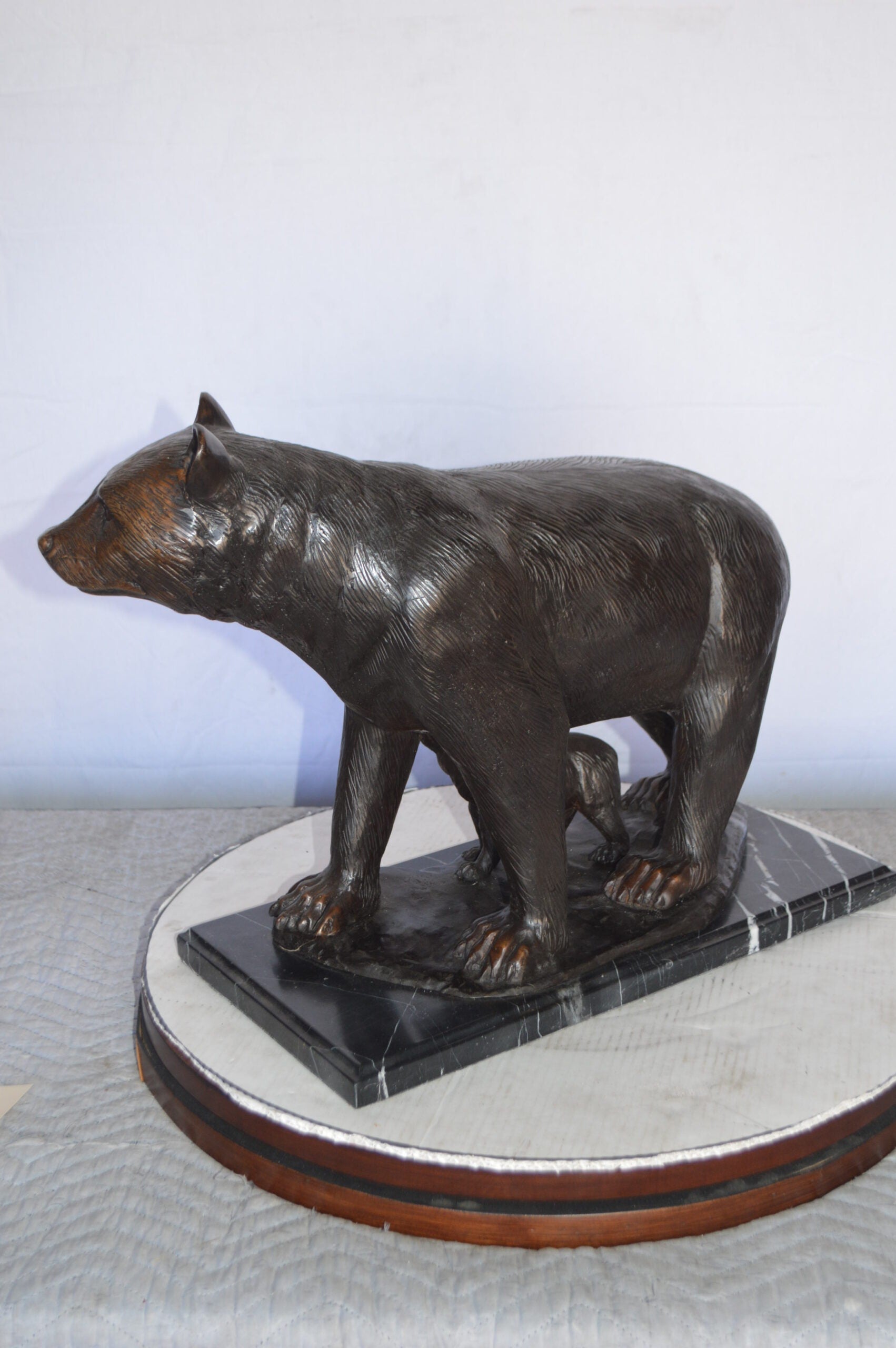 This superb Sculpture depicts a mother Bear protecting her cub. Please be sure to click to View More Images to see additional views of the Sculpture. Add this exotic Bronze bear and Cub Sculpture mounted on a marble base to your home or office décor and your love for wildlife creatures. Size: 26"L x 10"W x 17"H. Weight is: 47Lb