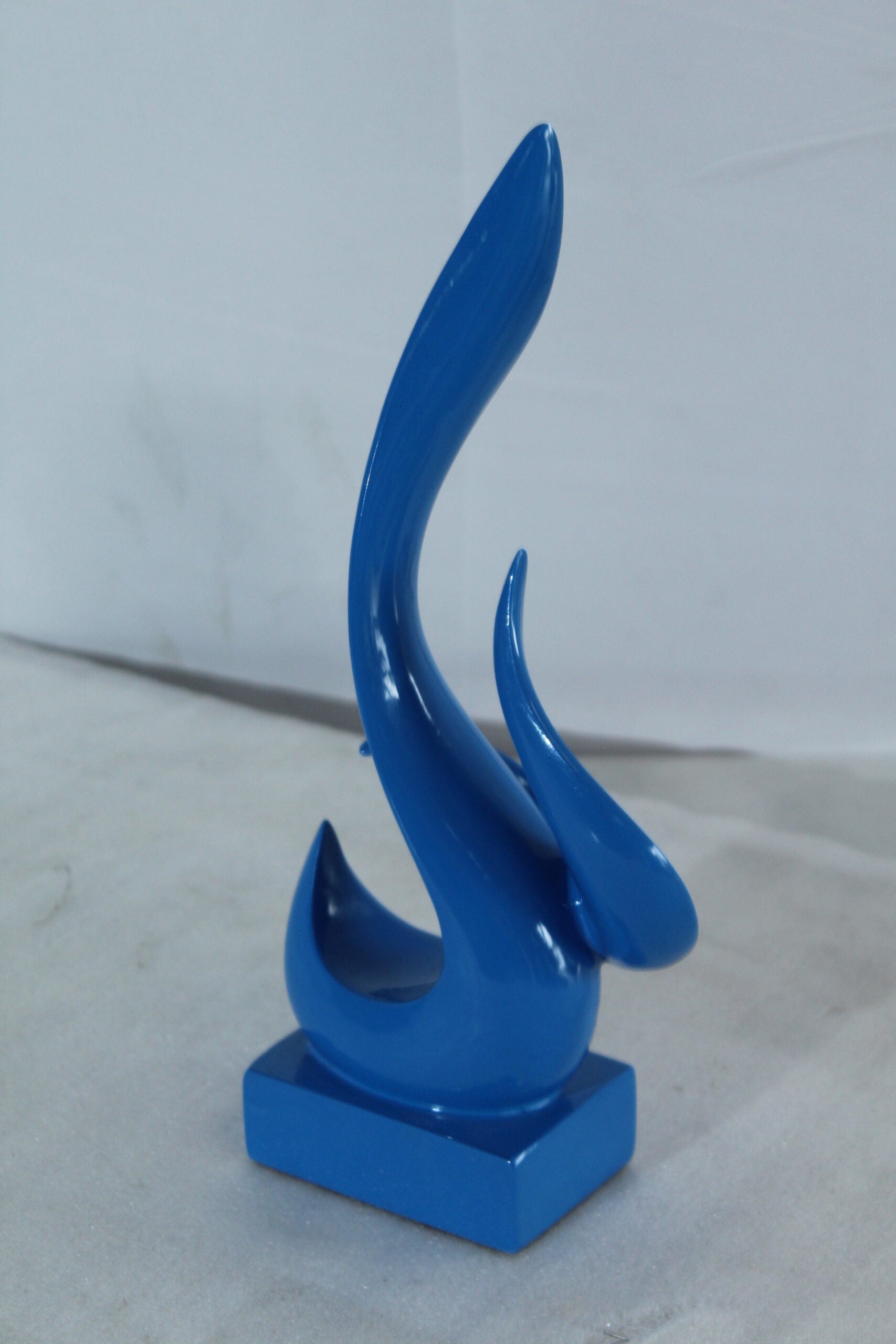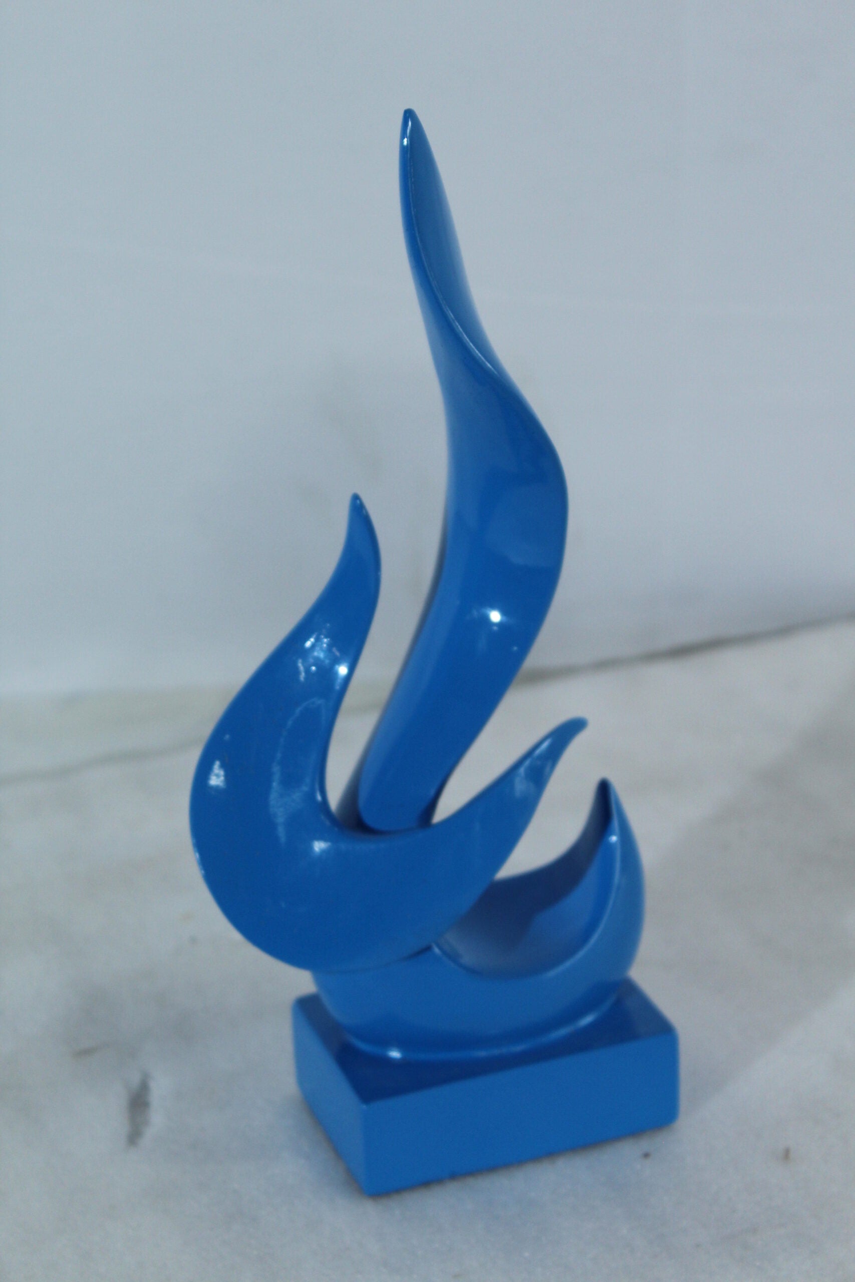 This eye-catching resin sculpture features an abstract flame-like design in bold blue. With sleek curves and a glossy finish, it adds a dynamic and modern touch to any room or office. Crafted from high-quality resin, this artistic piece serves as a stylish accent or a thoughtful gift for lovers of contemporary decor. Size: 6"L x 3"W x 12"H. Weight: 2Lb