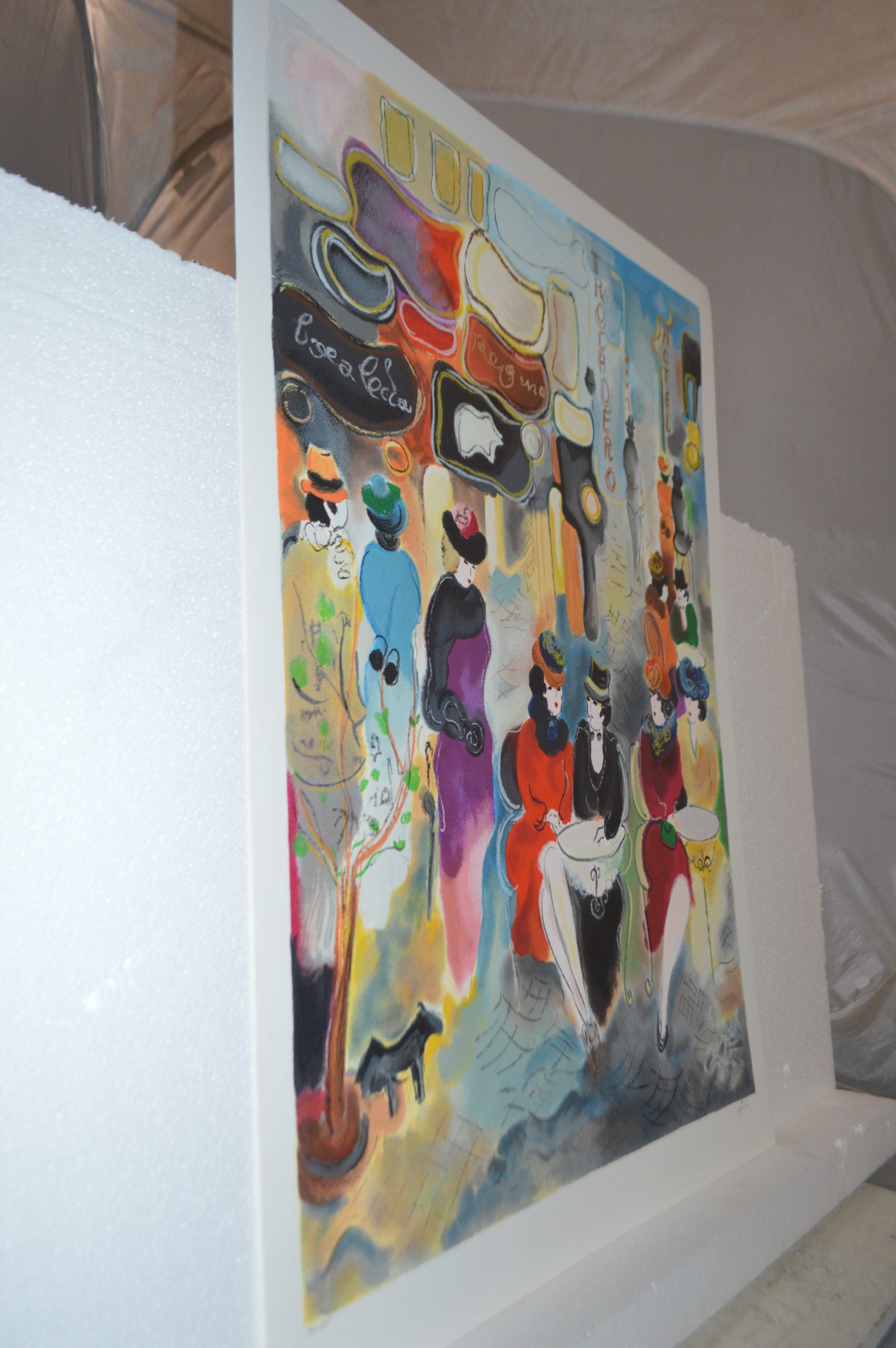 A beautiful painting, of Boea Cafe serigraph by Zule Moskowitz, who was born in Argentina and grew up in Buenos Aires. Growing up in a city affectionately dubbed the "Paris of South America,” Zule was greatly moved and inspired by the city's most famous artist of the time, Kinkila Martin. In 1962, moved across the world to the land of Israel. With a bustling career, Zule's dream of becoming an established and successful artist has come true. Size: 31"L x 23"W, Weight is: 1Lb.