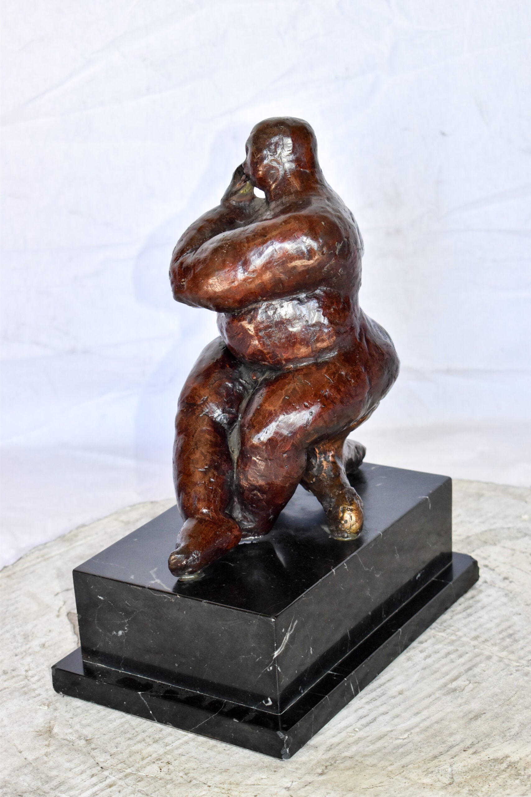 Botero Replica of Art Nude Man Playing the Flute Bronze Statue 10" x 7" x 11"H