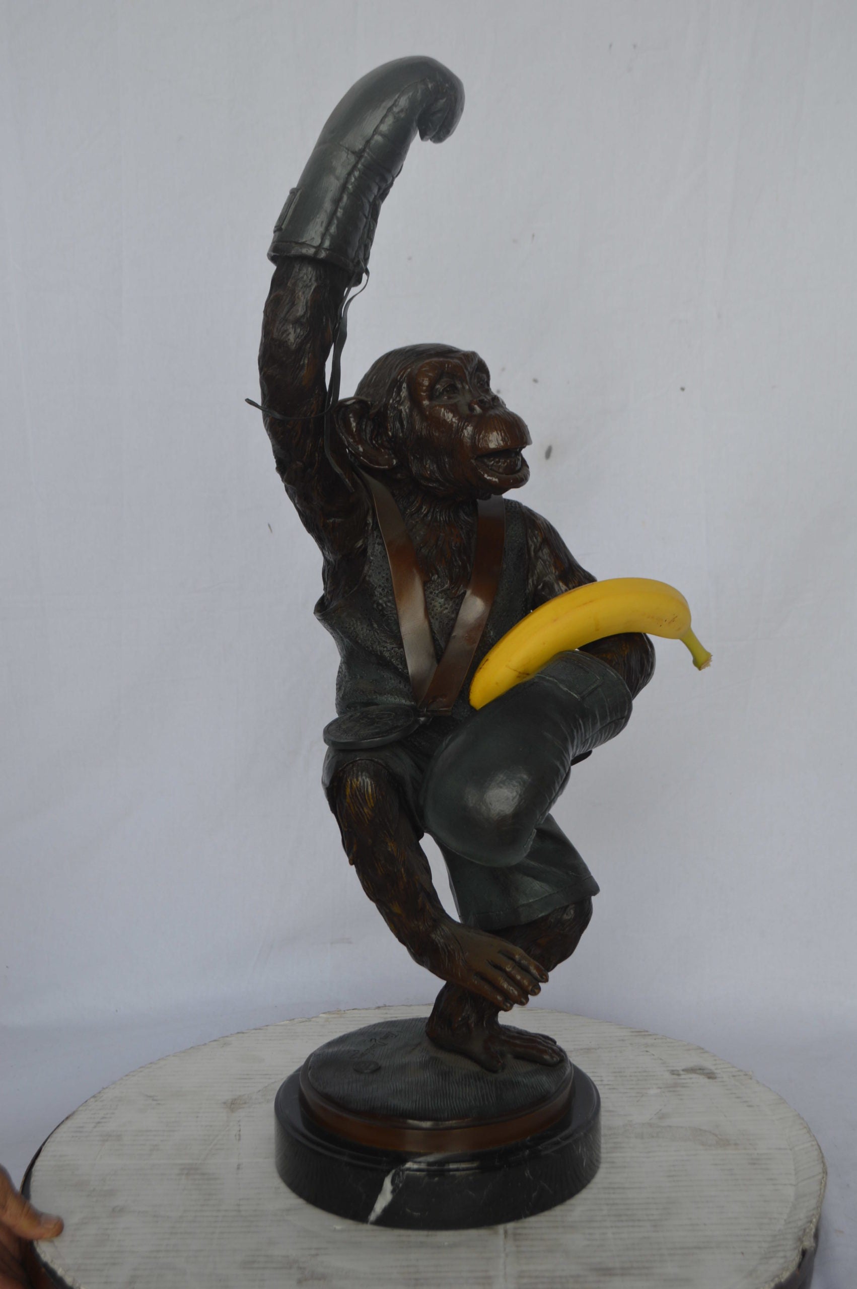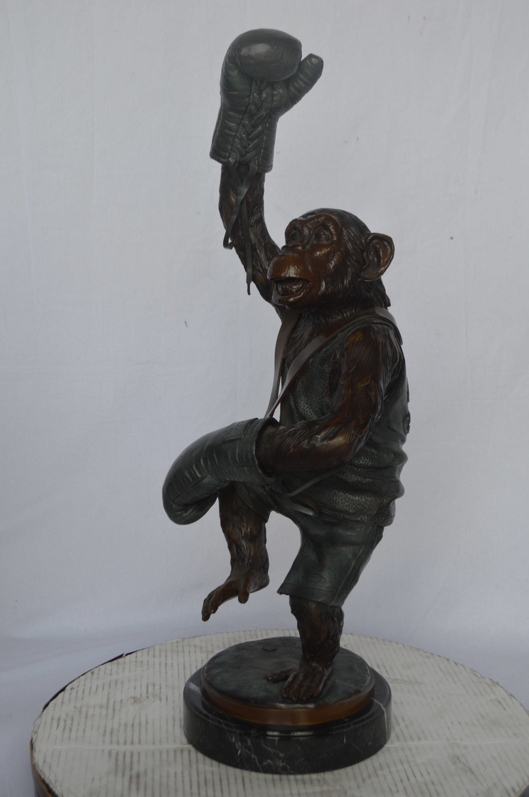 Nifao Boxing Monkey Bronze Statue - Humorous Bronze Monkey Sculpture - Size: 10"L x 12"W x 33"H.