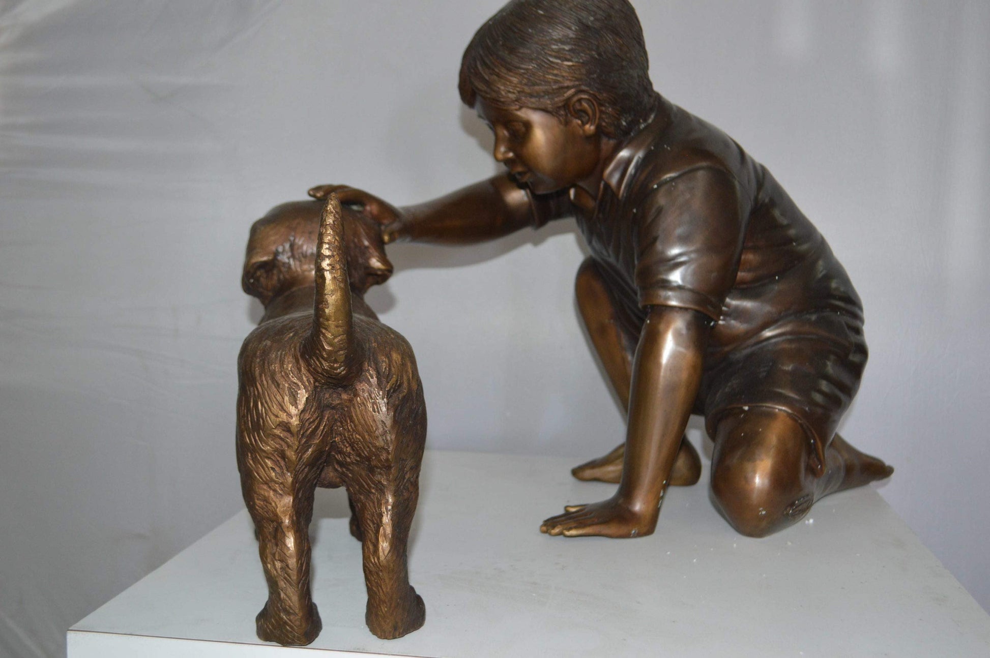 Boy and Dog Bronze Statue - Size: 30"L x 18"W x 18"H.