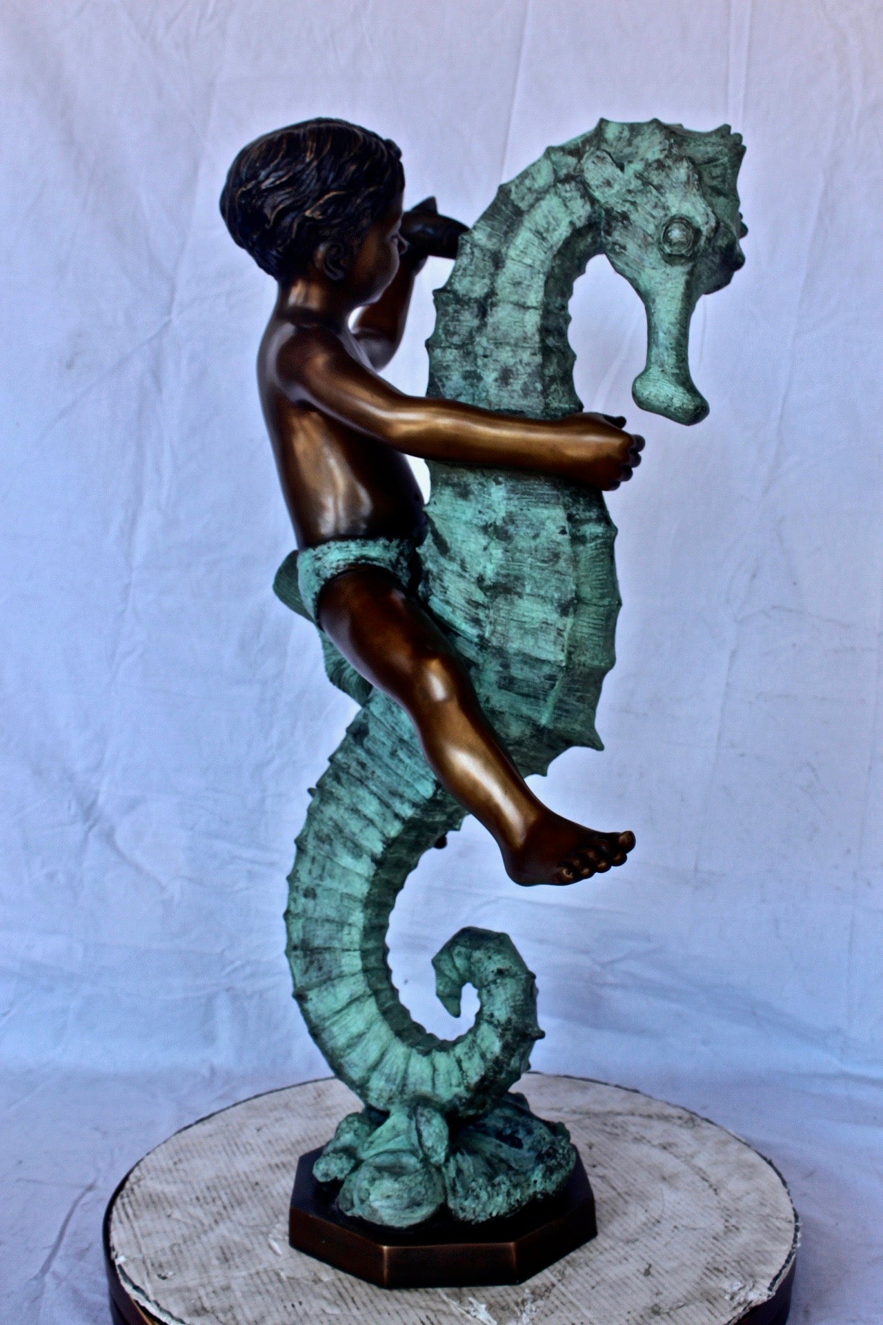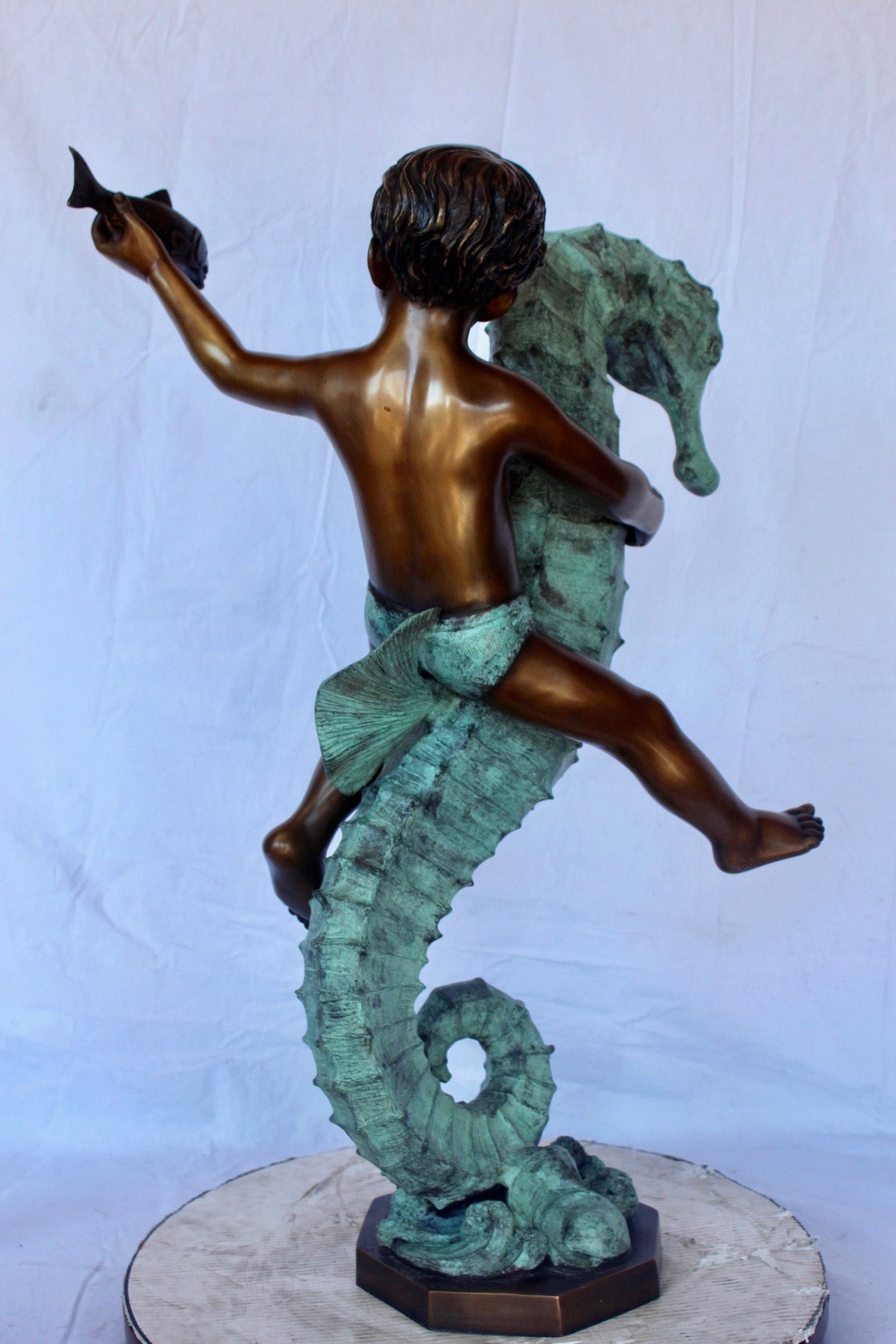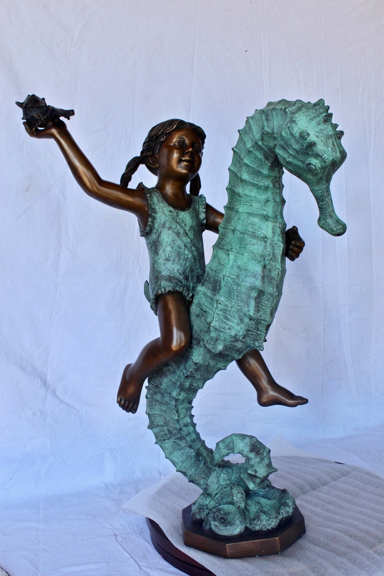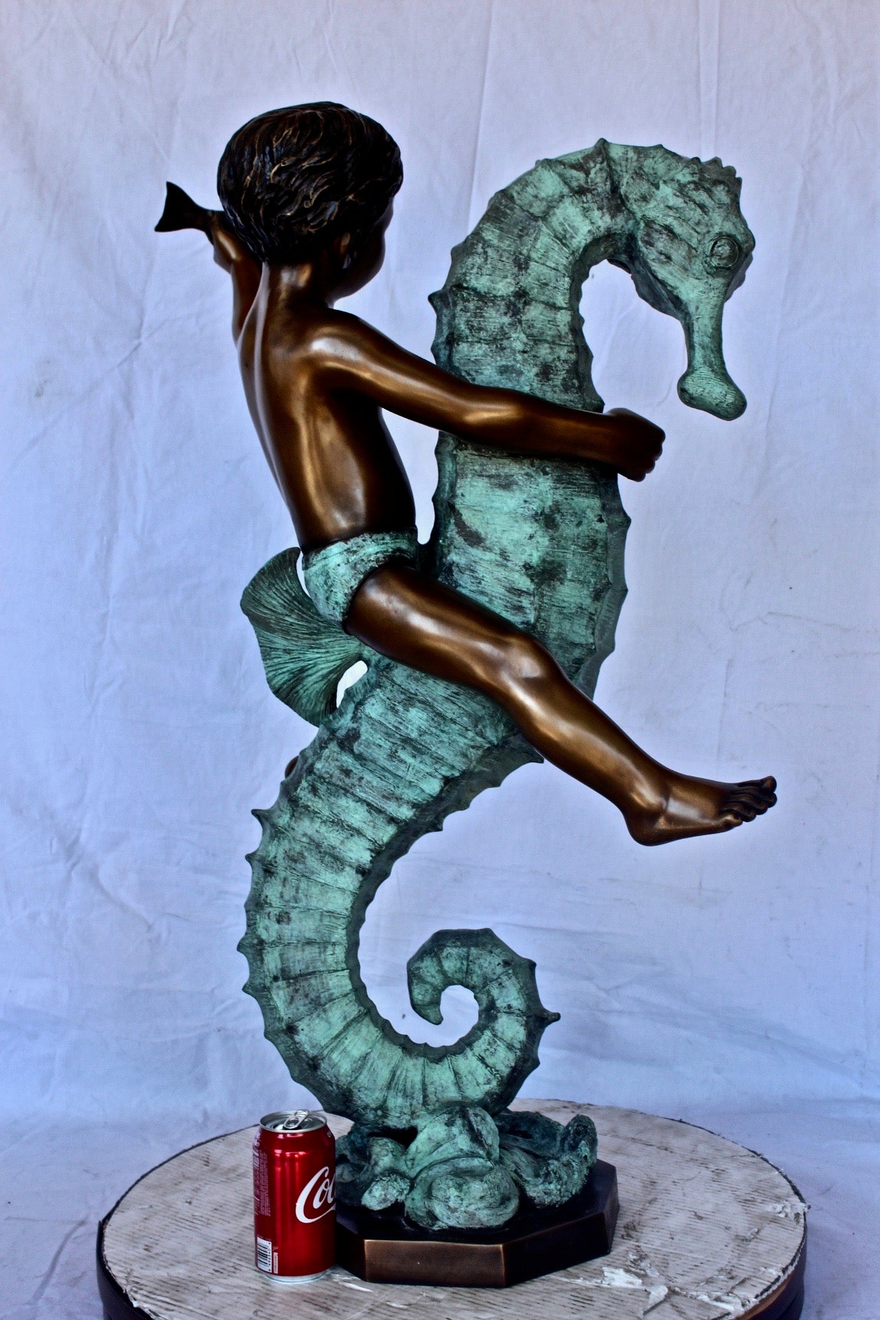 Boy and girl riding seahorses bronze fountain - Size: 18"L x 23"W x 38"H.