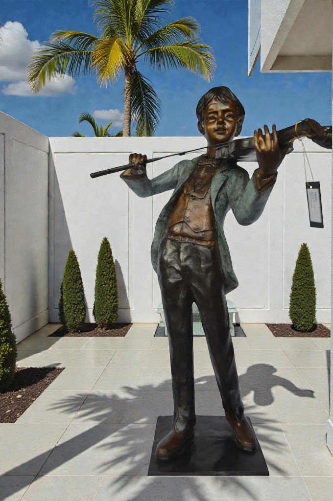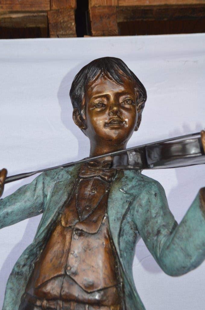 Boy playing violin large bronze statue - Size: 31"L x 31"W x 50"H.