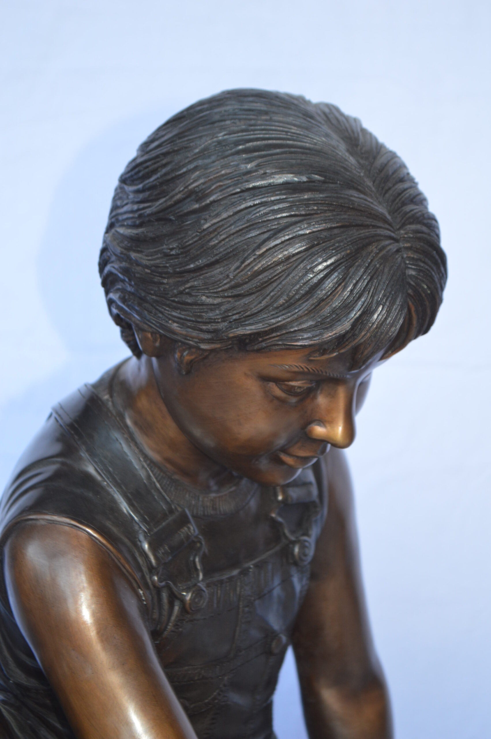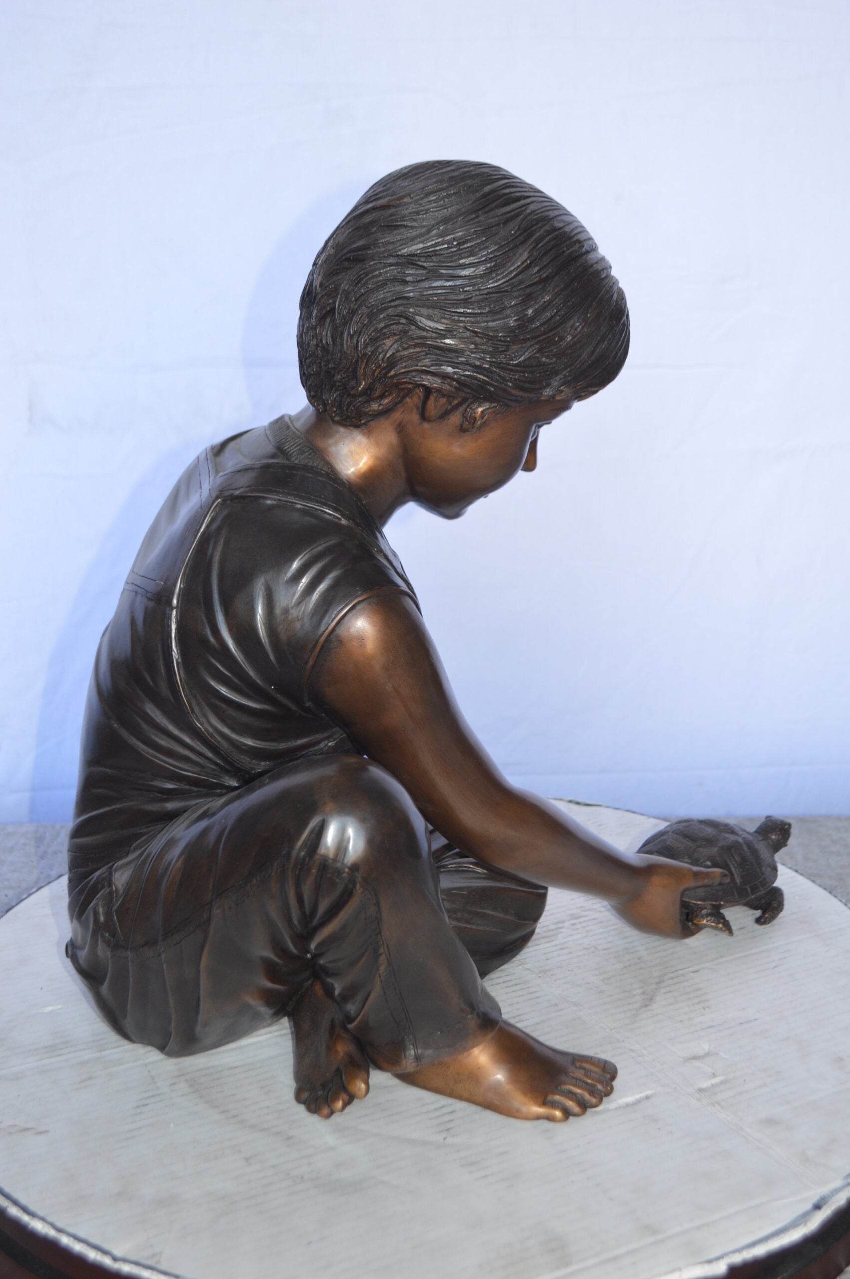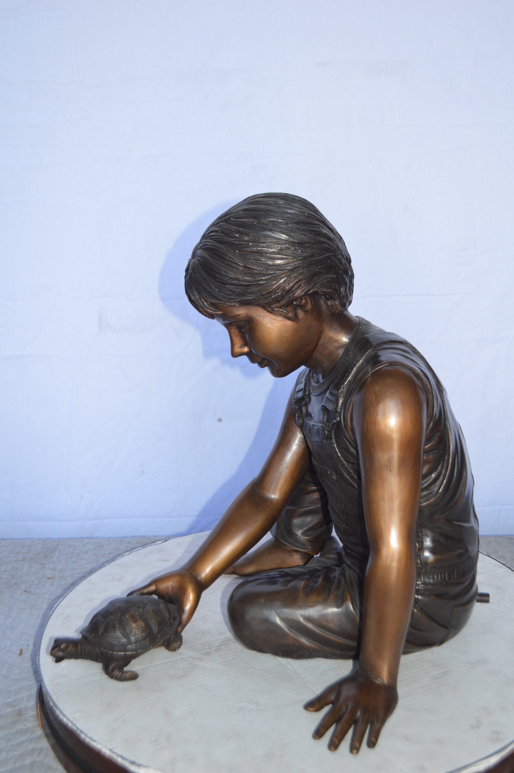 SKU:BoyPushTurtleBronzeStatueFount4917