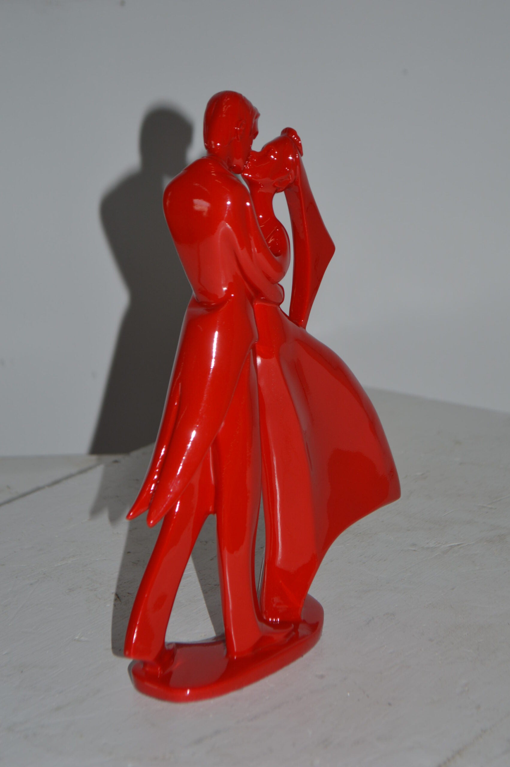 Bride and Groom Red Resin Statue Modern Art - Size: 3"L x 9"W x 12"H.