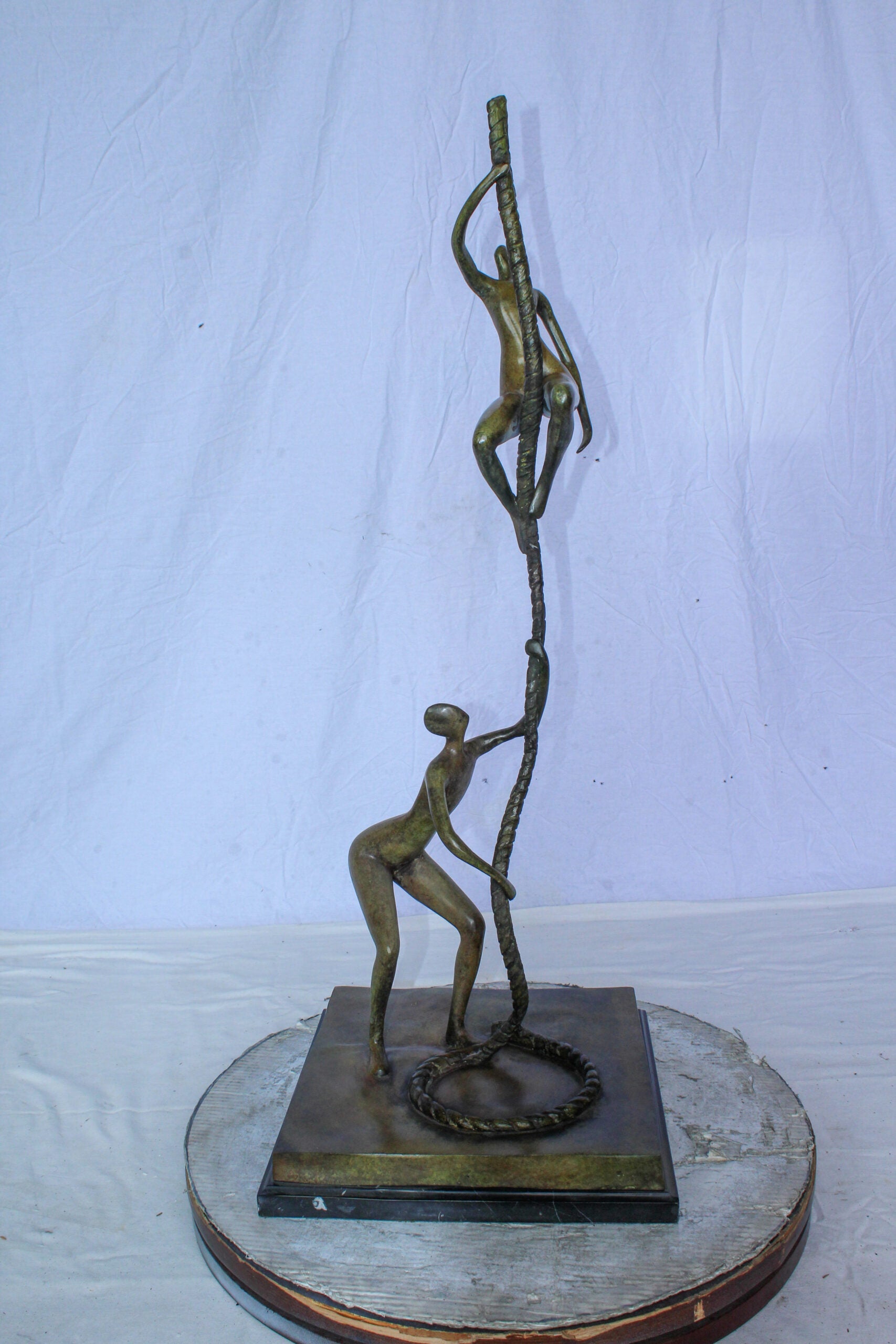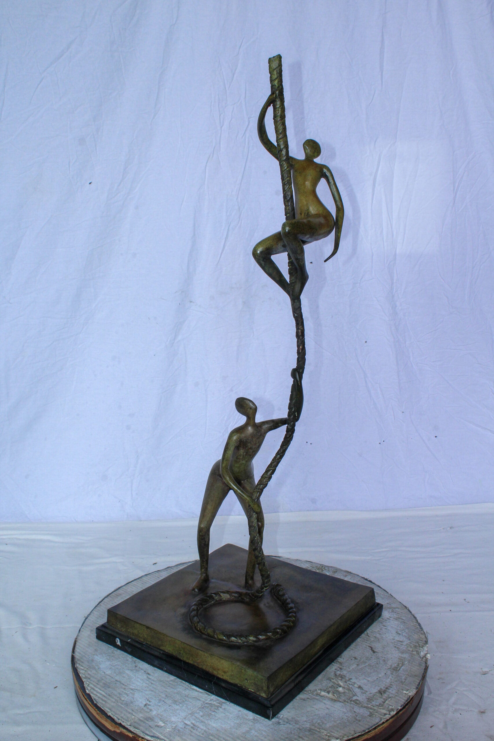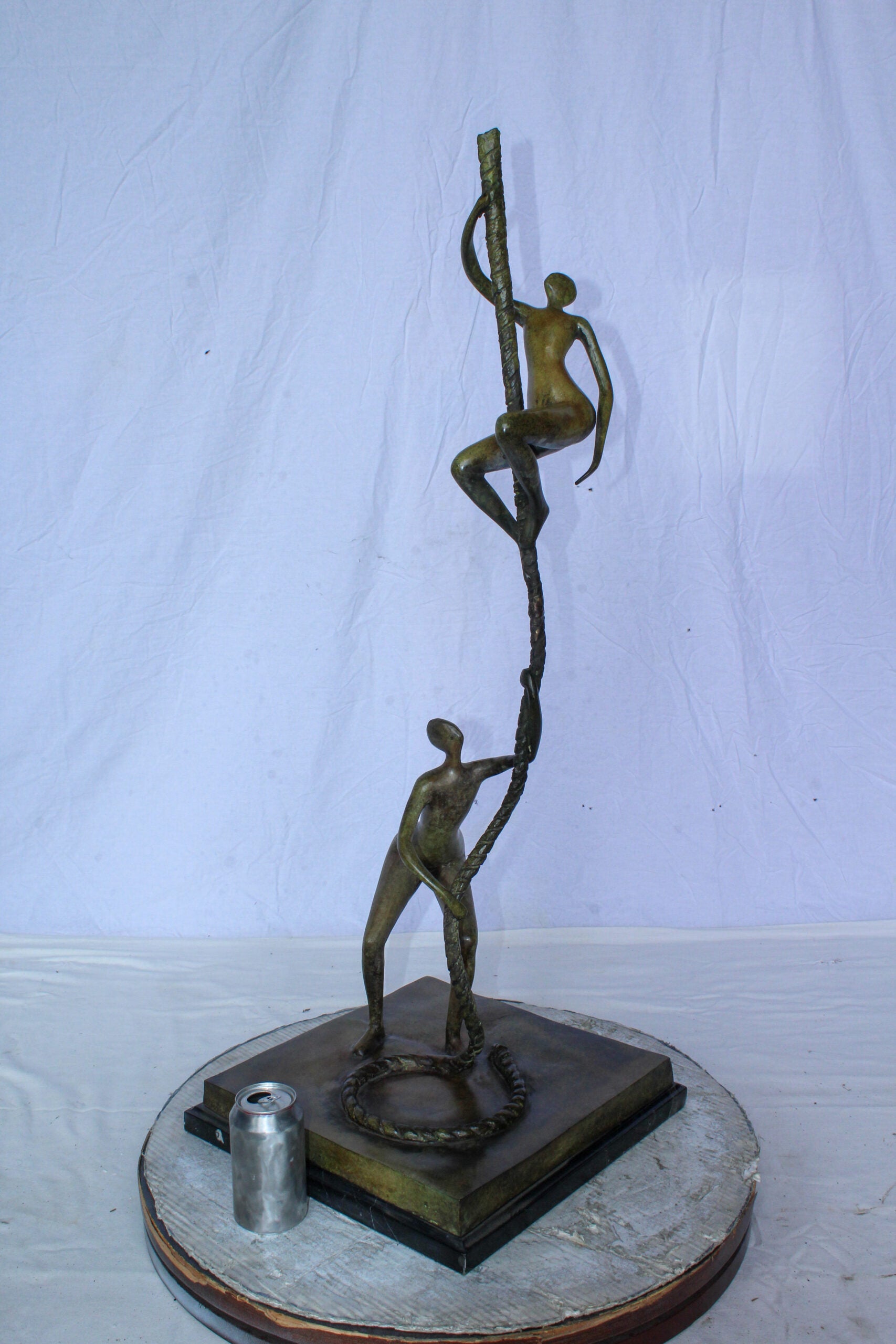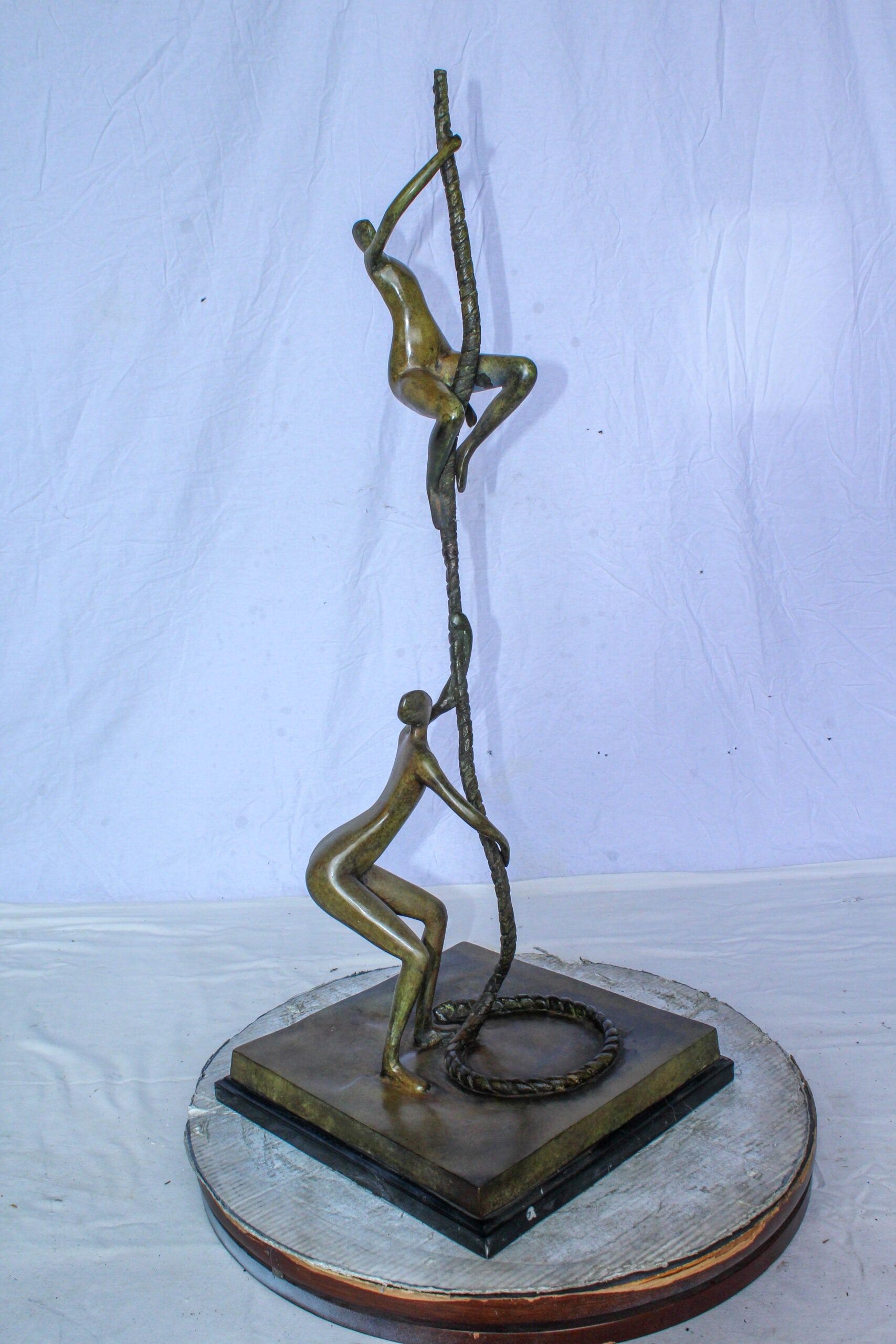 Bronze Abstract Figures Climbing Rope Sculpture on Base 14" x 14" x 38"H