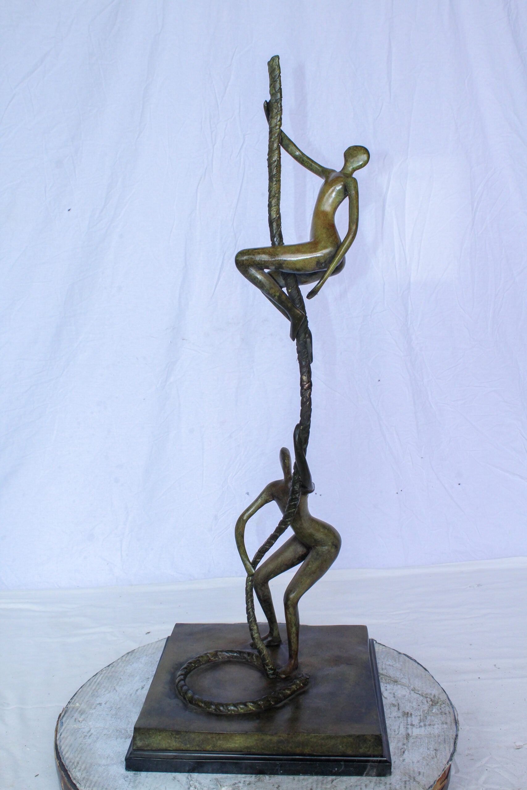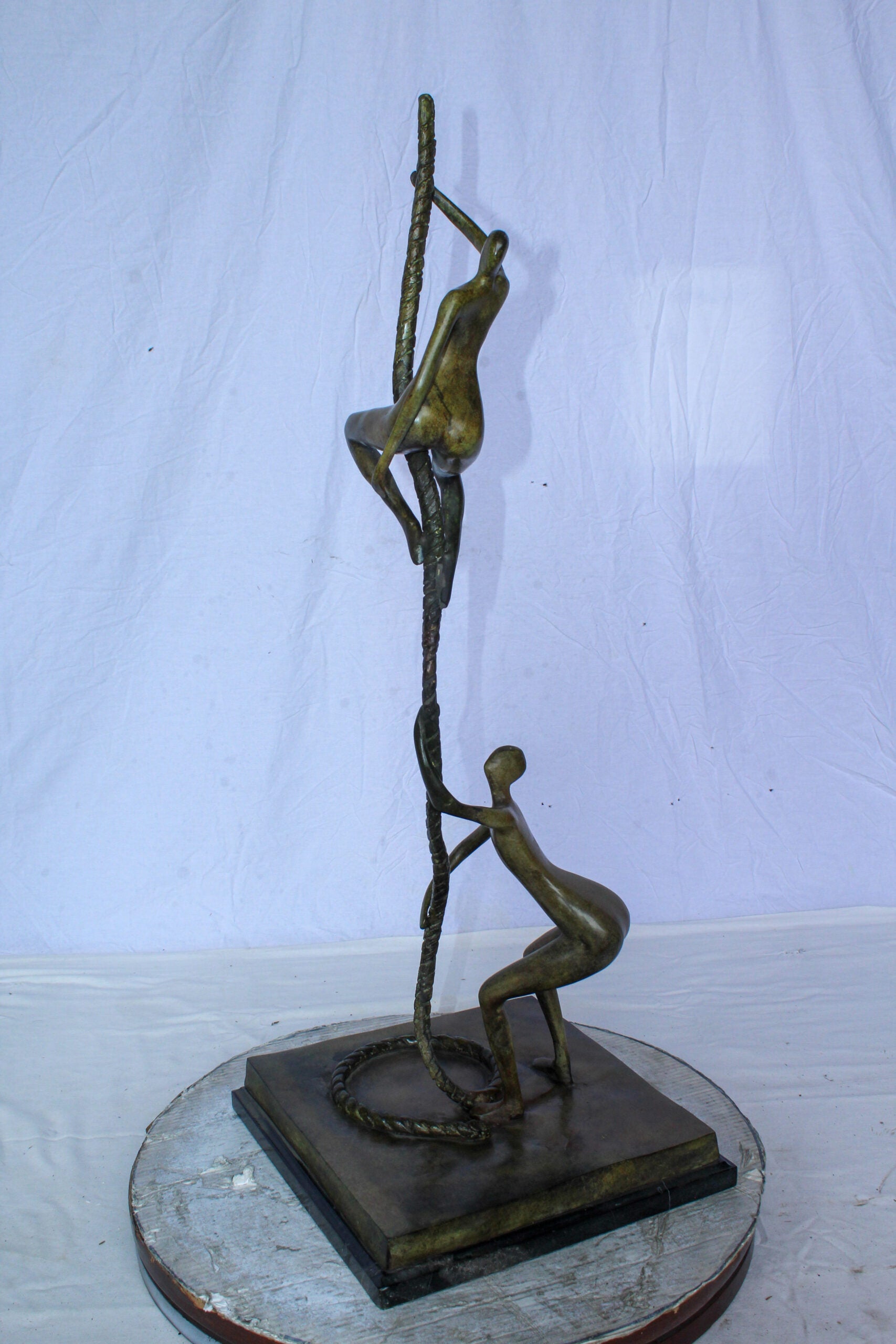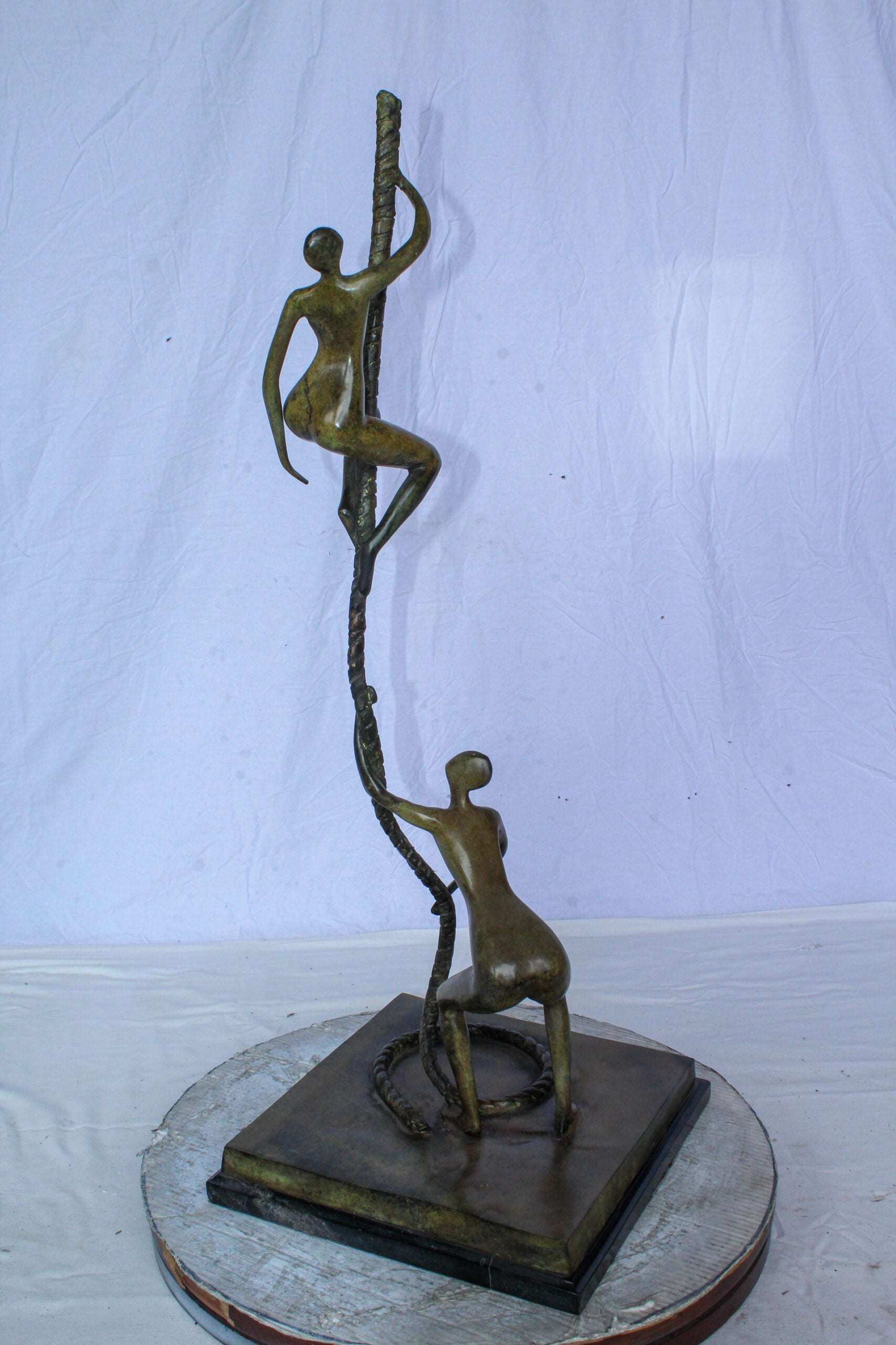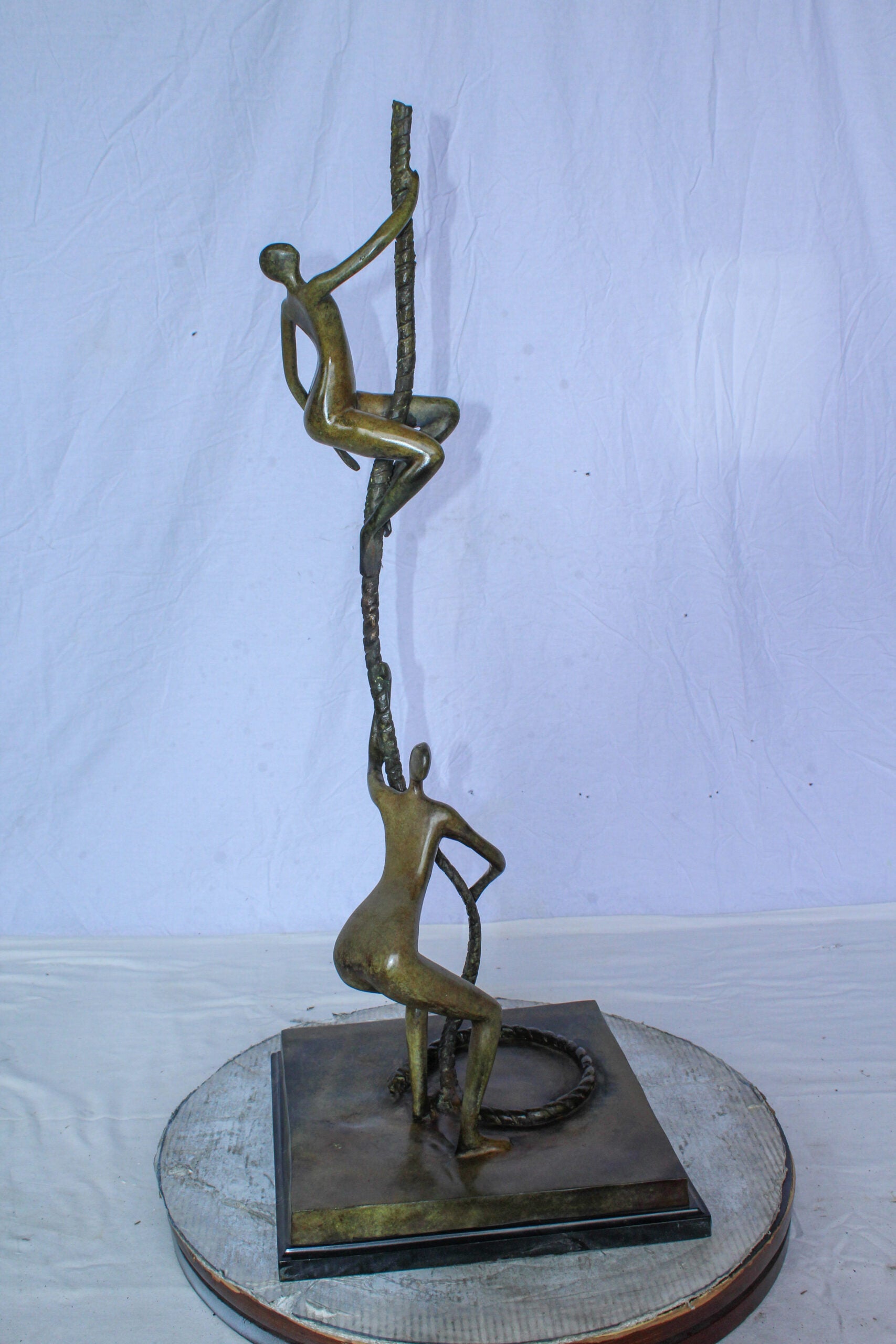 Bronze Abstract Figures Climbing Rope Sculpture on Base 14" x 14" x 38"H