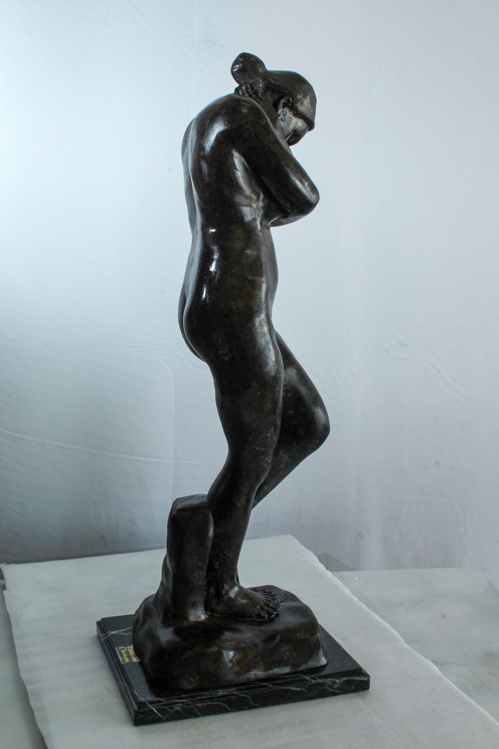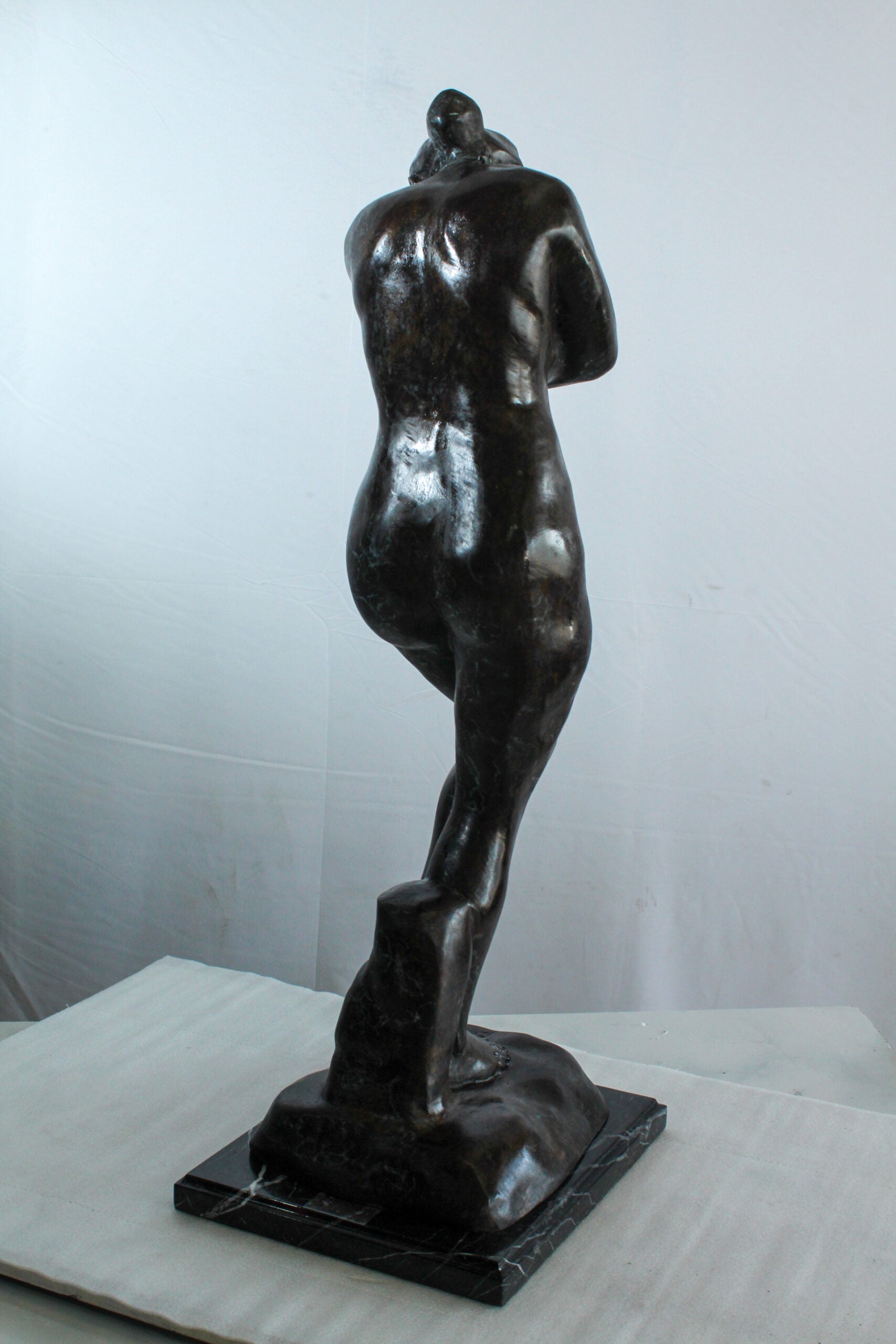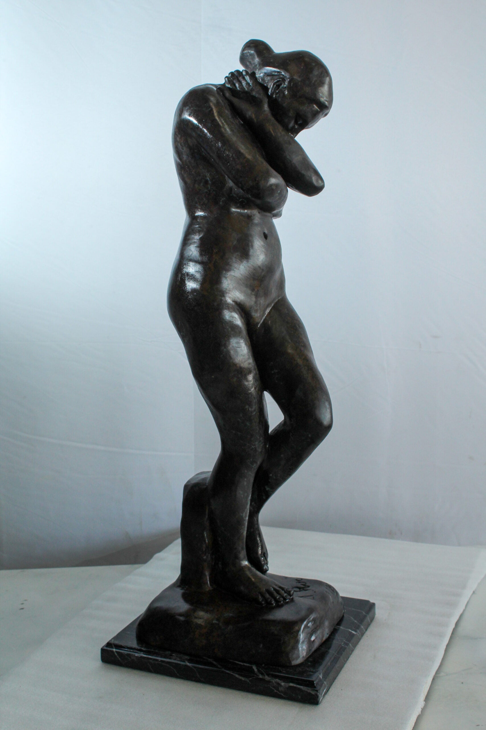 Nifao Bronze Nude Woman Statue -Rodin-Inspired Indoor/Outdoor Sculpture, Wax Casting on Marble Base, Classical Female Form in Introspective Pose for Art Collectors & Elegant Home Decor12 x 11" x 32"H