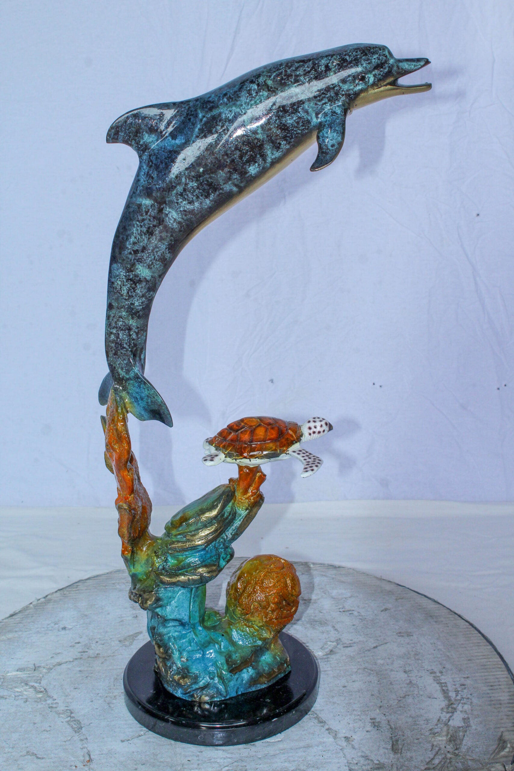 SKU:BronzeDolphinandTurtleStatueOc5584