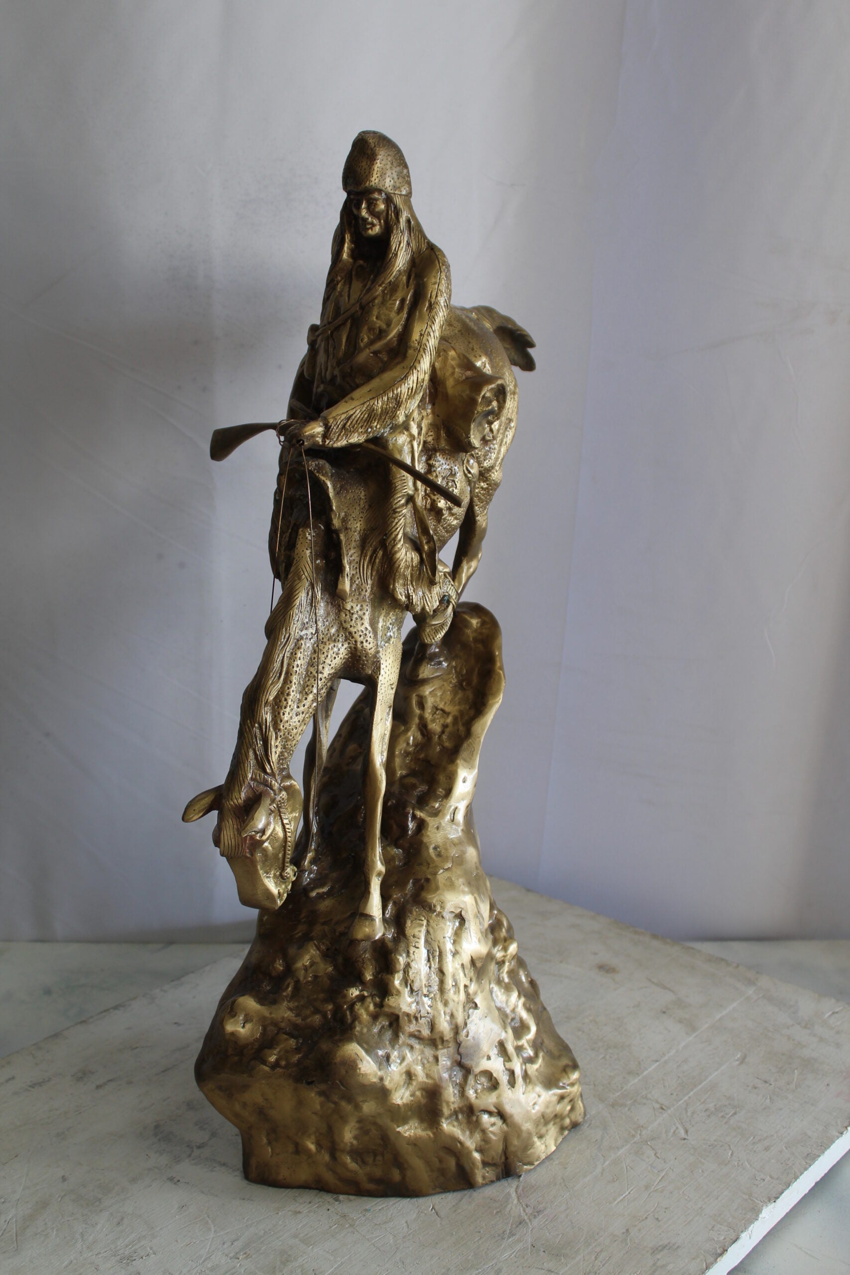 Add rustic charm to your space with our Bronze Finish Mountain Man Remington Replica. Crafted from durable metal, this detailed piece brings the spirit of the wild into your home or office decor. Perfect for history buffs and outdoor enthusiasts alike. Get yours today Size: 21"L x 10"W x 26"H. Weight is: 38Lb