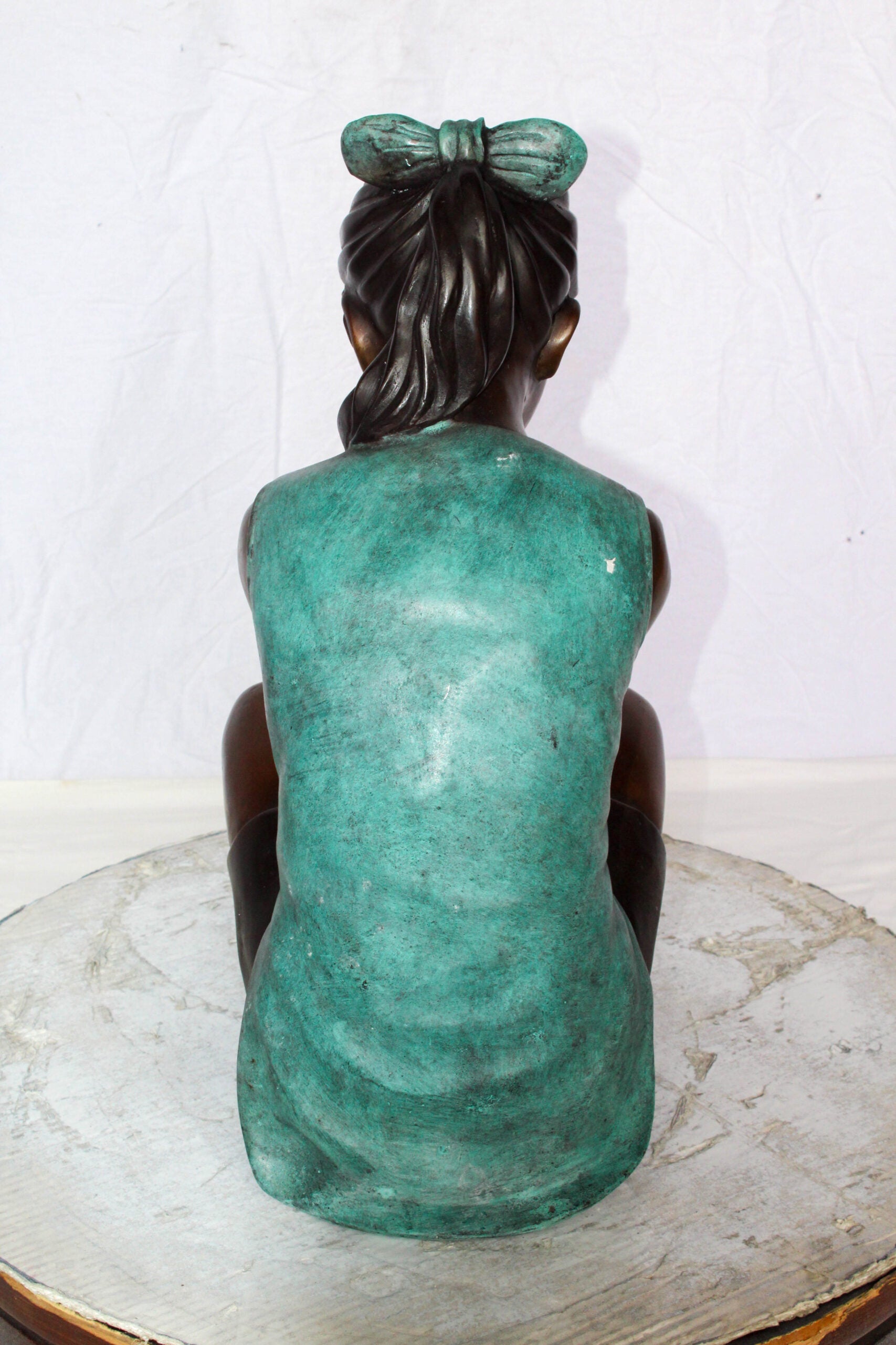 This heartwarming bronze statue shows a young girl gently holding a bird, symbolizing innocence and connection with nature. Crafted using the lost wax method and finished with a natural patina. The soda can beside the statue shows its substantial tabletop size, perfect for garden corners, bookshelves, or heartfelt decor. Size: 19"L x 10"W x 20"H. Weight: 27Lb