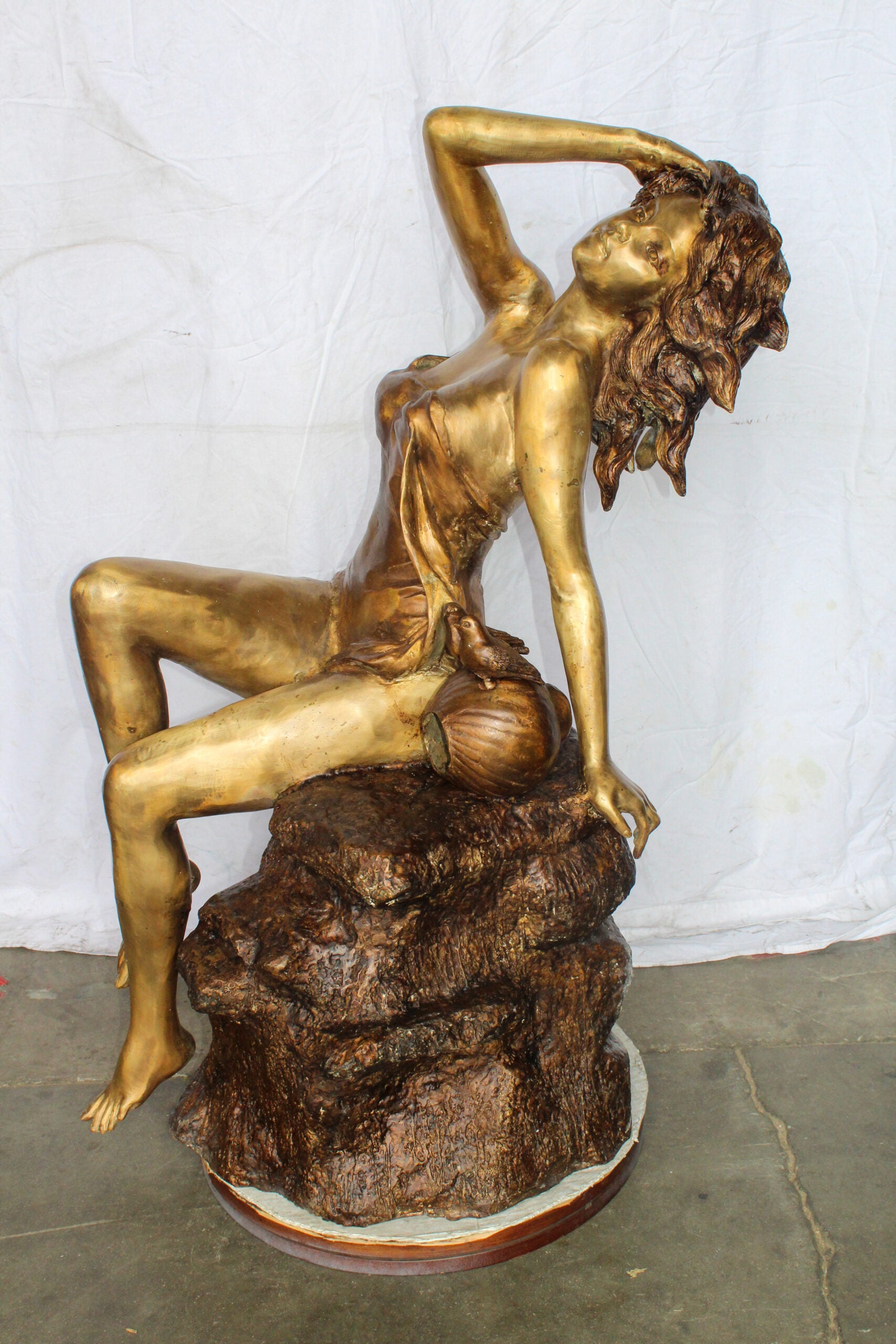 Bronze Outdoor Fountain of a Woman Relaxing on Rocks 49" x 39" x 50"H