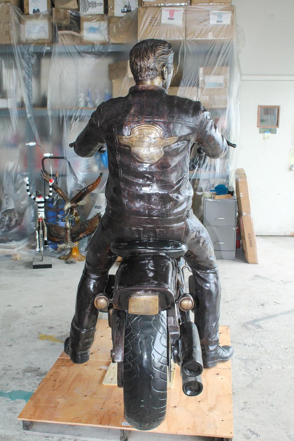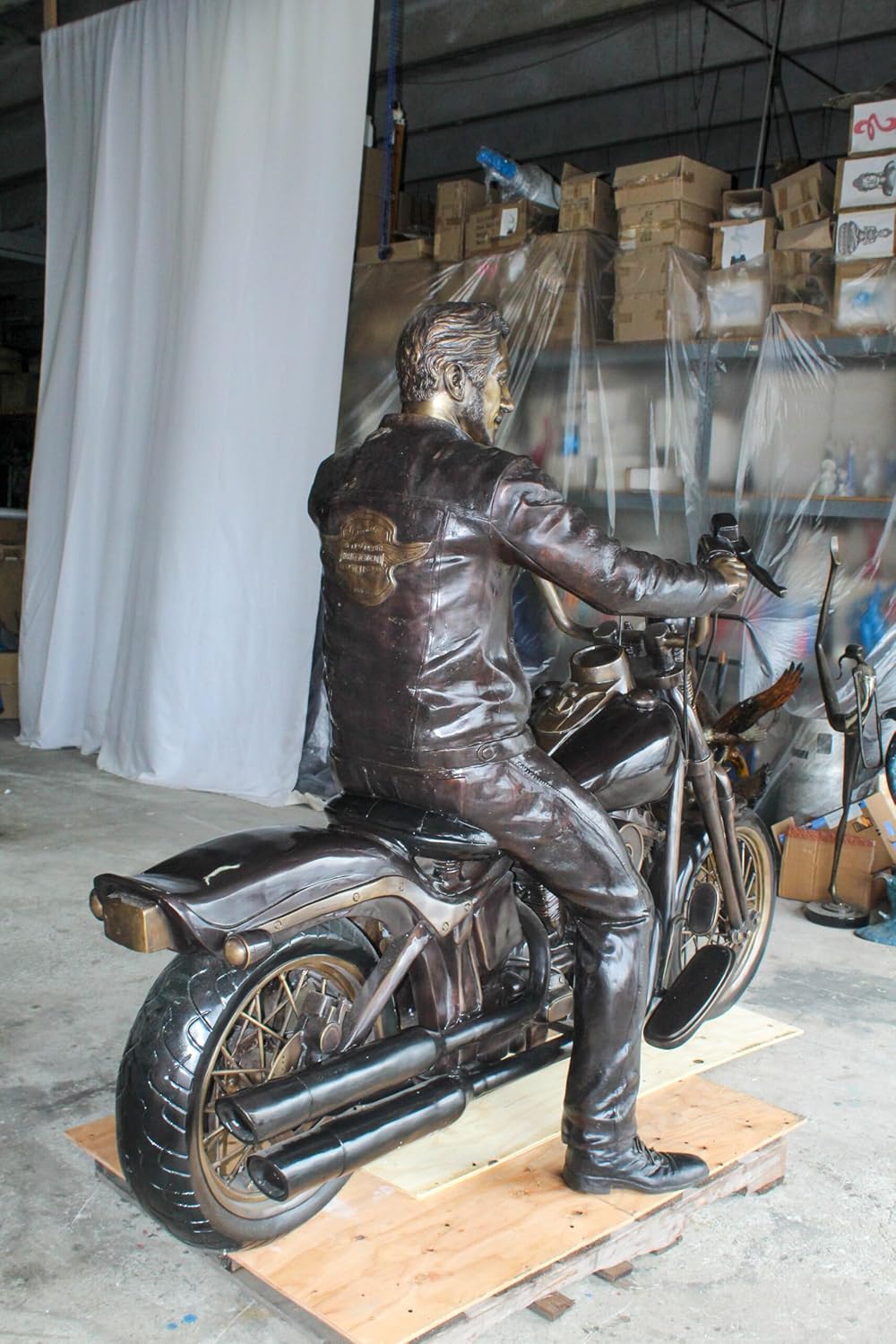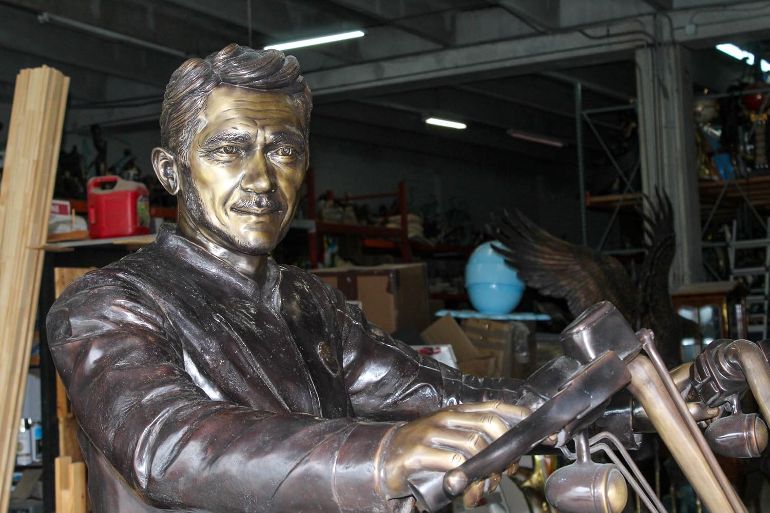 Bronze Sculpture of Man on His Motorcycle Life Size 94" x 50" x 72"H