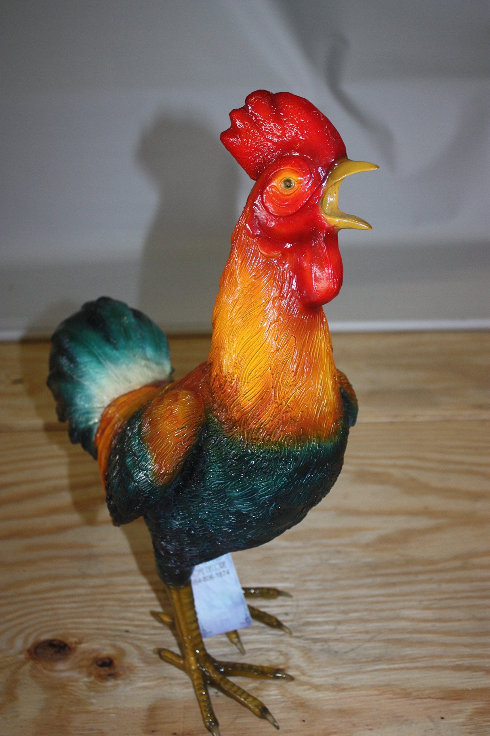 A cold painted bronze statue of a standing Rooster (cockerel), with very fine naturalistic color and details. Size: 20"L x 7.5"W x 19.5"H. Weight is: 14Lb
