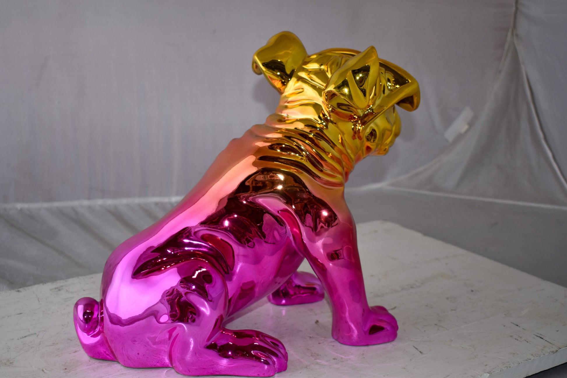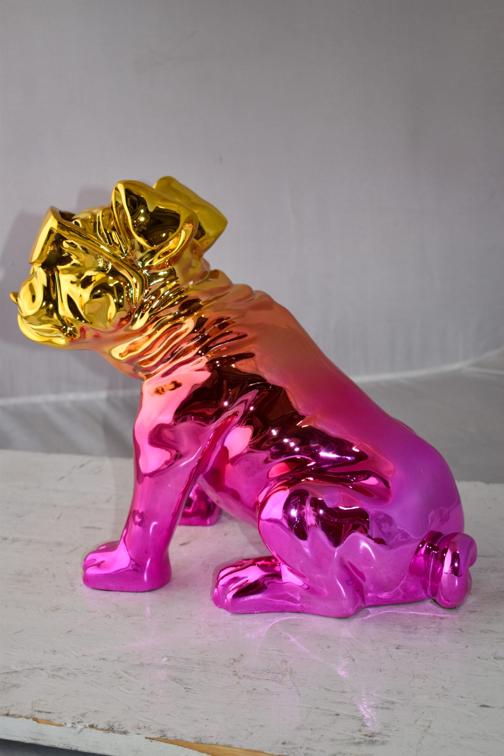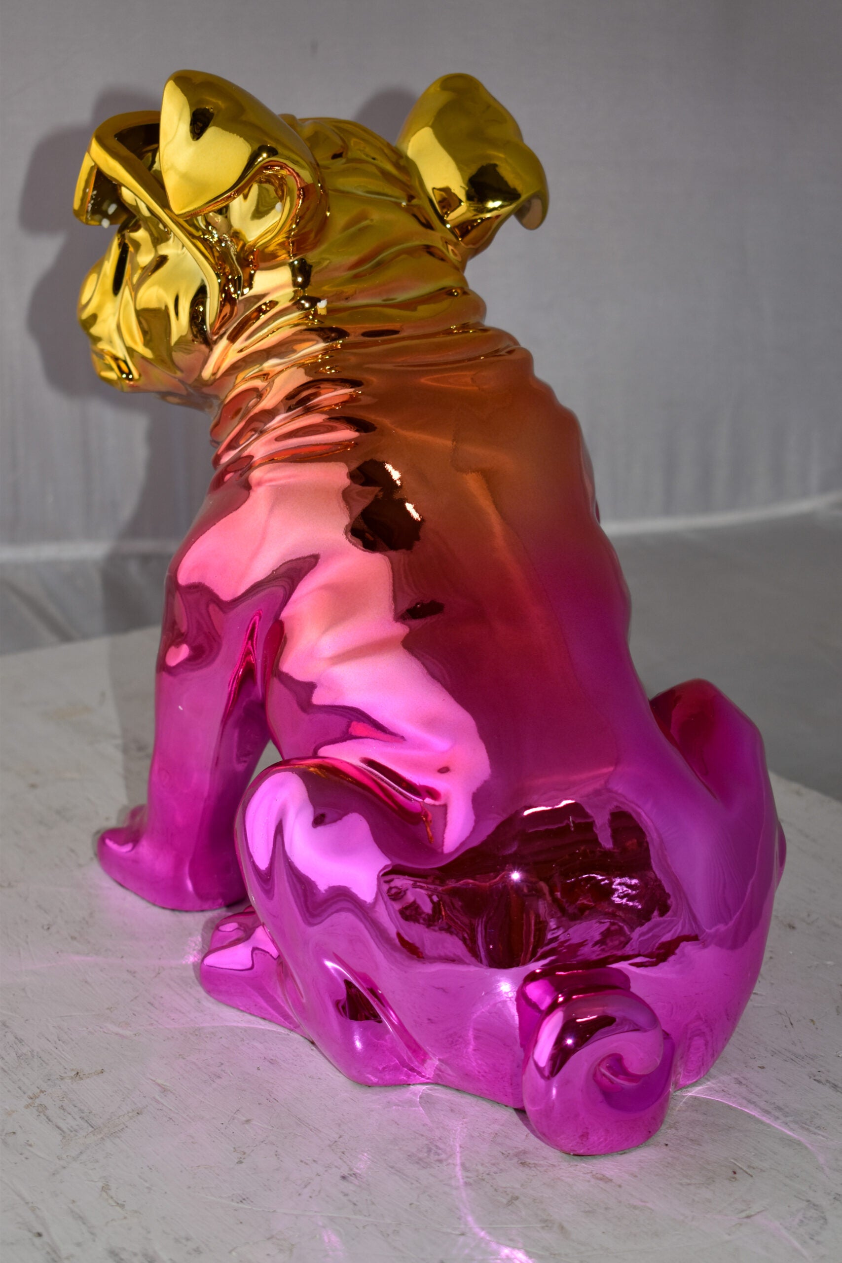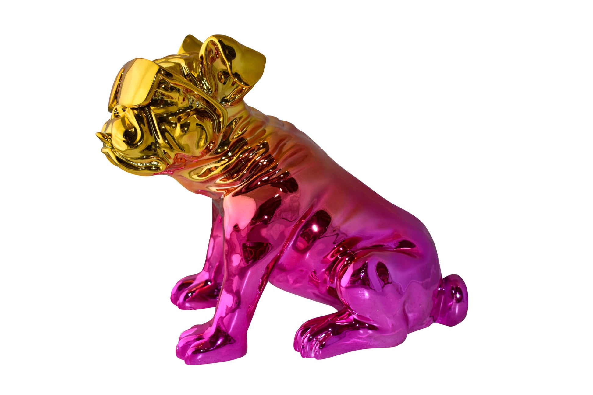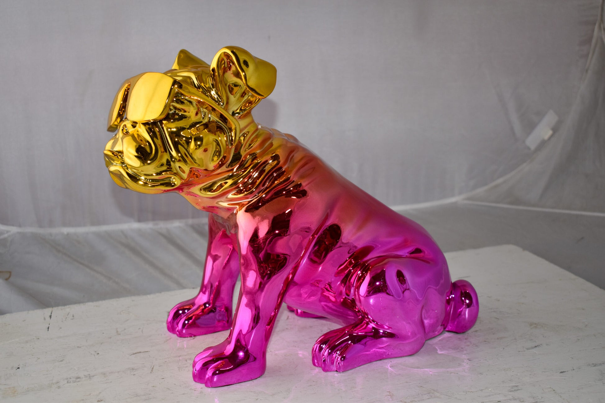 Bulldog With Sunglasses Colored Pink and Gold Resin Statue Size: 17" x 9" x 13"H