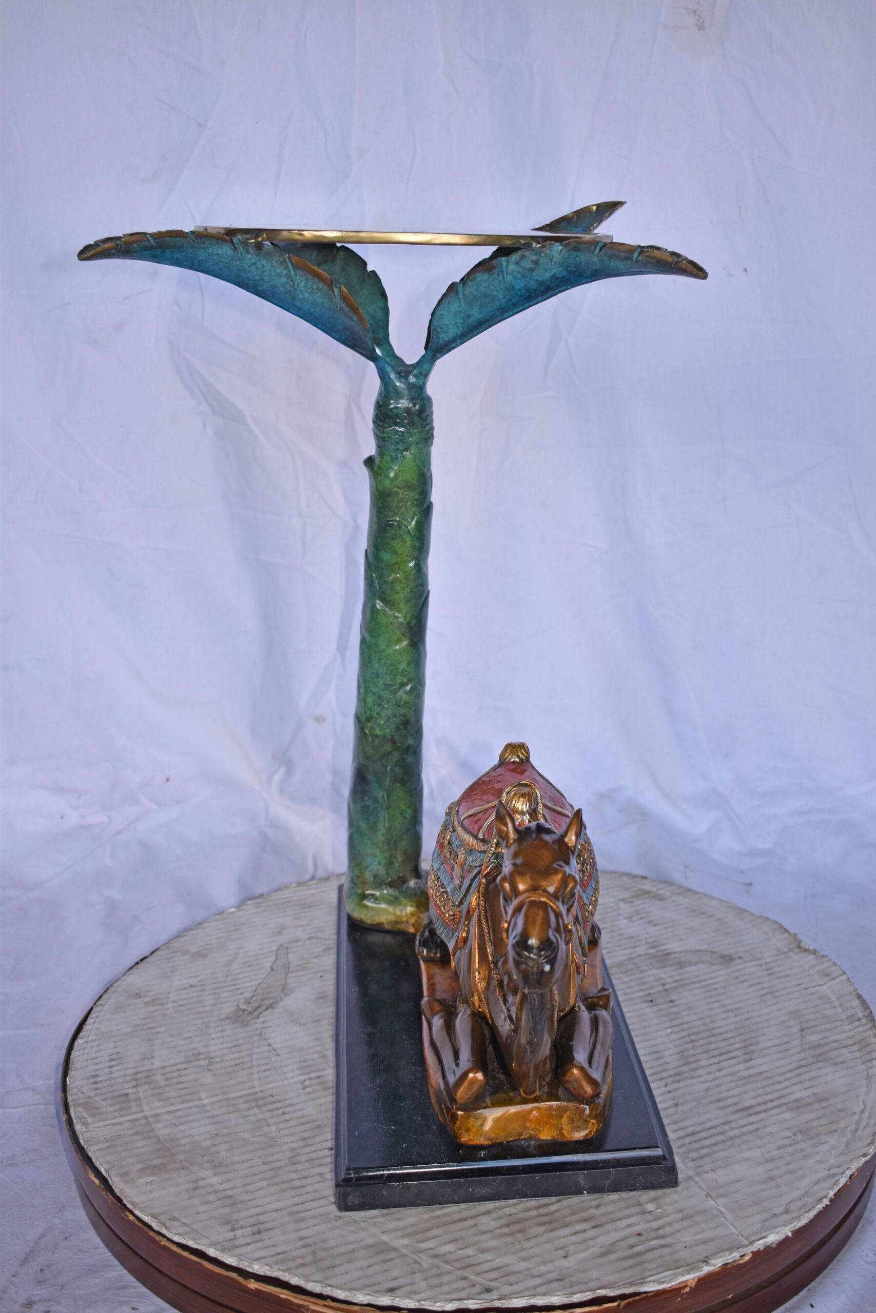 Camel Sitting Under A Palm Tree Bronze Statue - Size: 17"L x 27"W x 23"H.