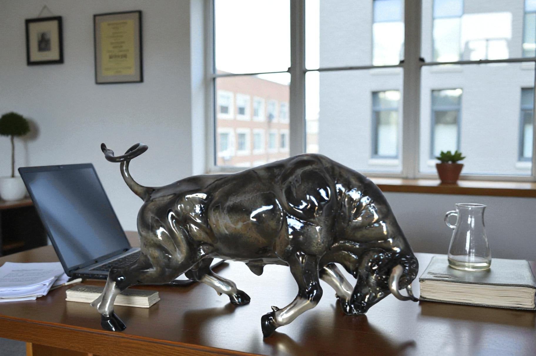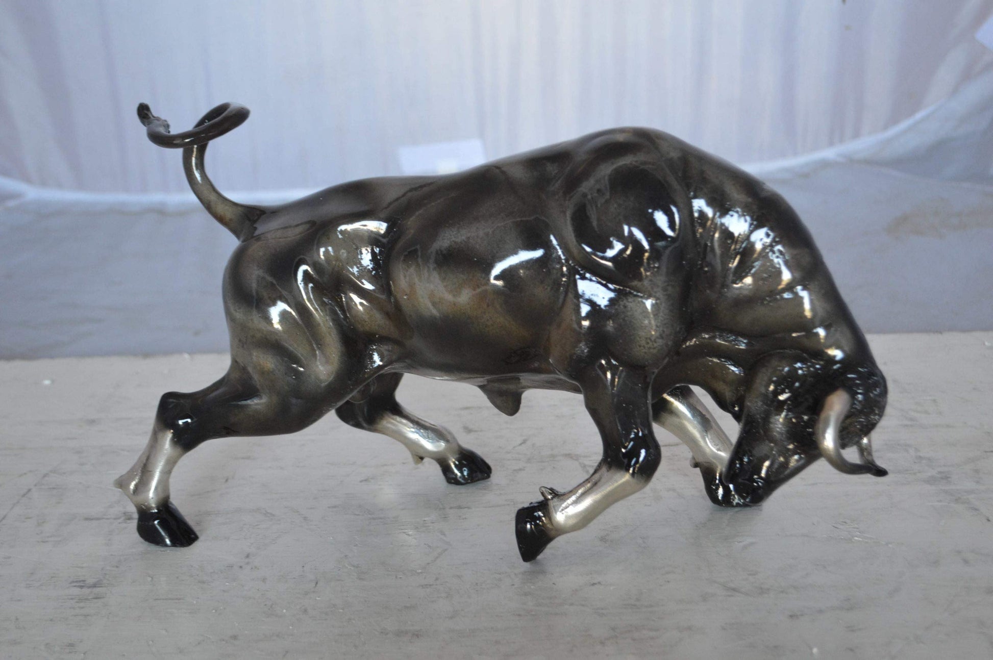 Charging Bull Bronze Statue - Size: 15"L x 5"W x 8"H.