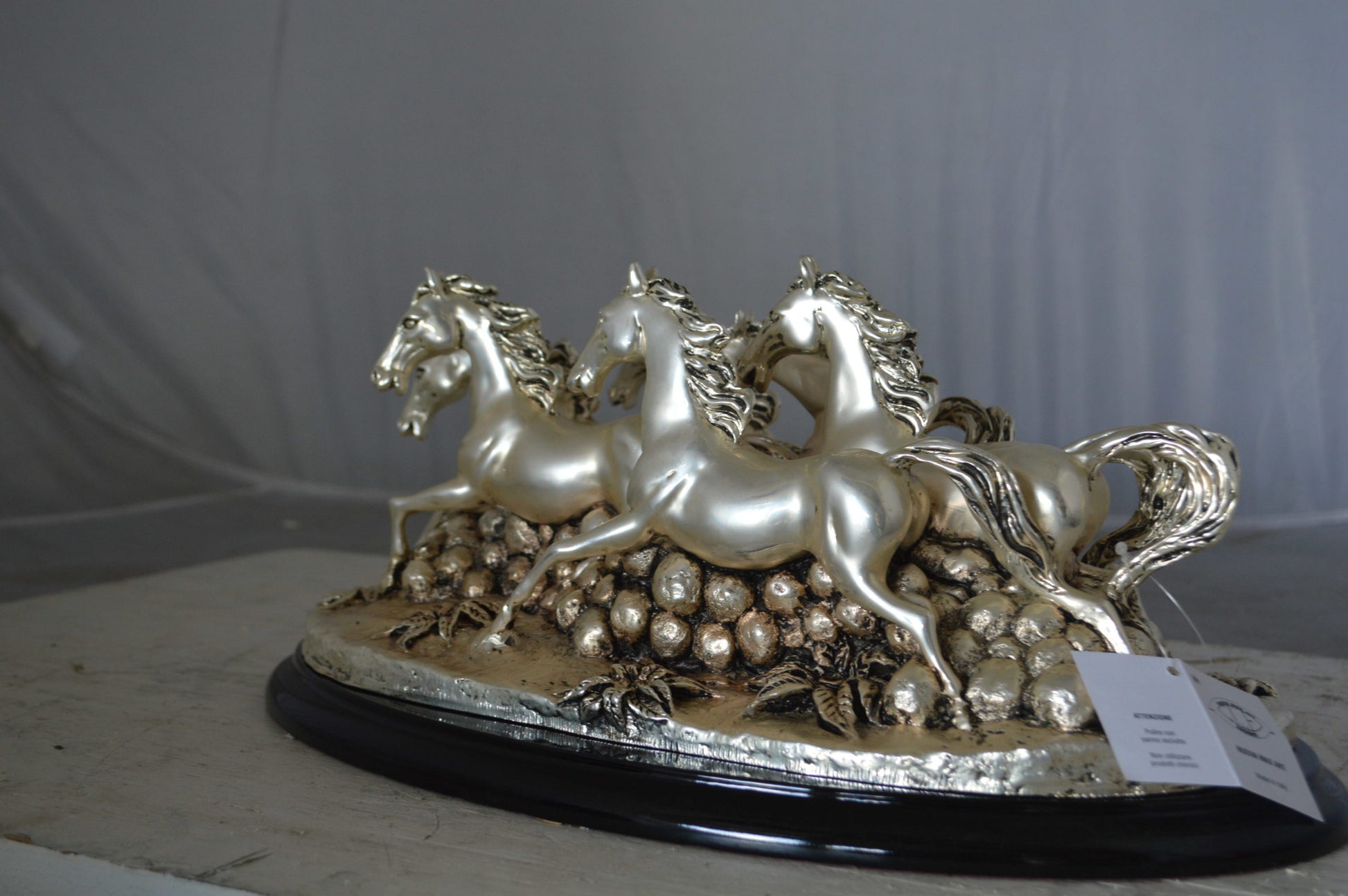 Charging horses resin statue on wood base - Size: 17"L x 10"W x 5"H.