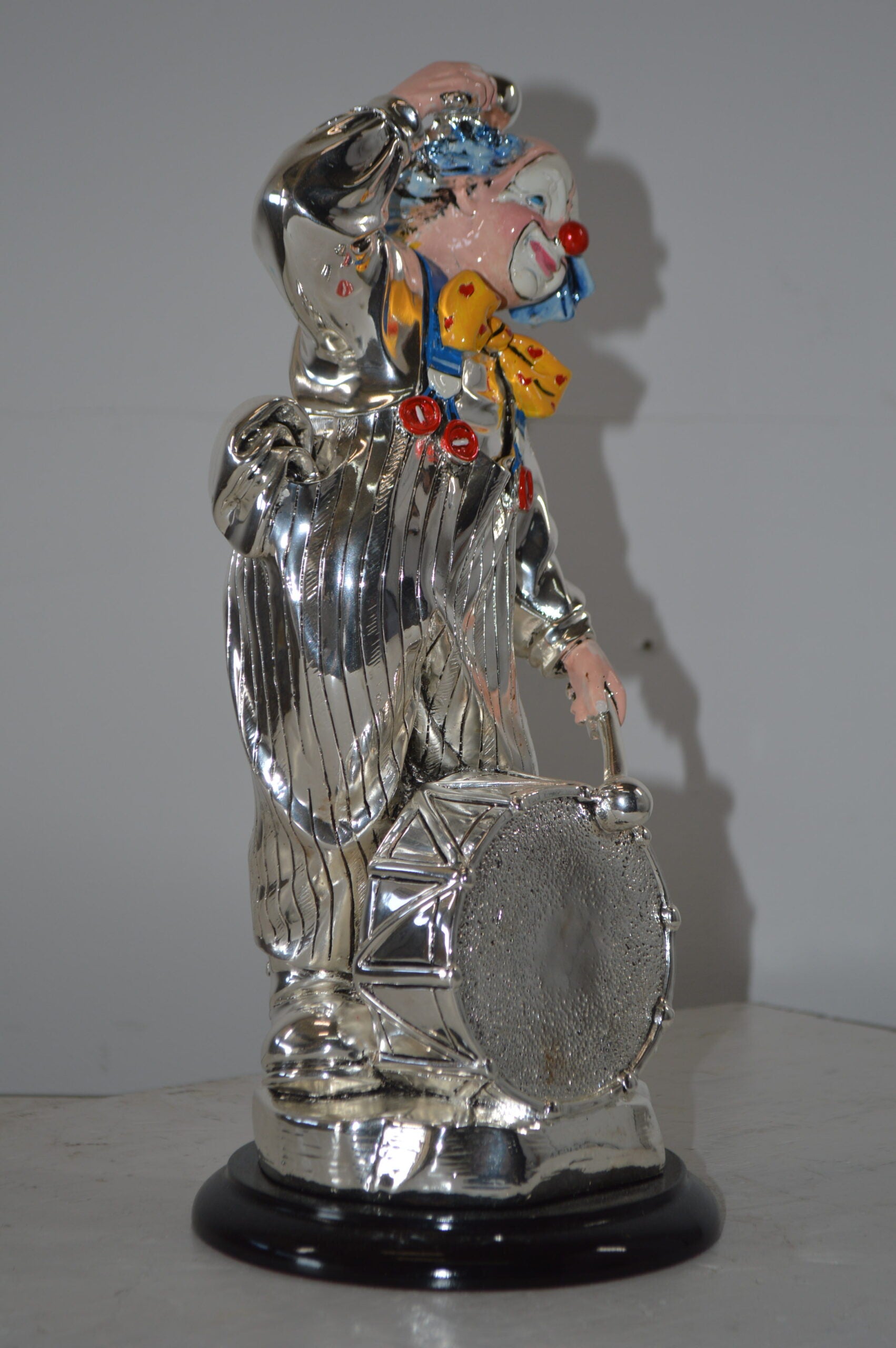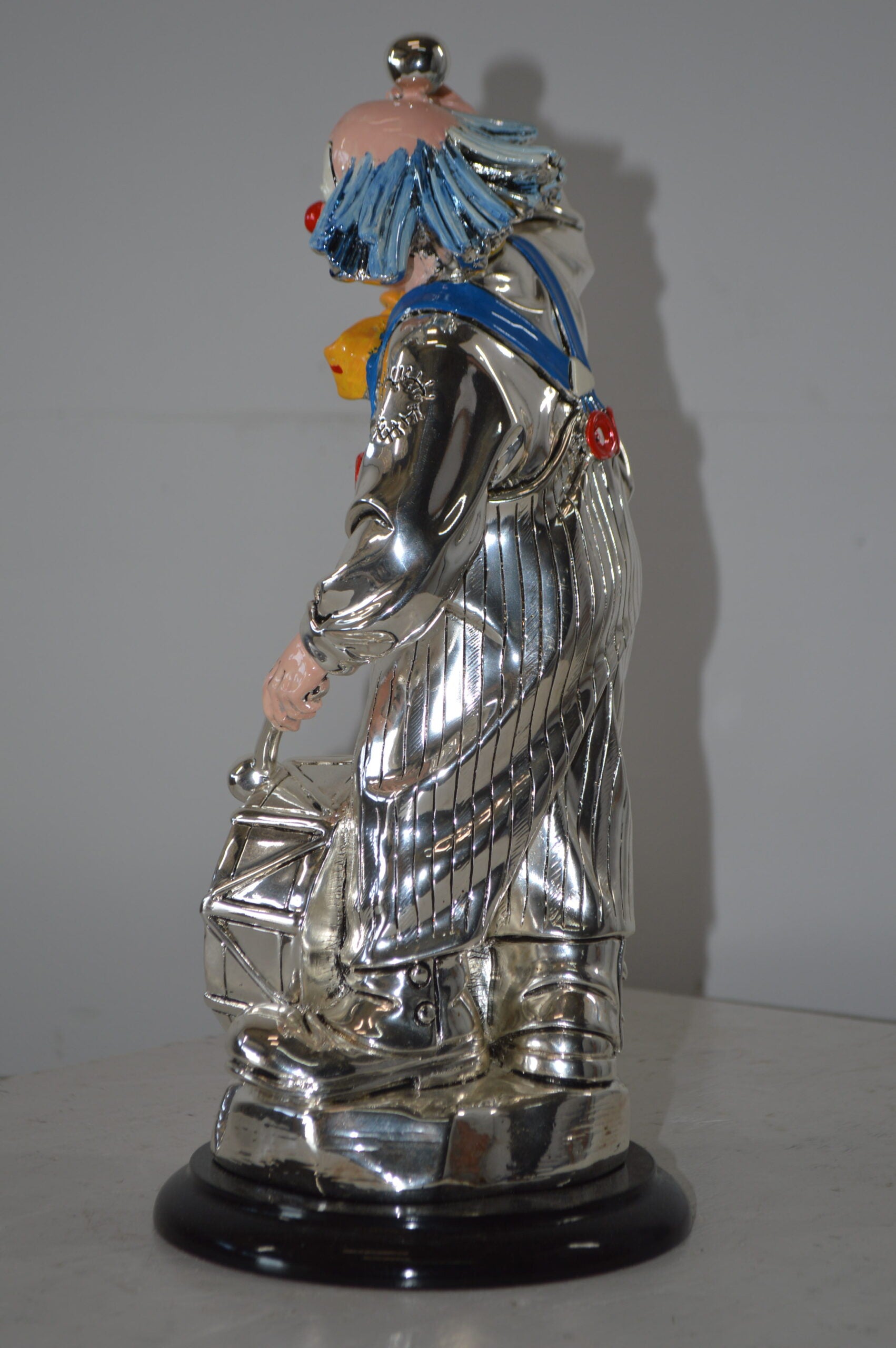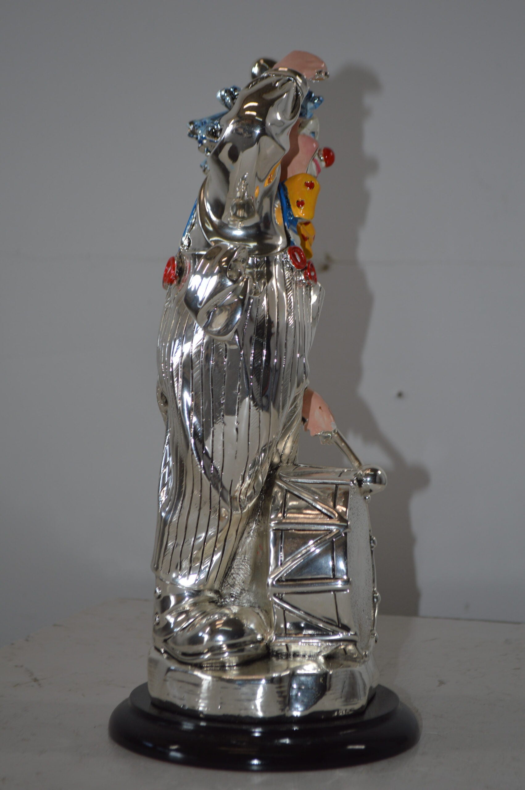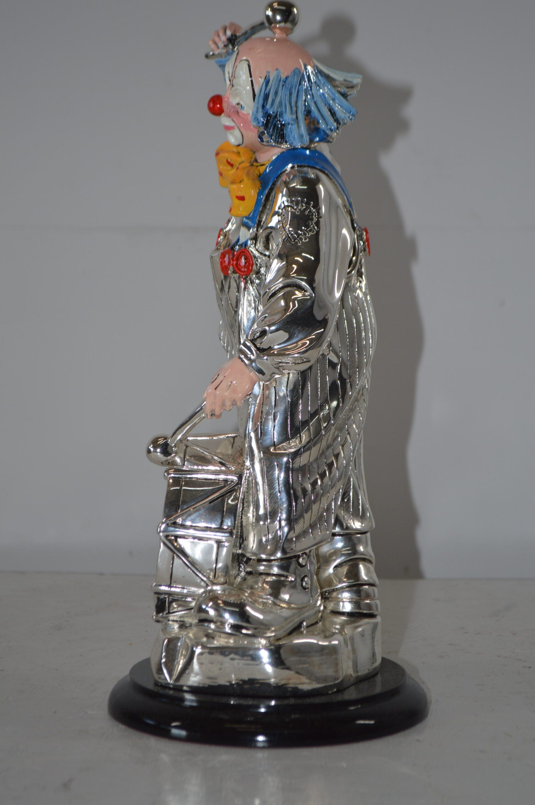Clown Plays the Drams Resin Statue Silver finish - Size: 6"L x 6"W x 16"H.