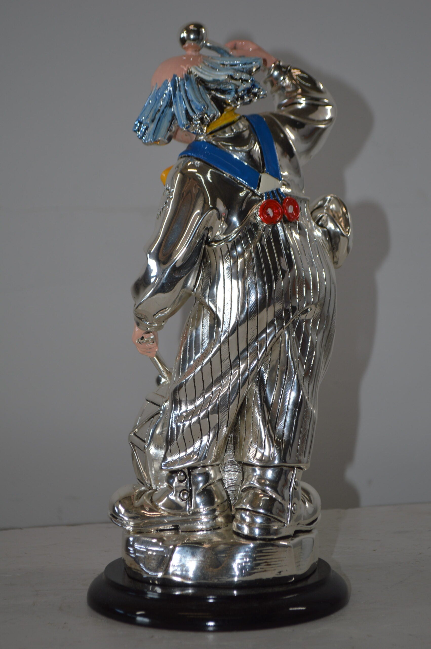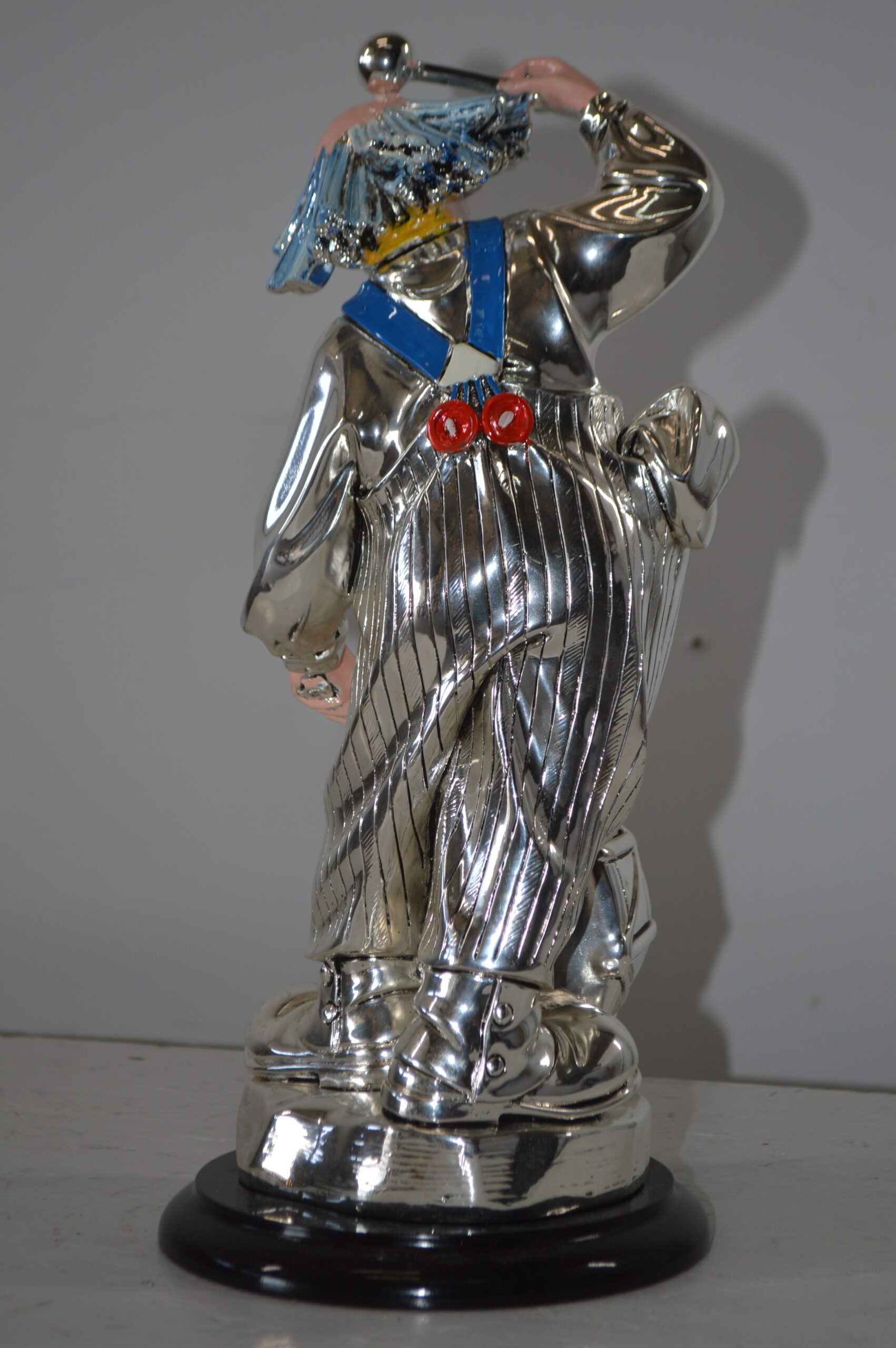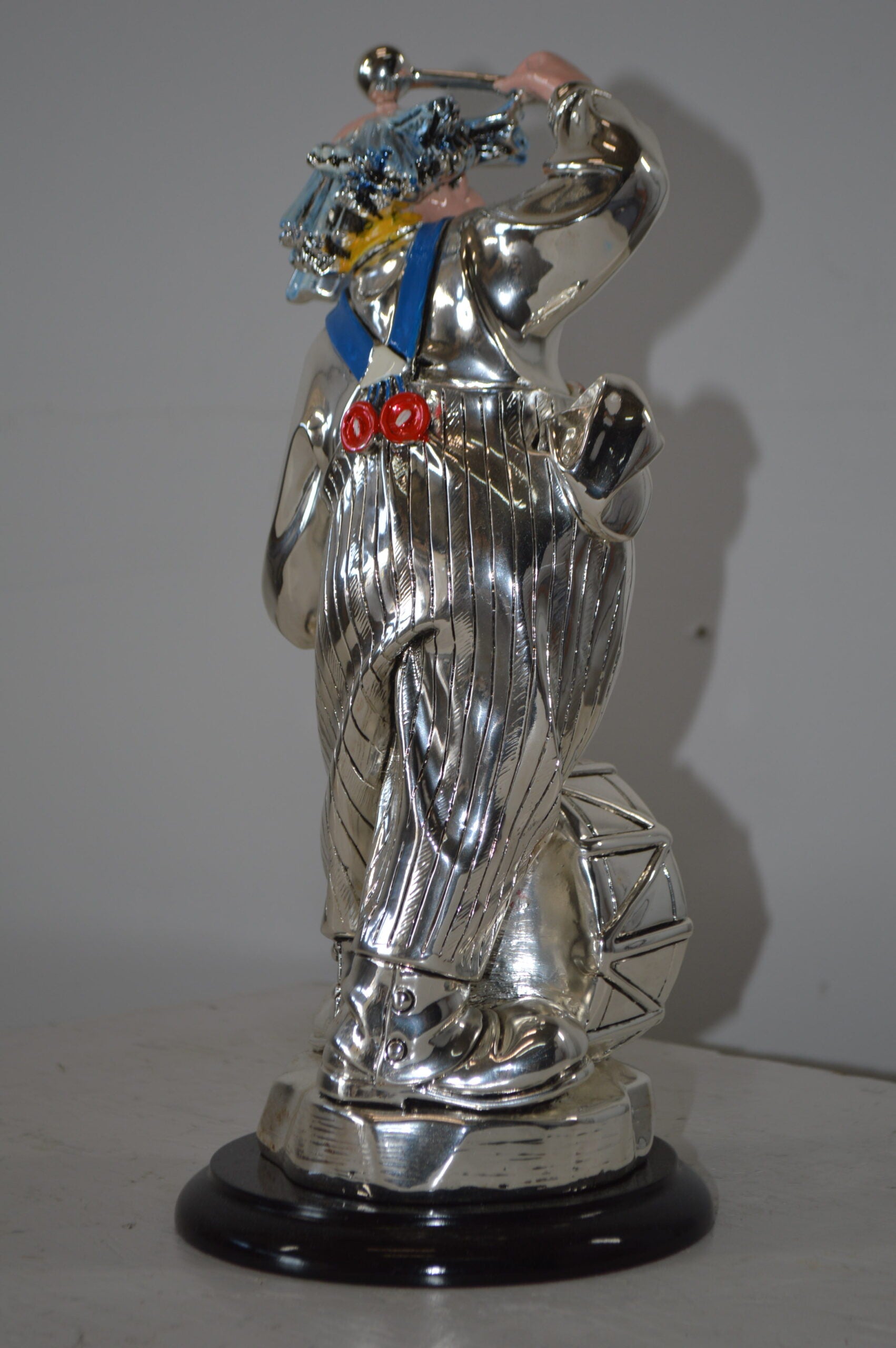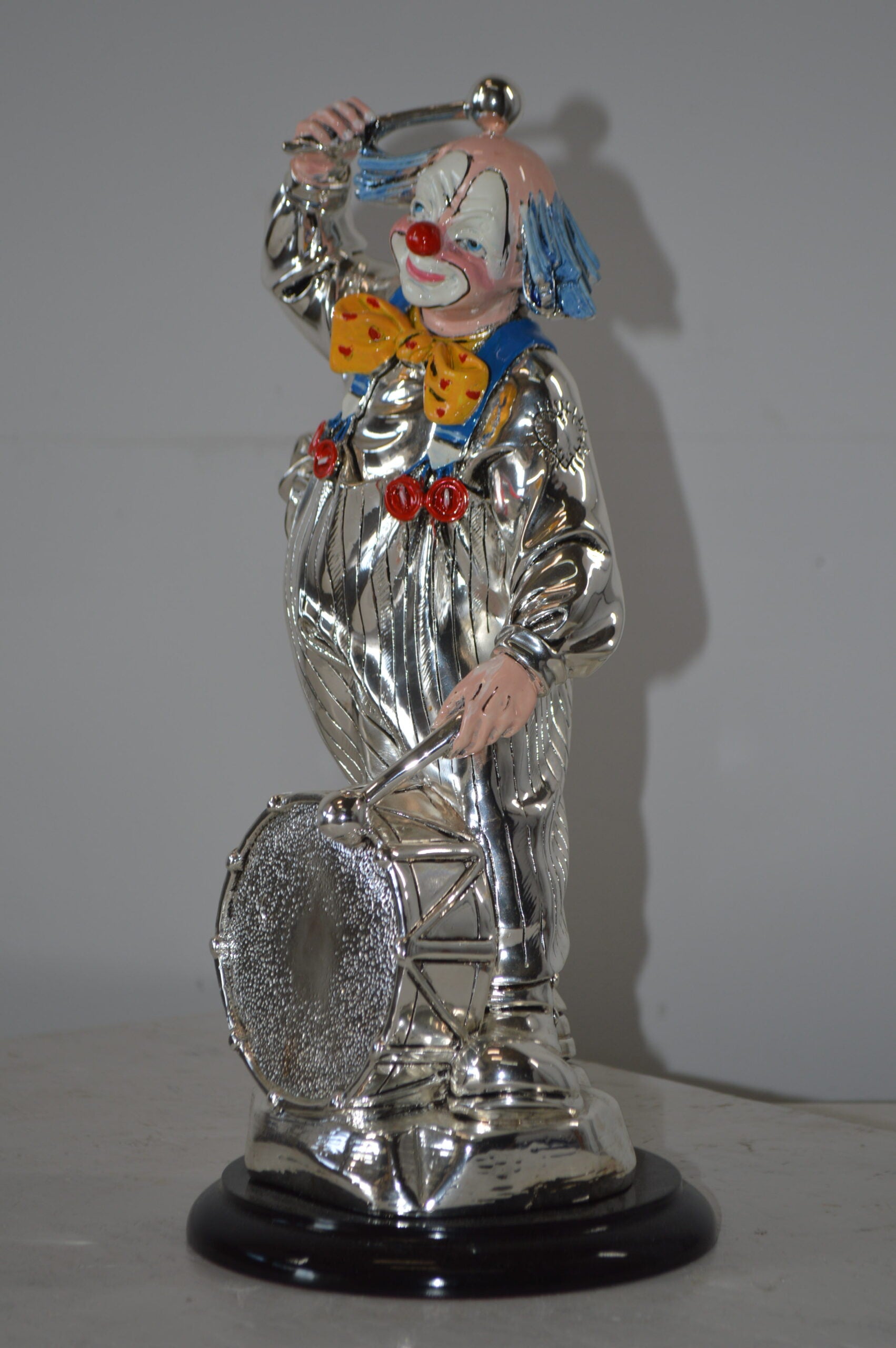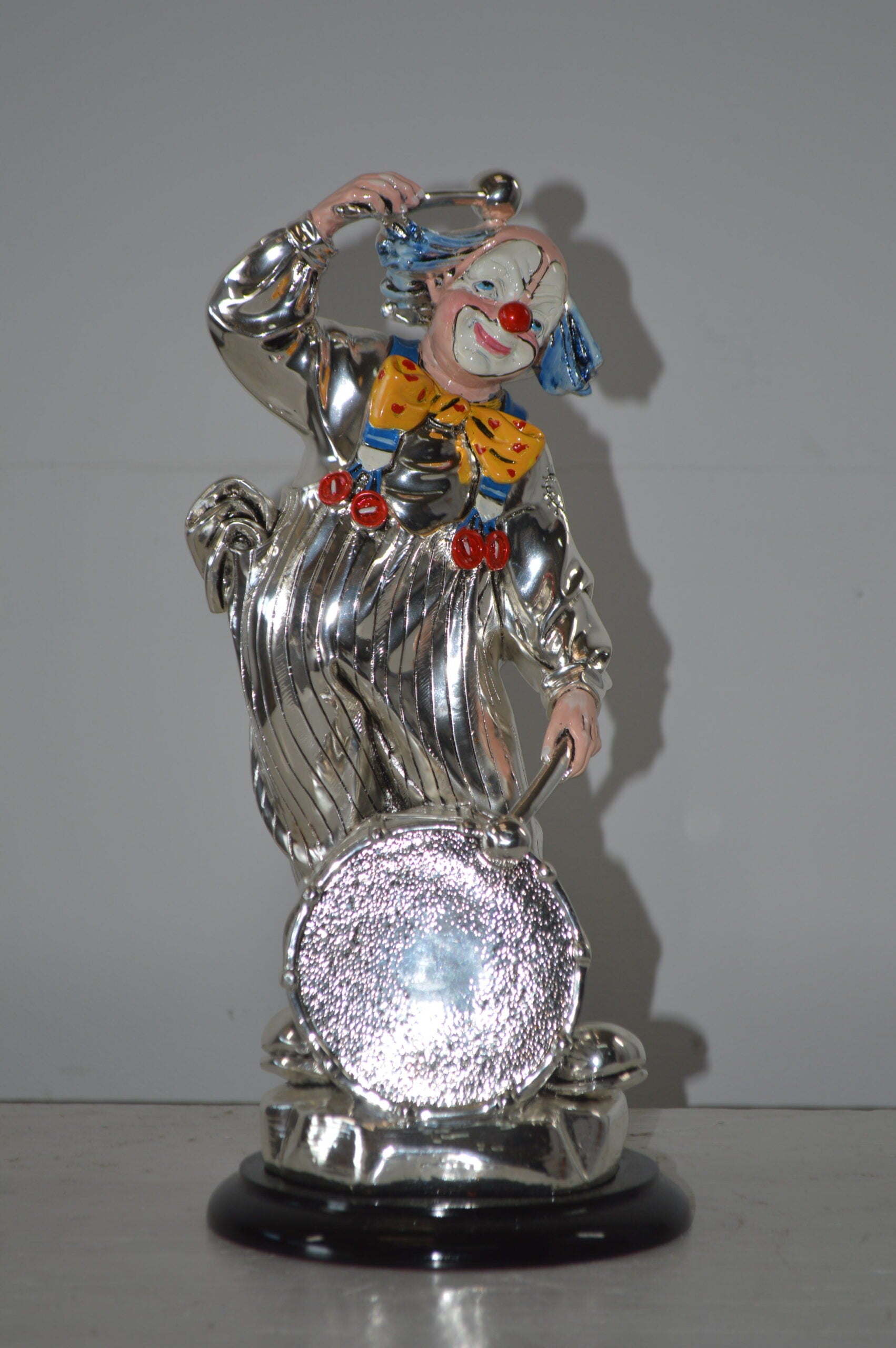 Clown Plays the Drams Resin Statue Silver finish - Size: 6"L x 6"W x 16"H.
