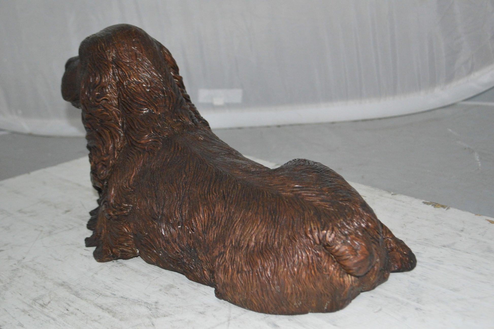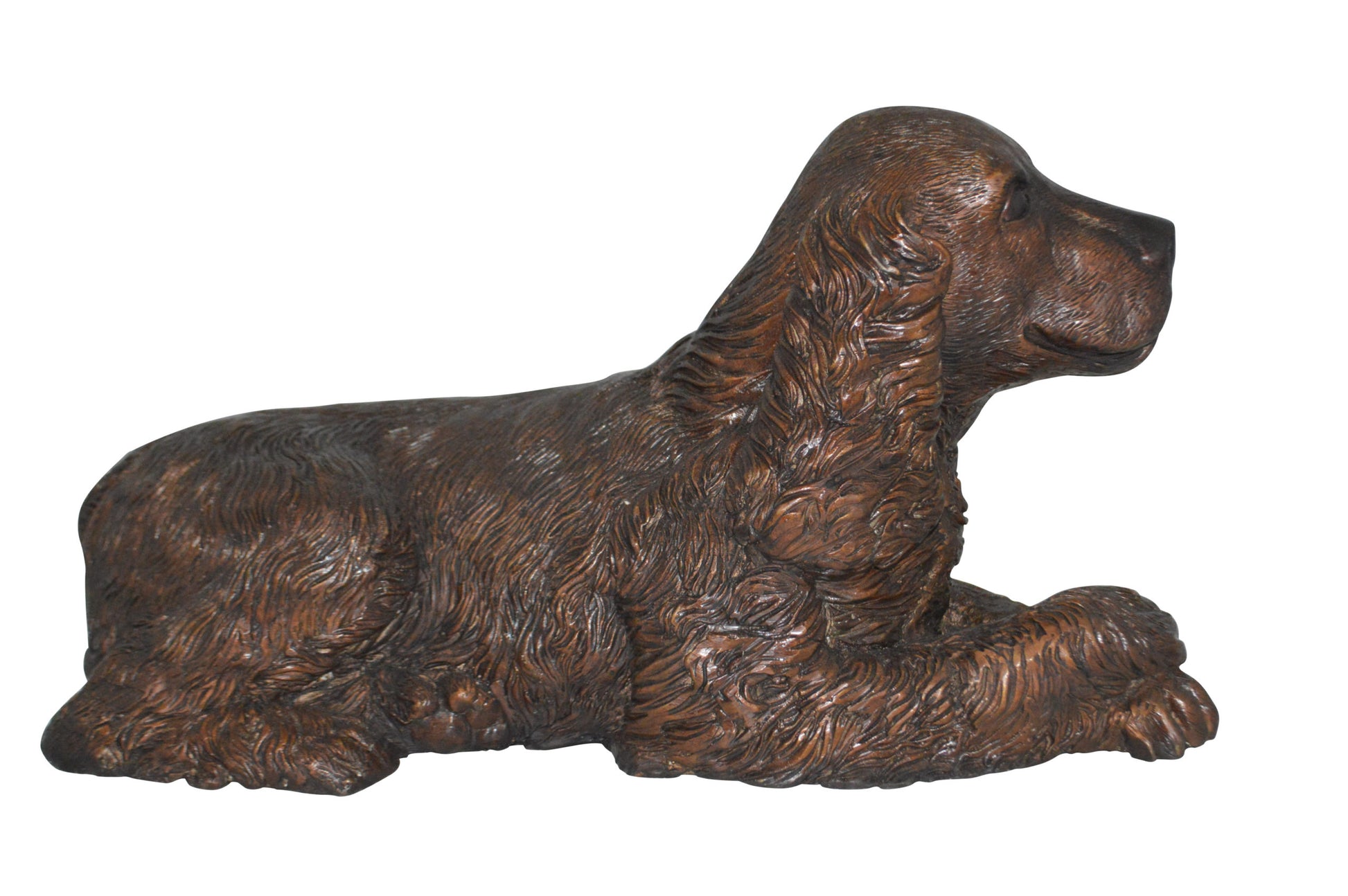Cocker Spaniel dog Crouching Bronze Statue - Size: 20"L x 10"W x 10"H.