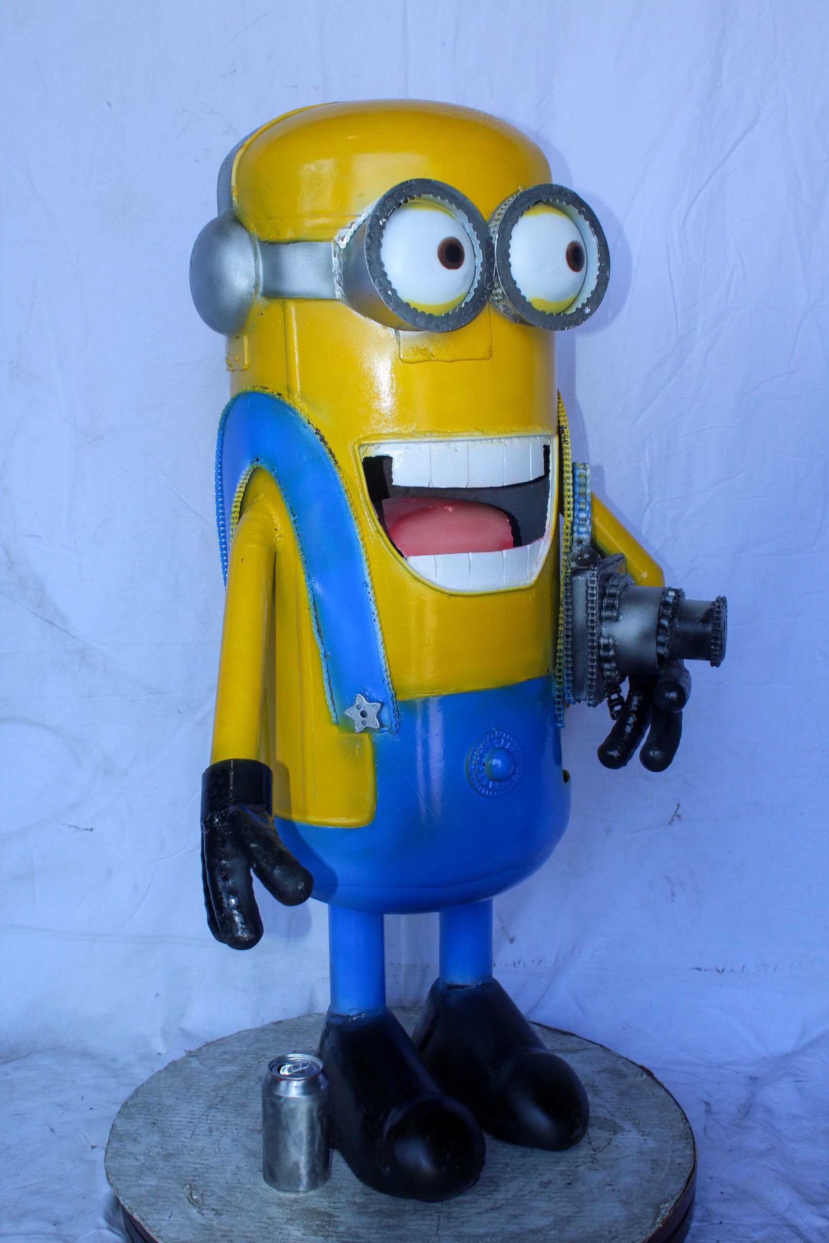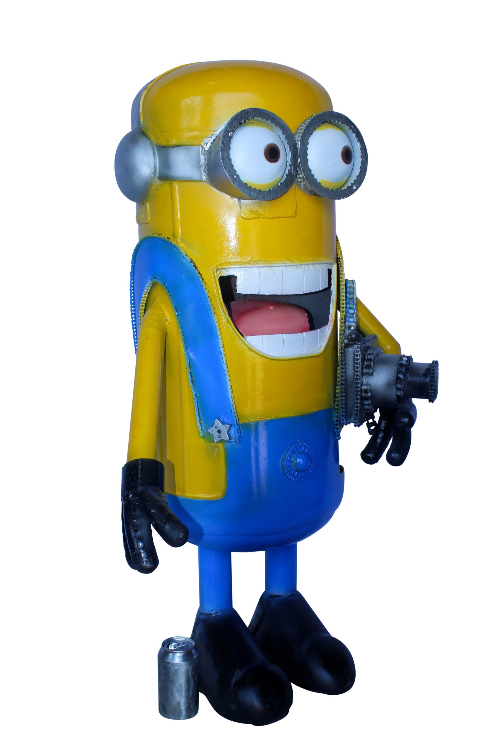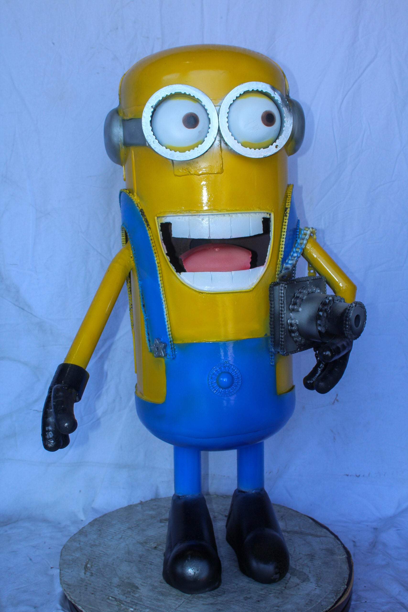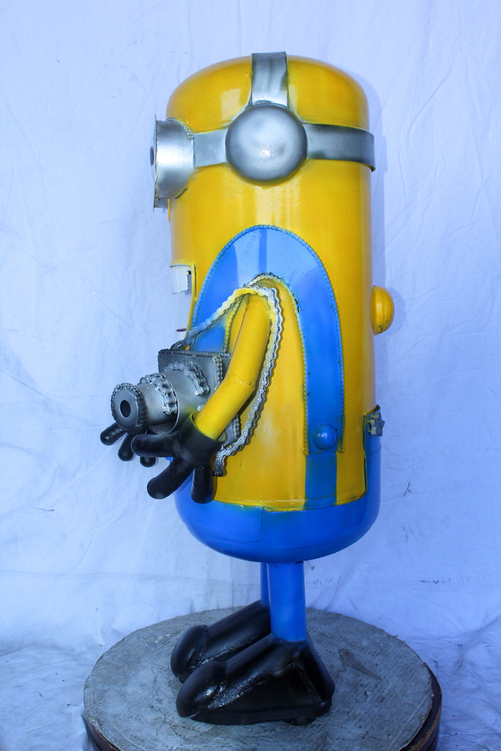 Discover whimsical artistry with this comical metal scrap statue depicting a boy with a camera Handcrafted using scrap metal this piece exudes charm and creativity perfect for adding a playful touch to any space or collection Size: 26"L x 19"W x 42"H. Weight: 78Lb