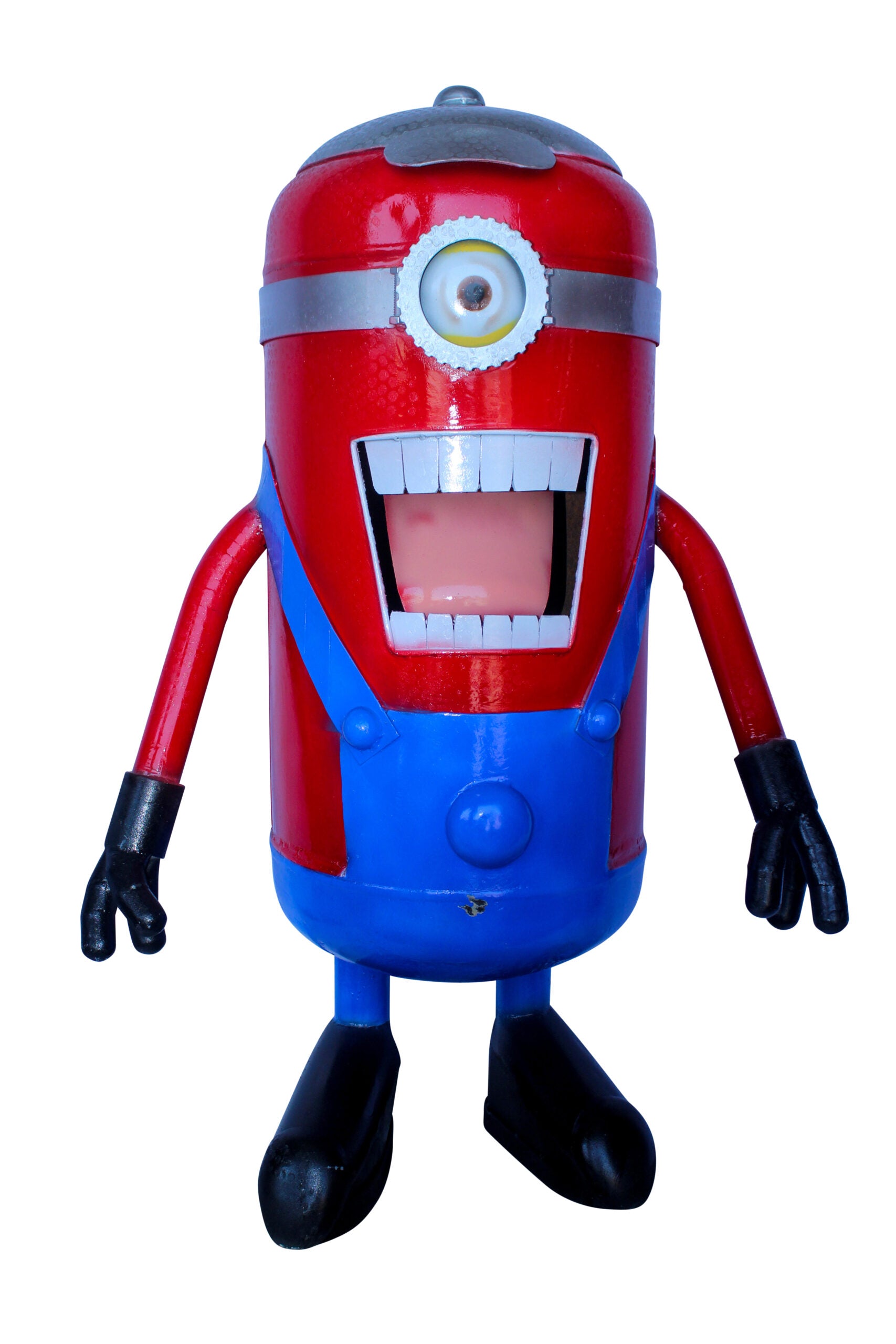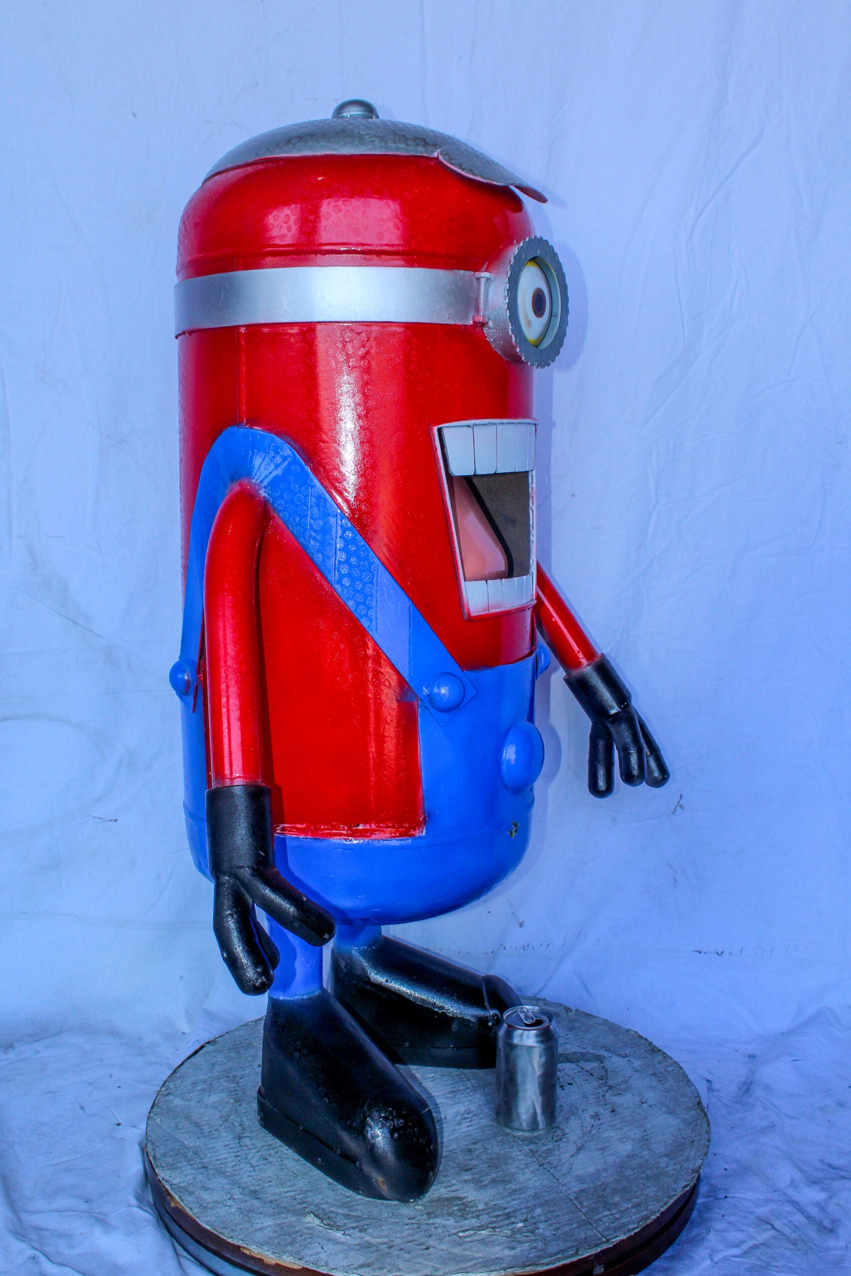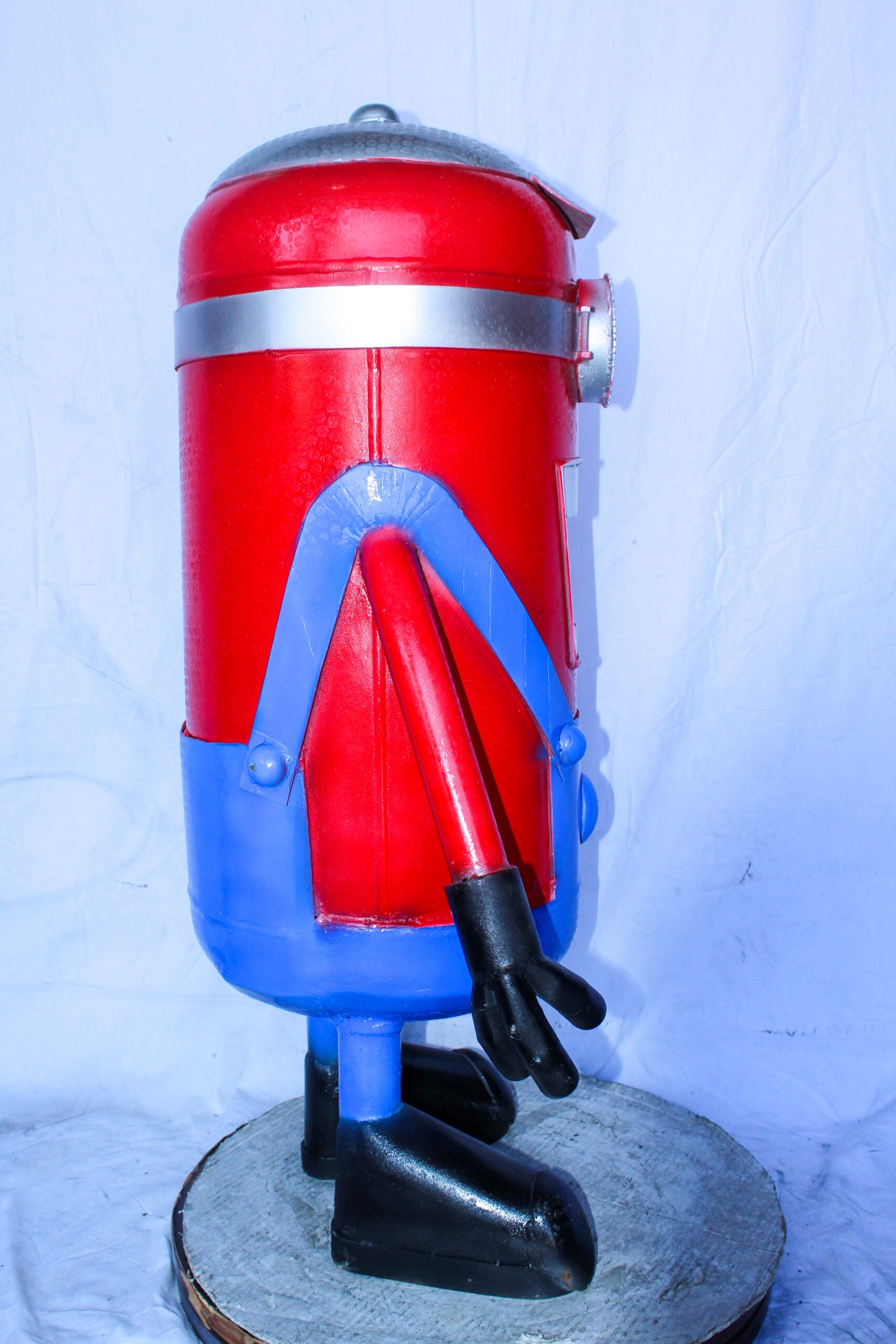 Comical Metal Scrap Statue of Boy With One Eye, Whimsical Art 28" x 15" x 42"H