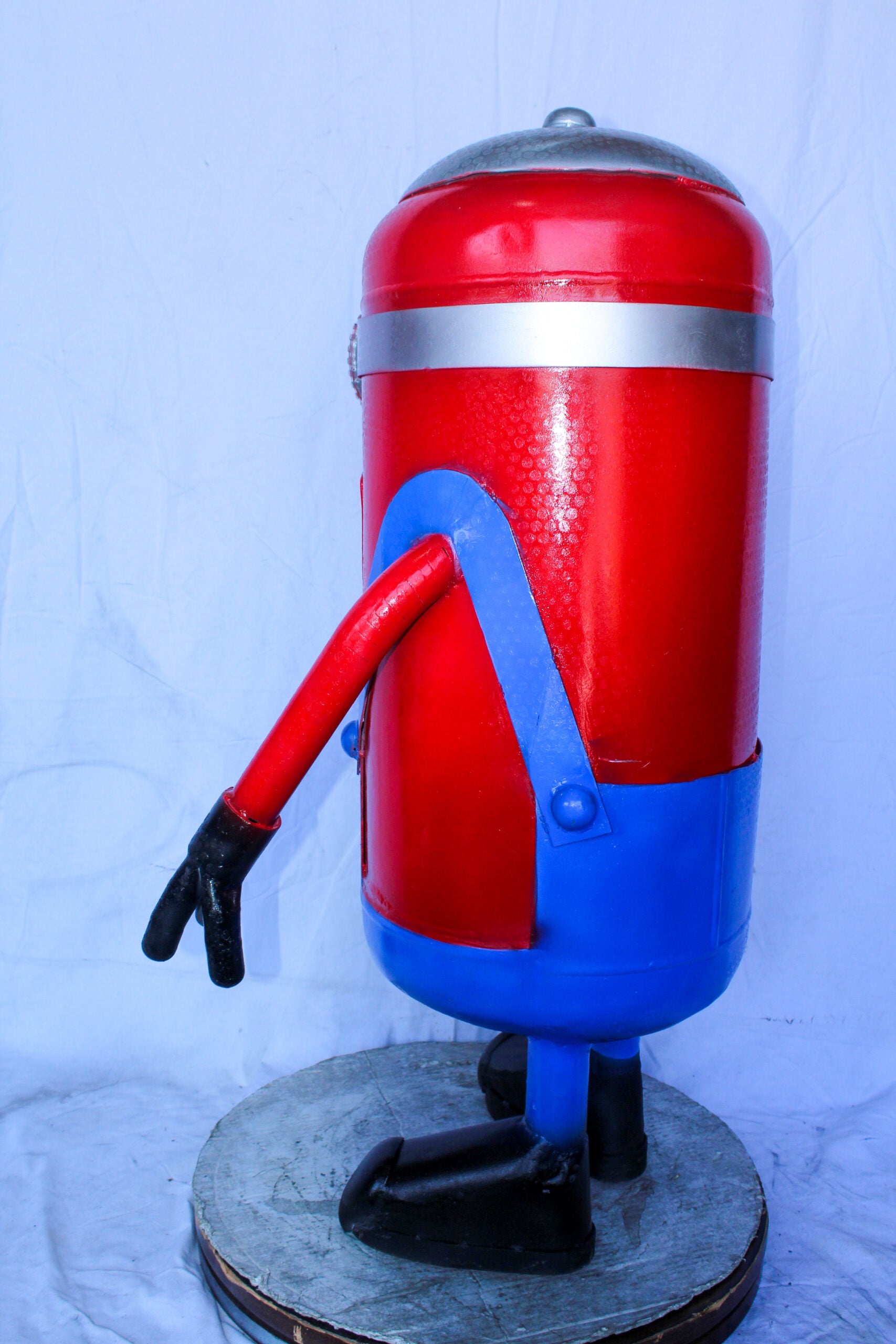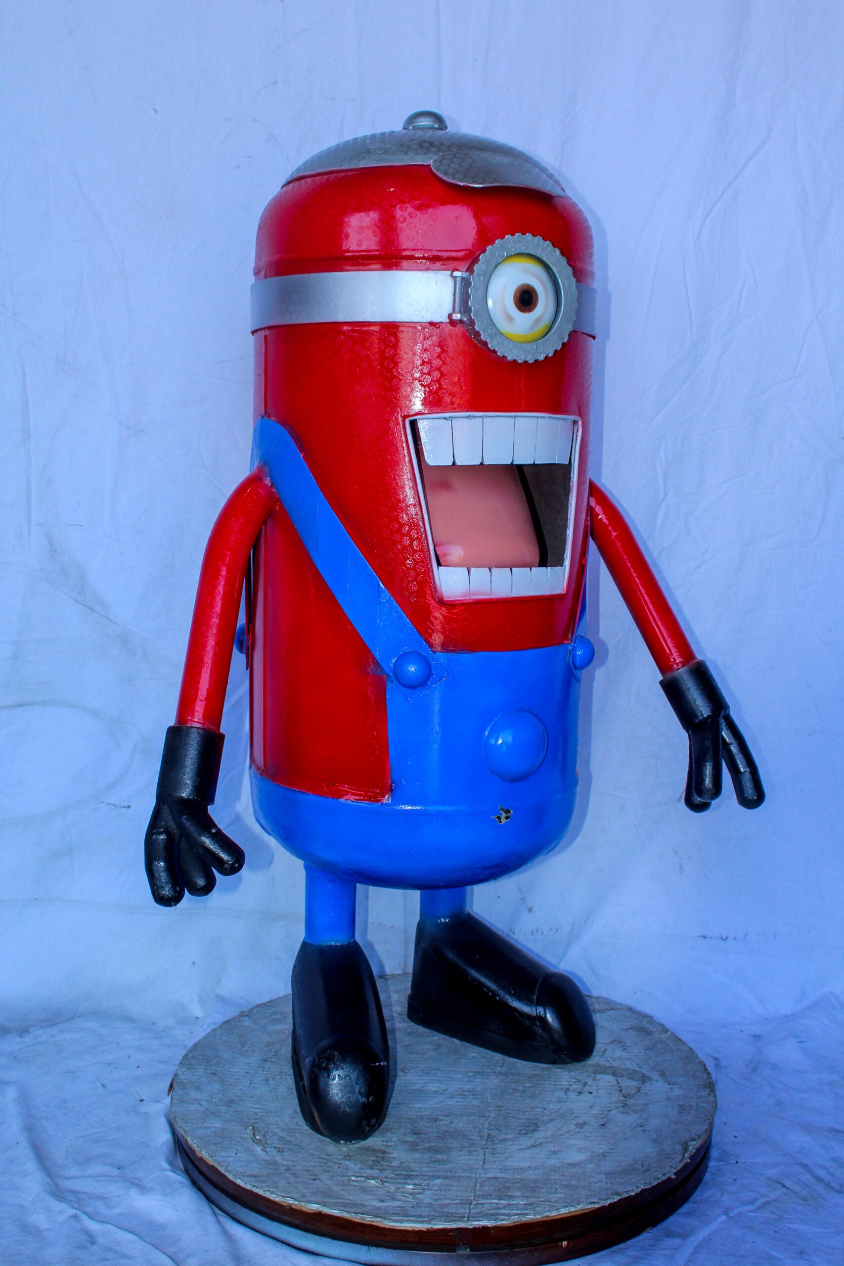 Discover the whimsy of this comical metal scrap statue featuring a boy with one eye. Handcrafted from assorted scrap metals, this piece radiates charm and creativity, adding a playful and unique touch to any art collection or living space. Size: 28"L x 15"W x 42"H. Weight: 78Lb