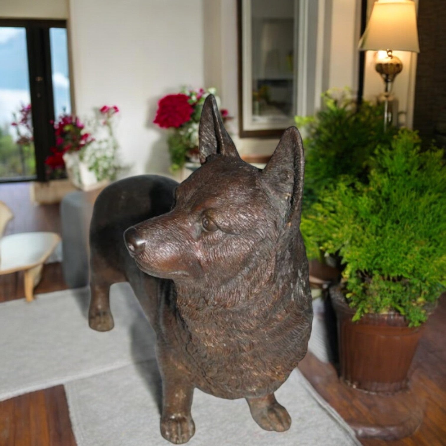 Corgi dog standing Bronze Statue - Size: 20"L x 8"W x 15"H.