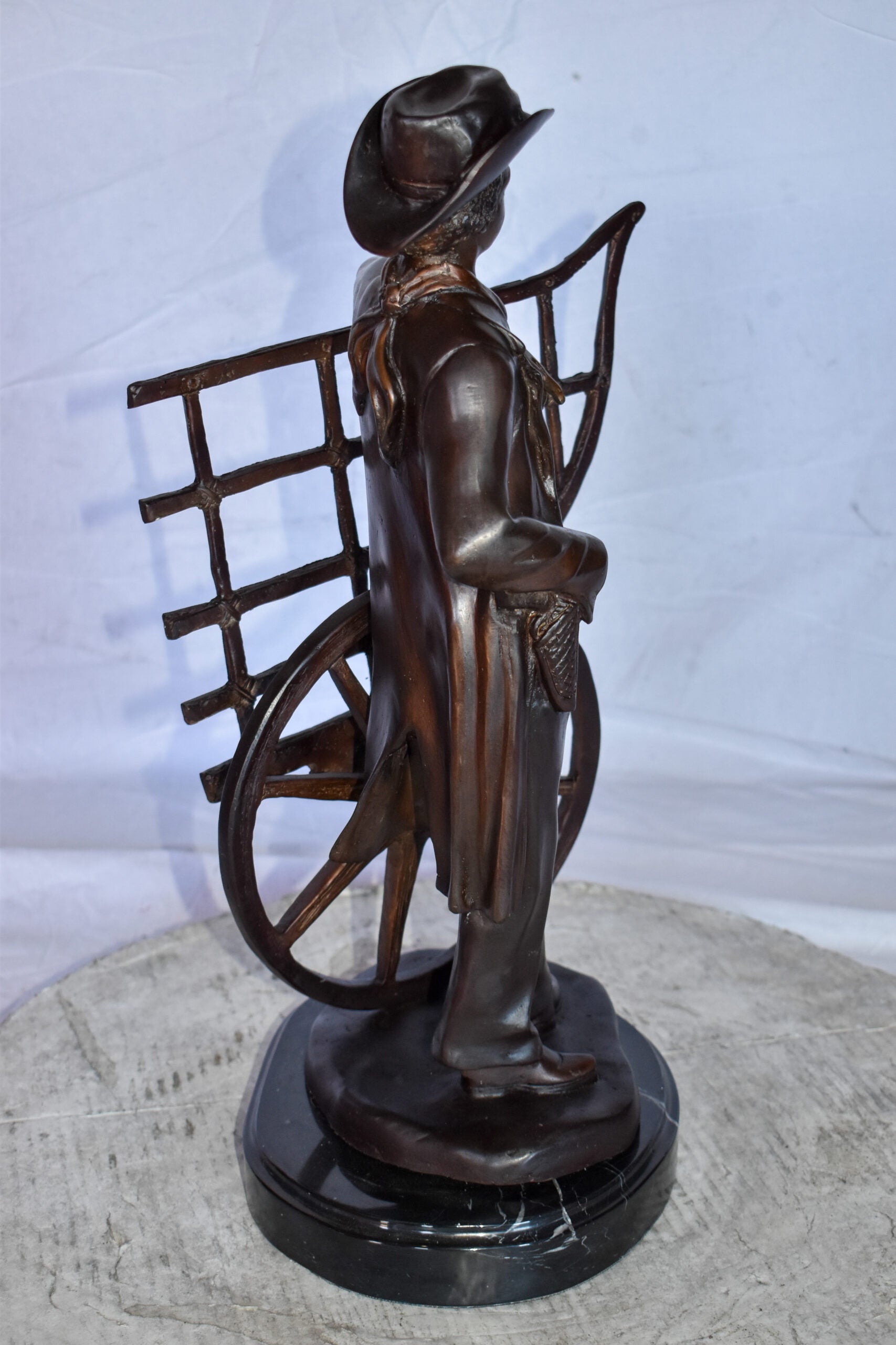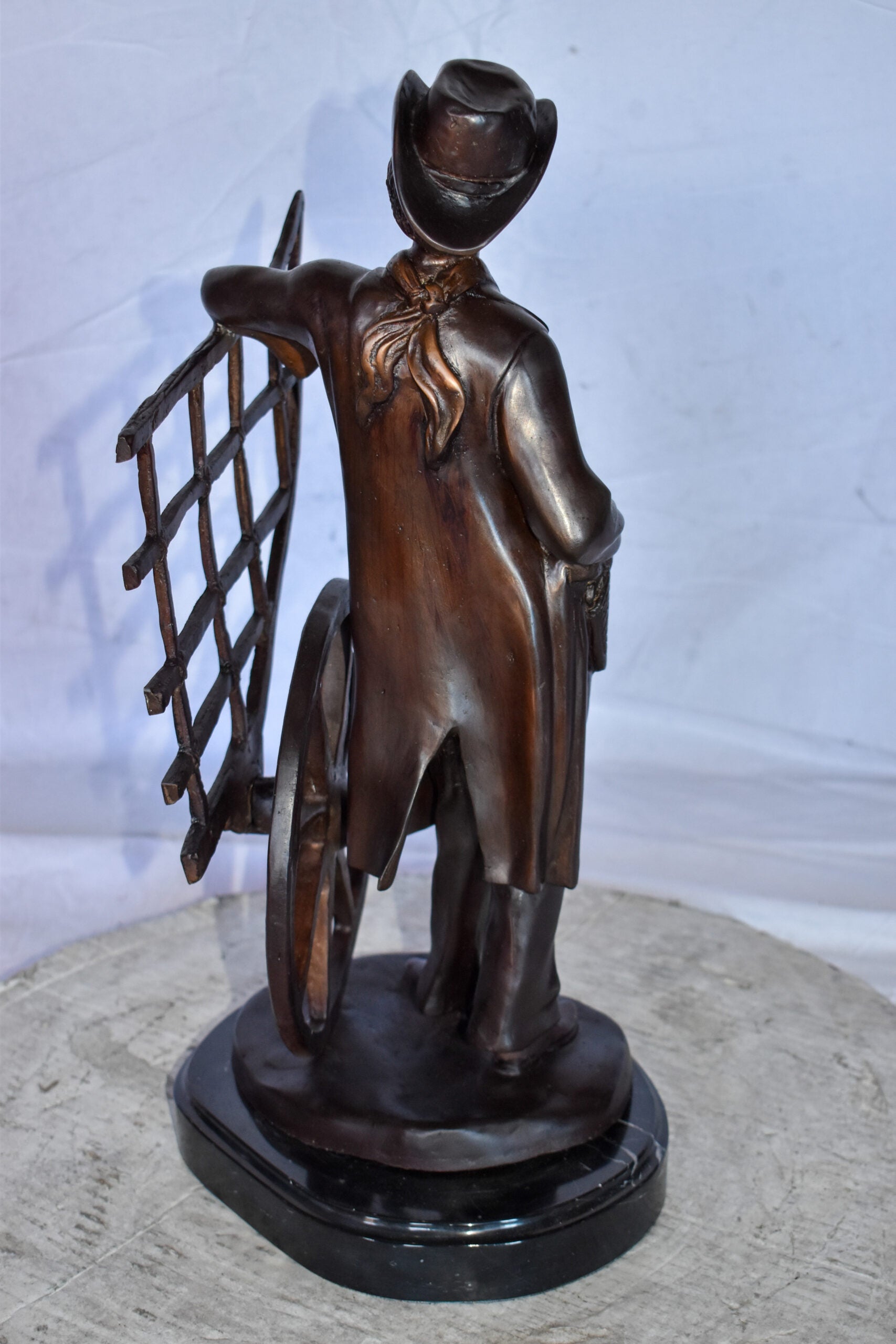 Cowboy Standing by His Carriage Bronze Statue Size: 12" x 8" x 23"H