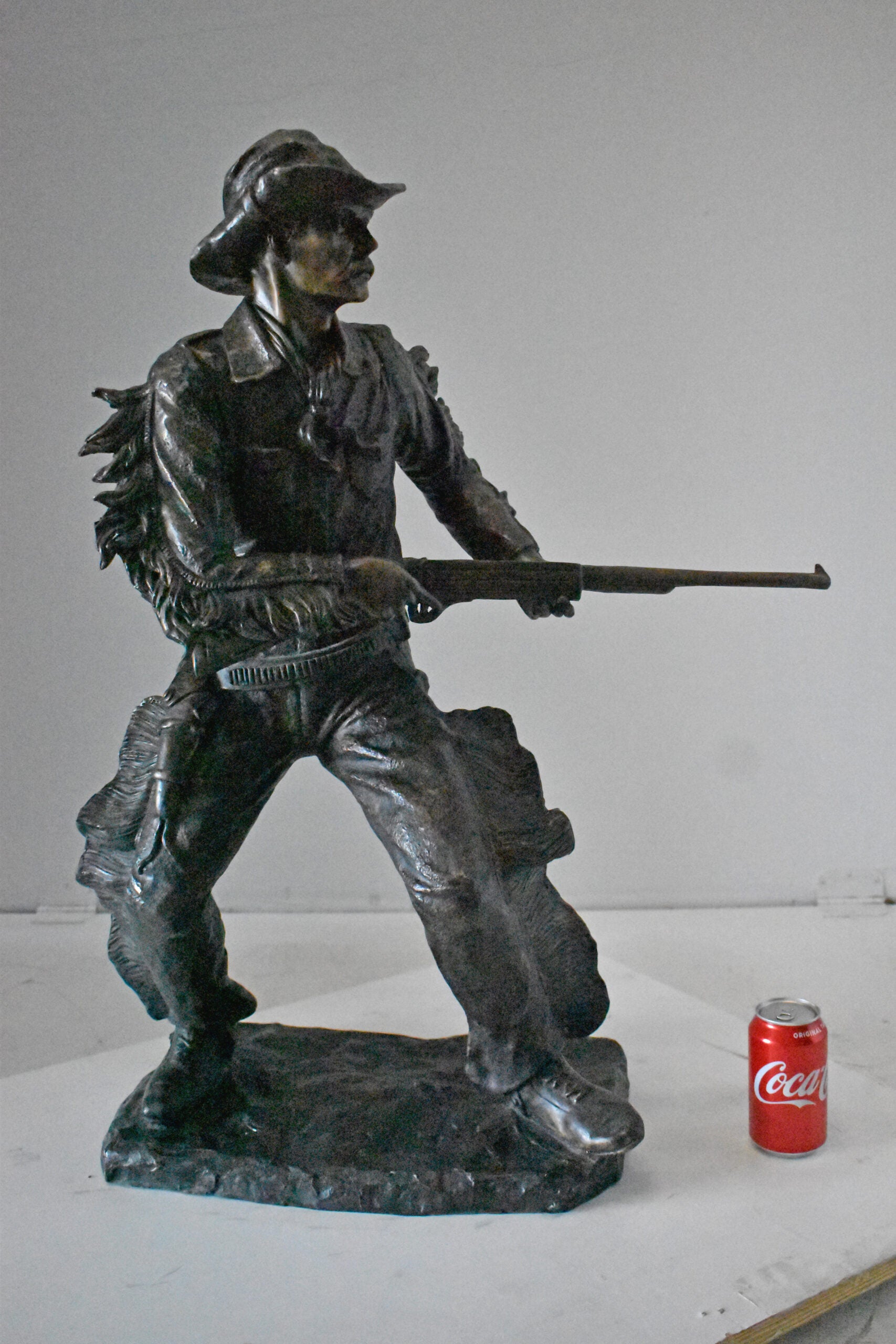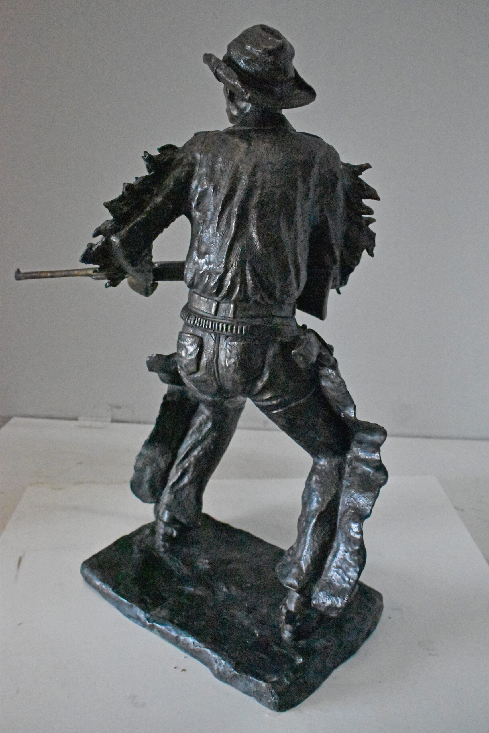 Cowboy with His Gun Bronze Statue - Size: 26"L x 13"W x 33"H.