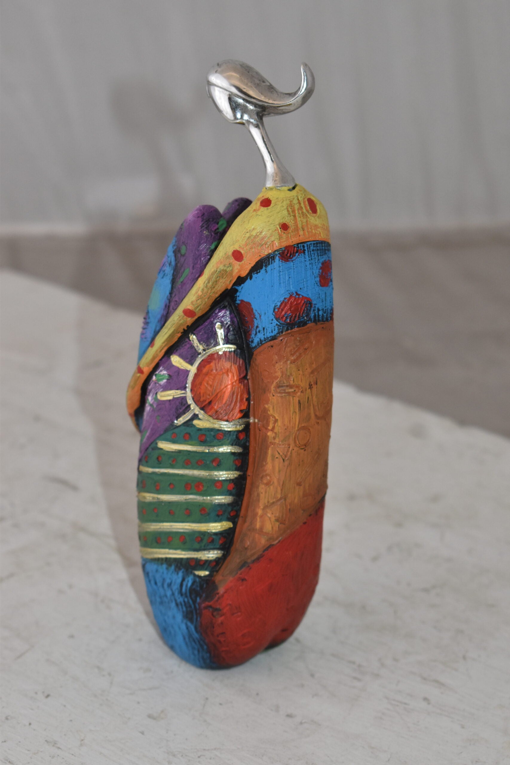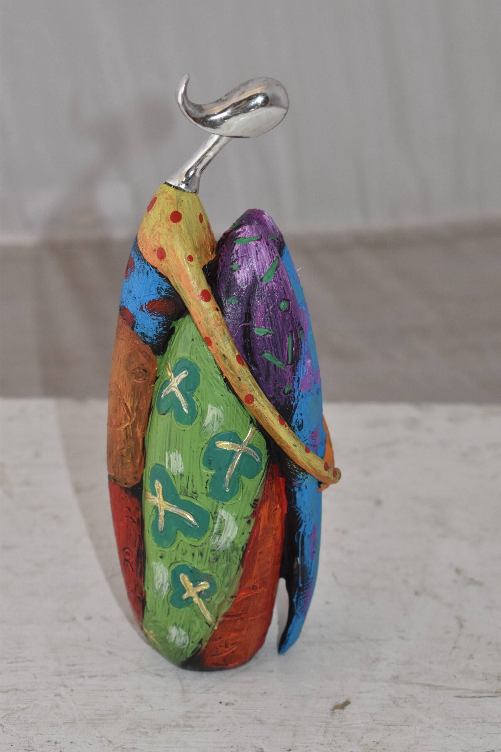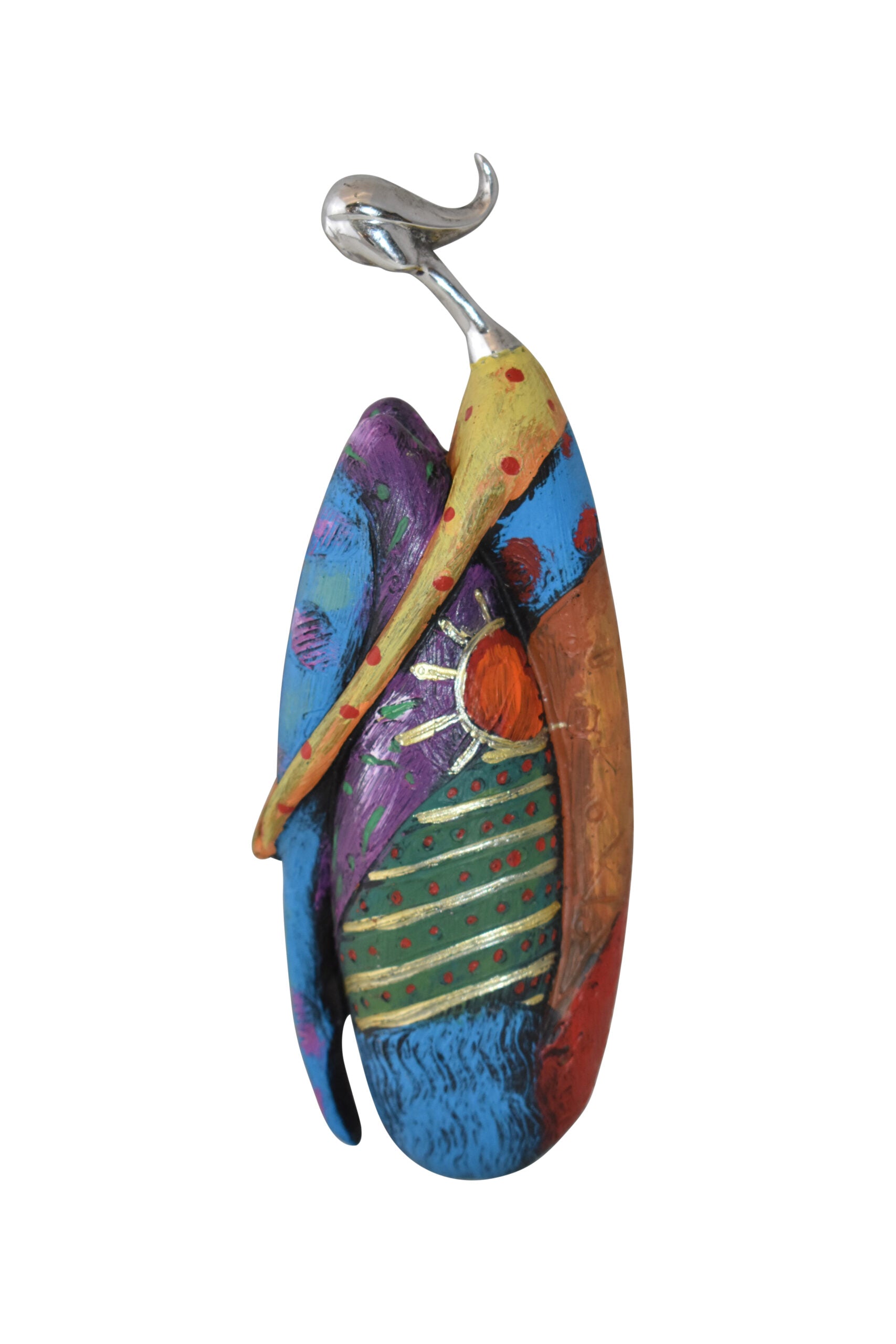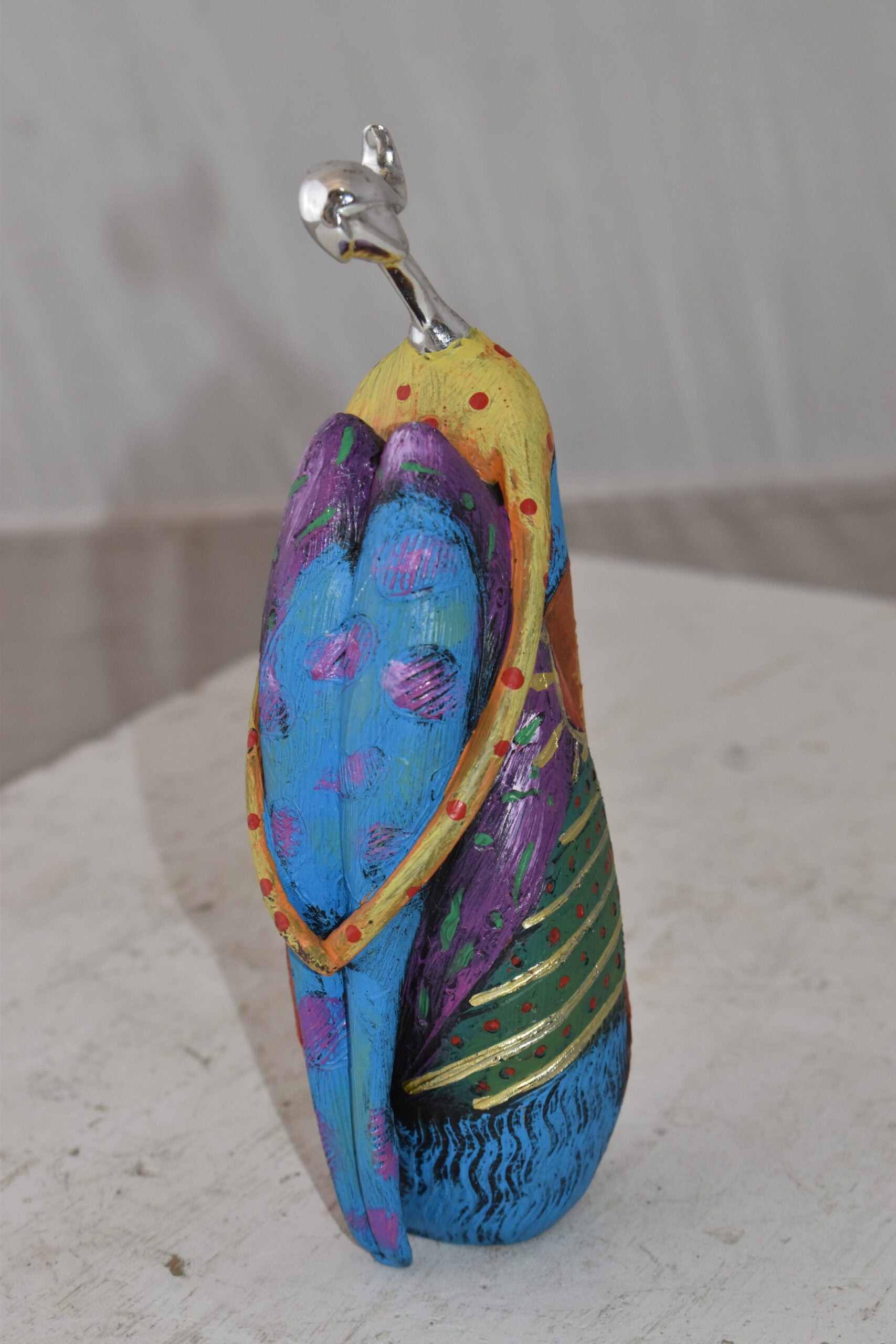 This distinctive resin statue displays the emotion and character of human kind. With the woman placed in a cradled position holding her legs, it sets the tone to allow viewers to interpret her emotion and situation as they please. Art is meant to open the mind to imagination, and this colorful and unique statue does just that. Size: 3"L x 3"W x 10"H. Weight is: 4Lb