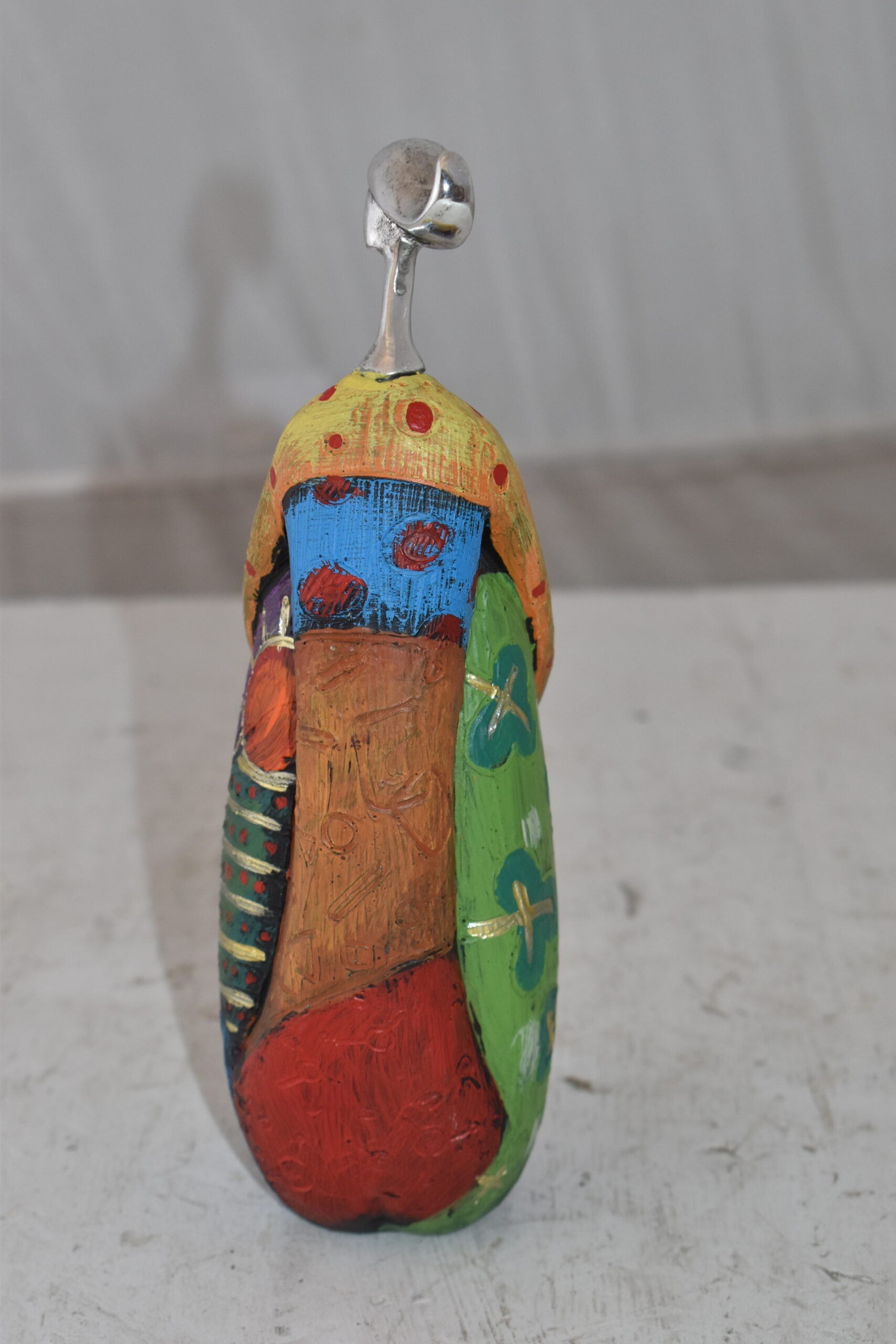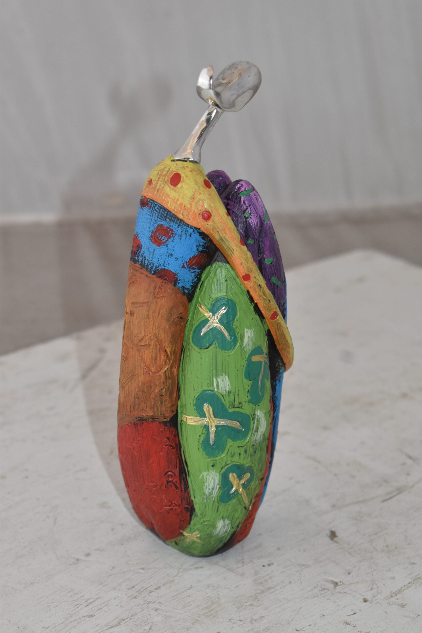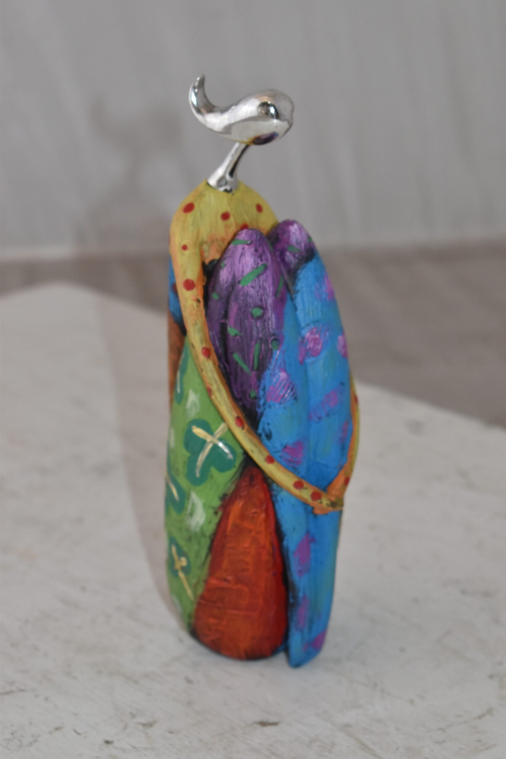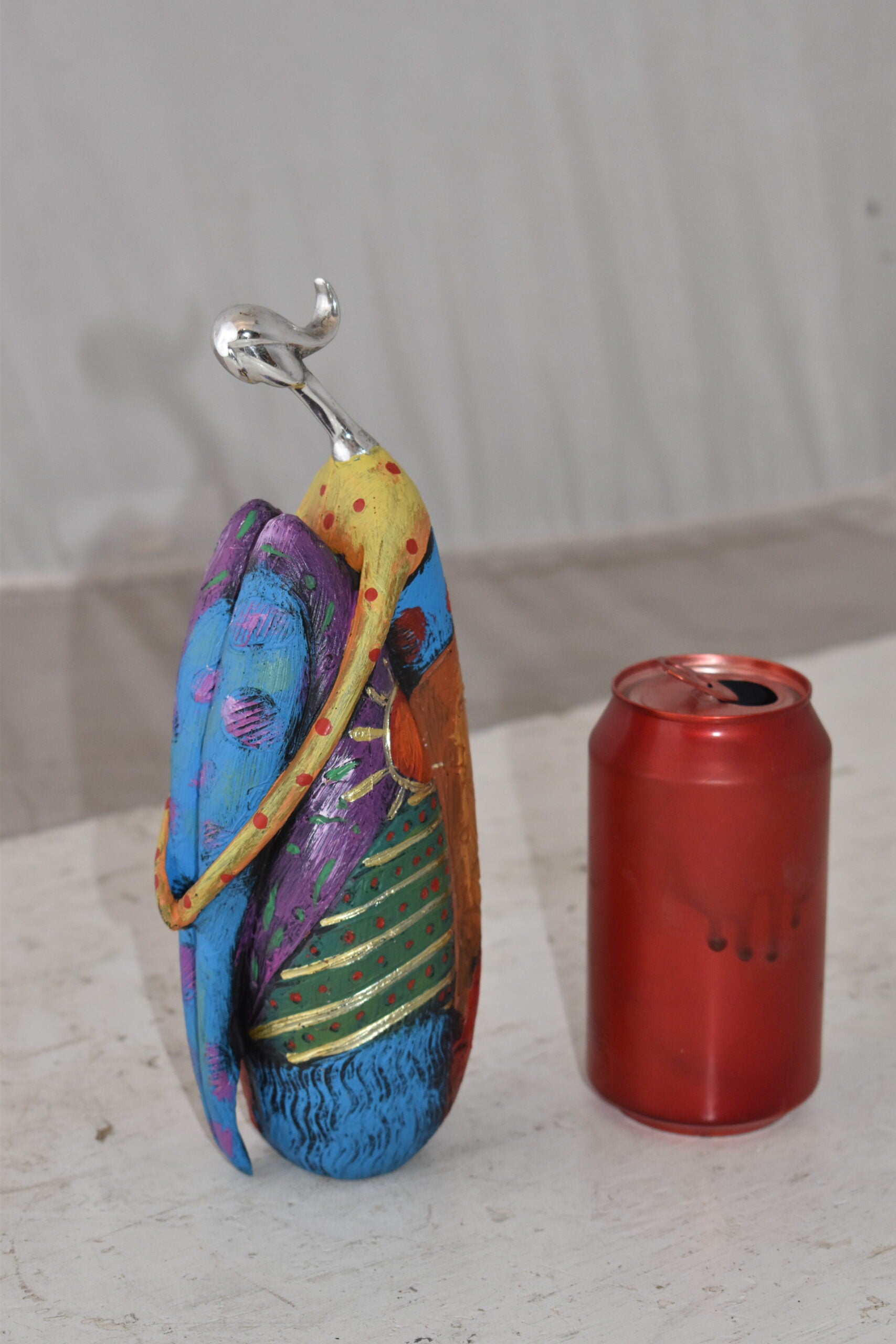 This distinctive resin statue displays the emotion and character of human kind. With the woman placed in a cradled position holding her legs, it sets the tone to allow viewers to interpret her emotion and situation as they please. Art is meant to open the mind to imagination, and this colorful and unique statue does just that. Size: 3"L x 3"W x 10"H. Weight is: 4Lb