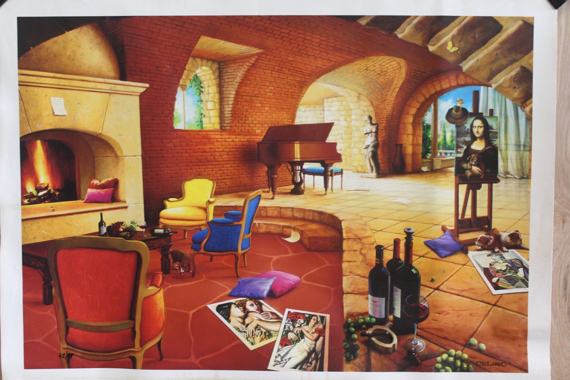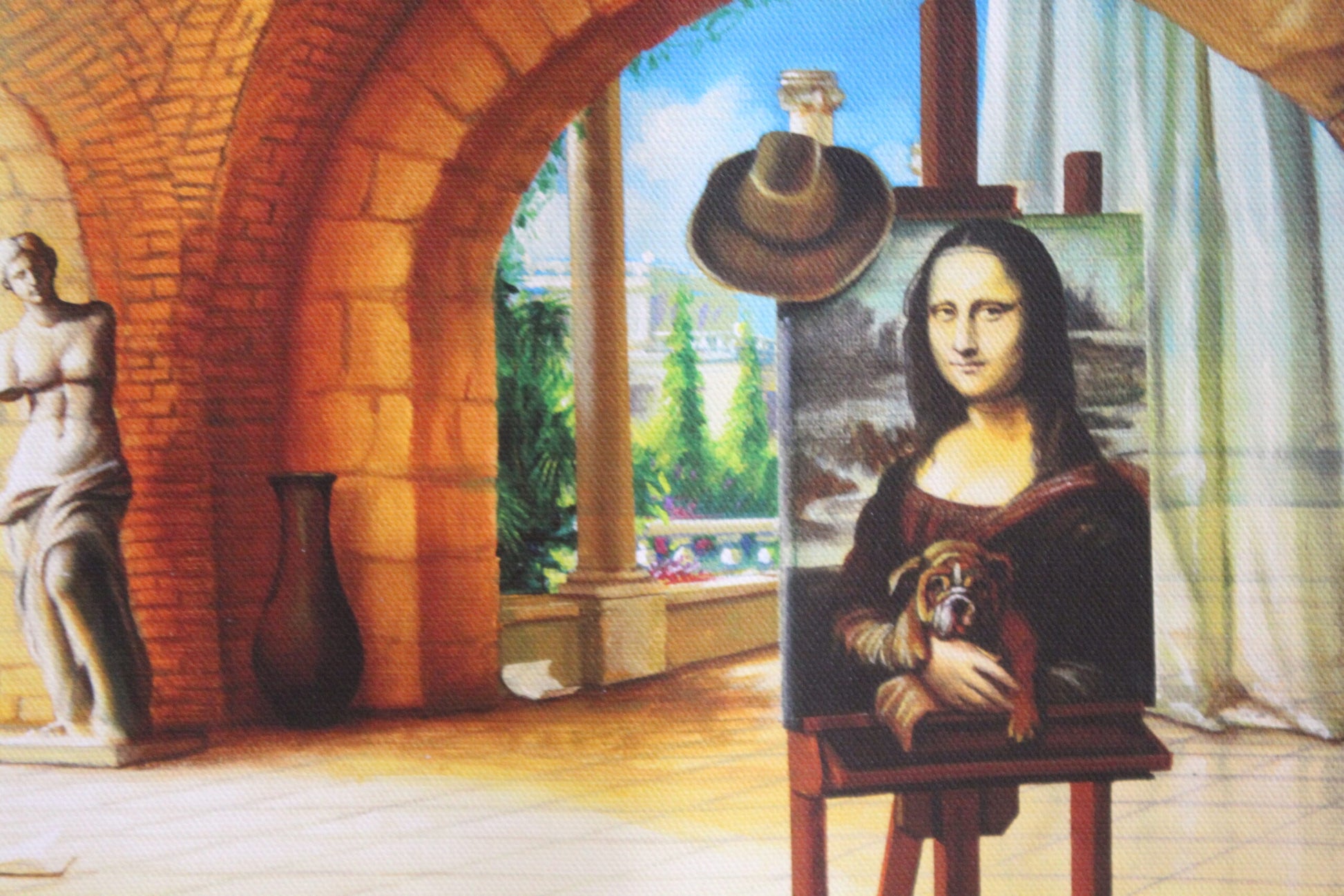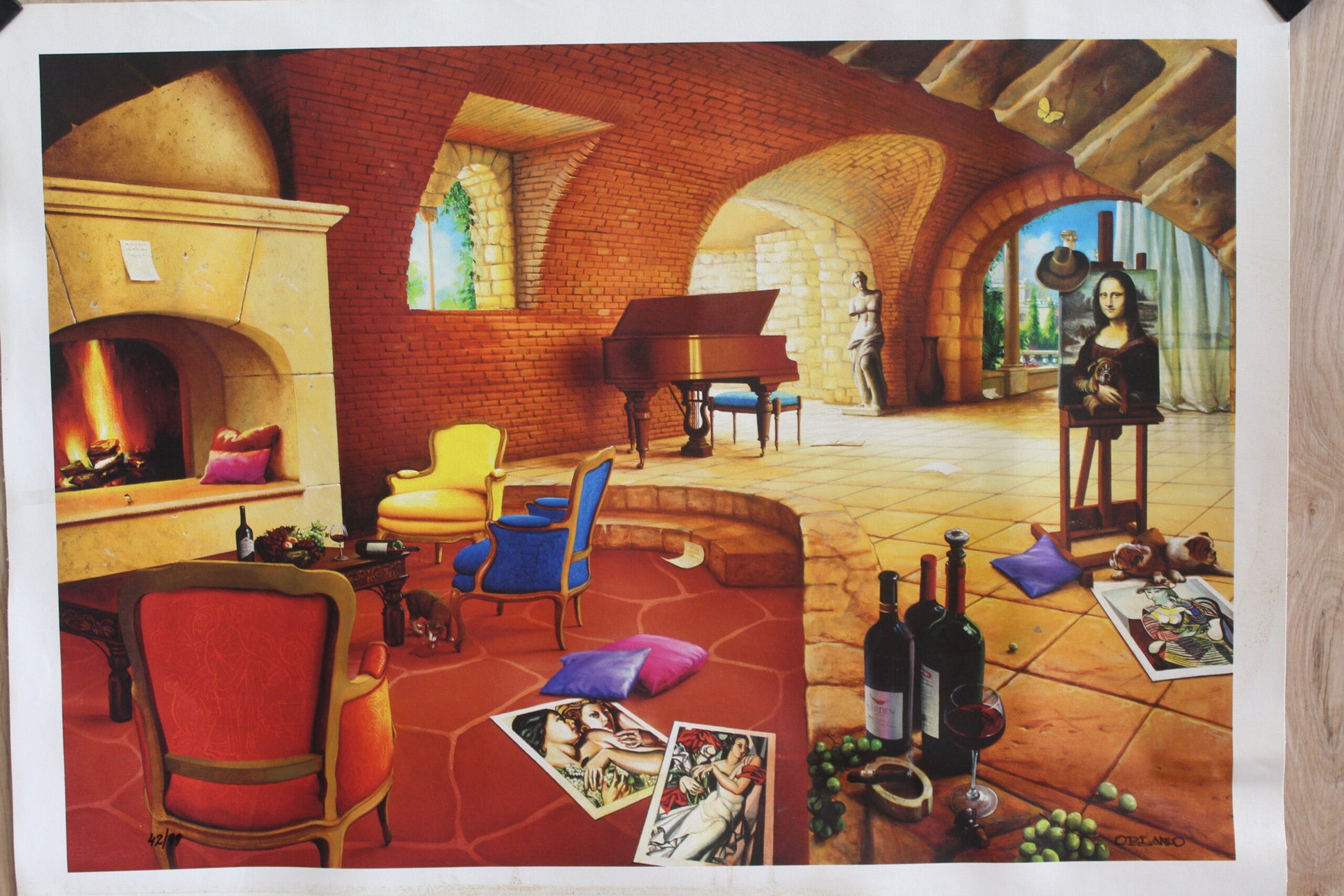 Catch the eyes of all of your guests and visitors in your home with this beautiful and bold painting by Orlando Quevedo. Daybrake is a piece that incorporates the artistic element of magical realism, and does so through the realistic design of the painting yet the uniqueness of its creativity. With famous aspects such as The Mona Lisa by Leonardo Da Vinci, this is a must have piece of beautiful art. Size: 30"L x 20"W