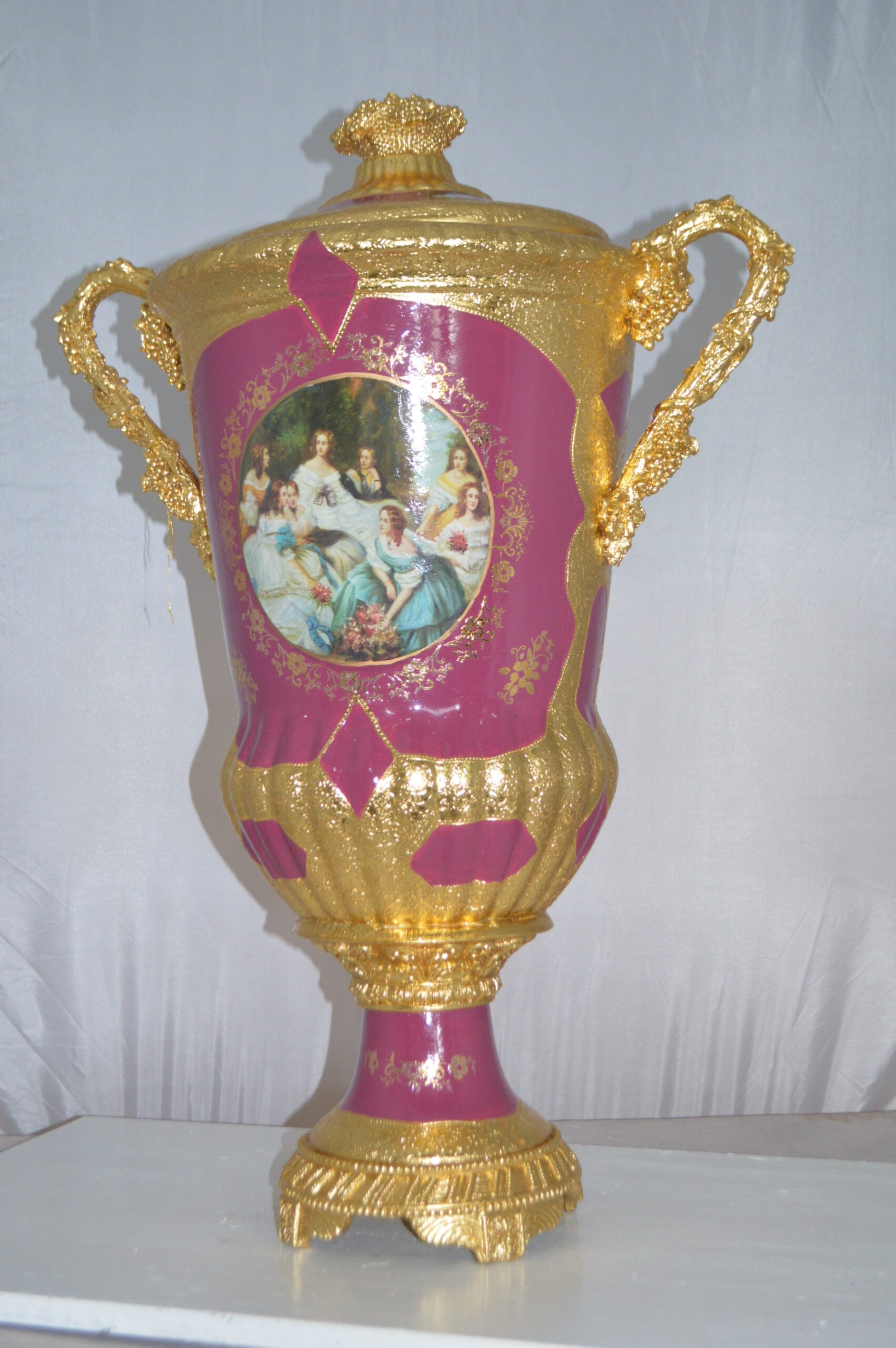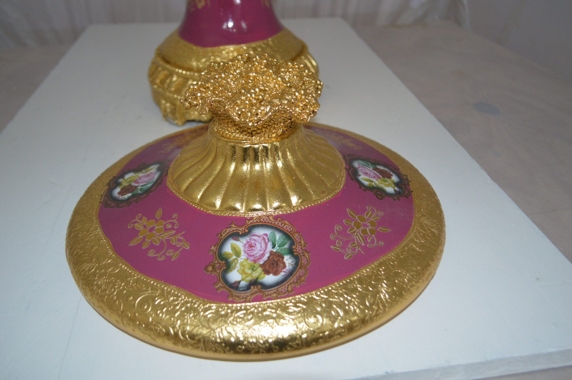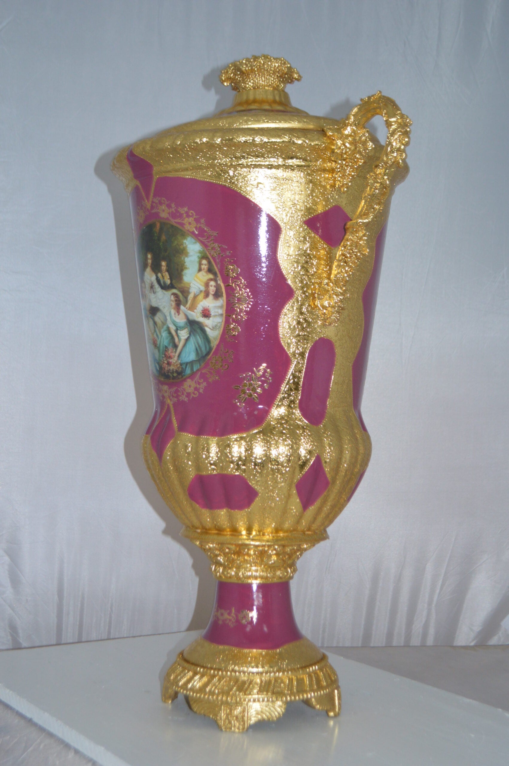 Decoration Vase with cover gold and pink - Size: 23"L x 16"W x 33"H.