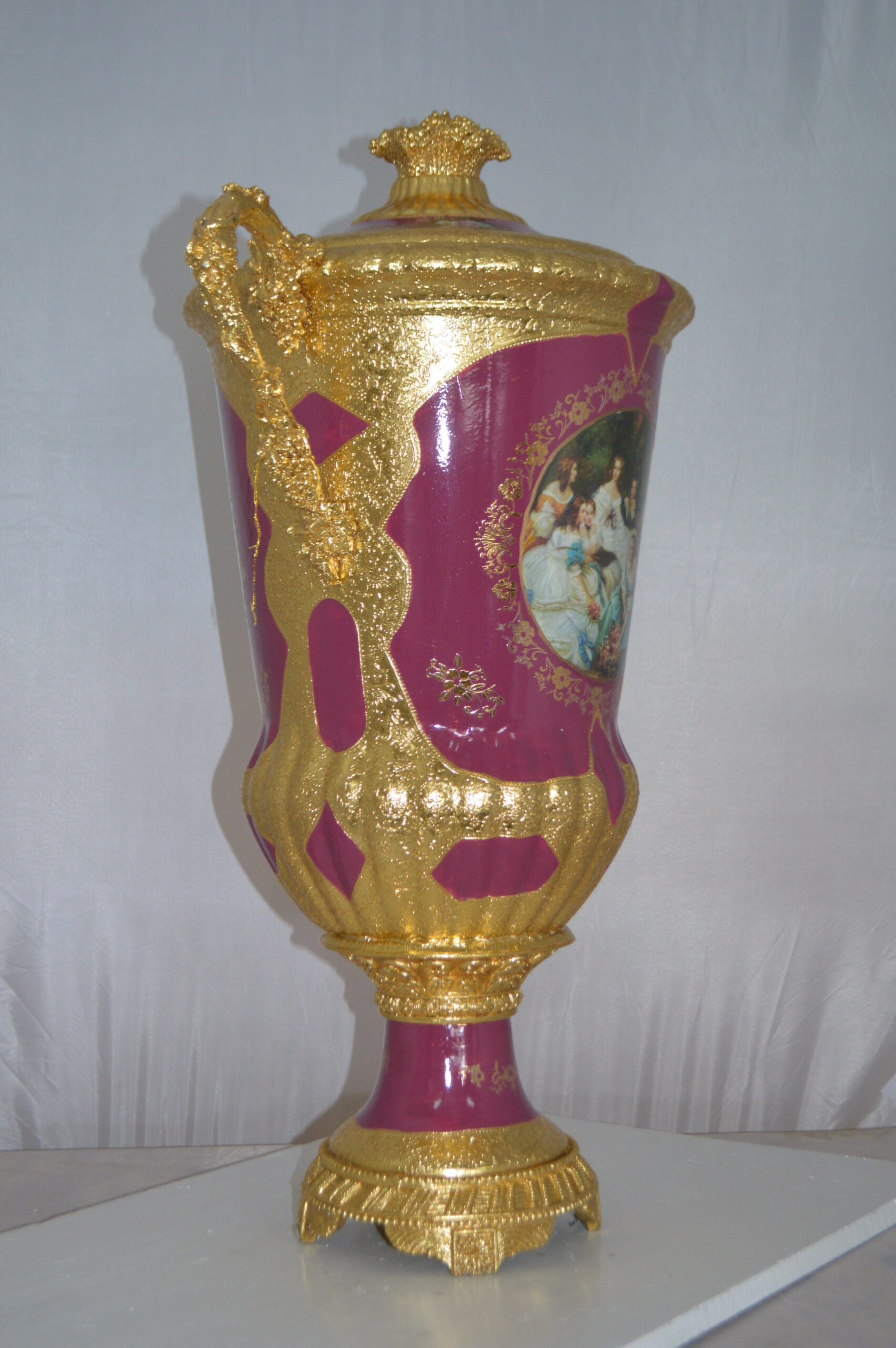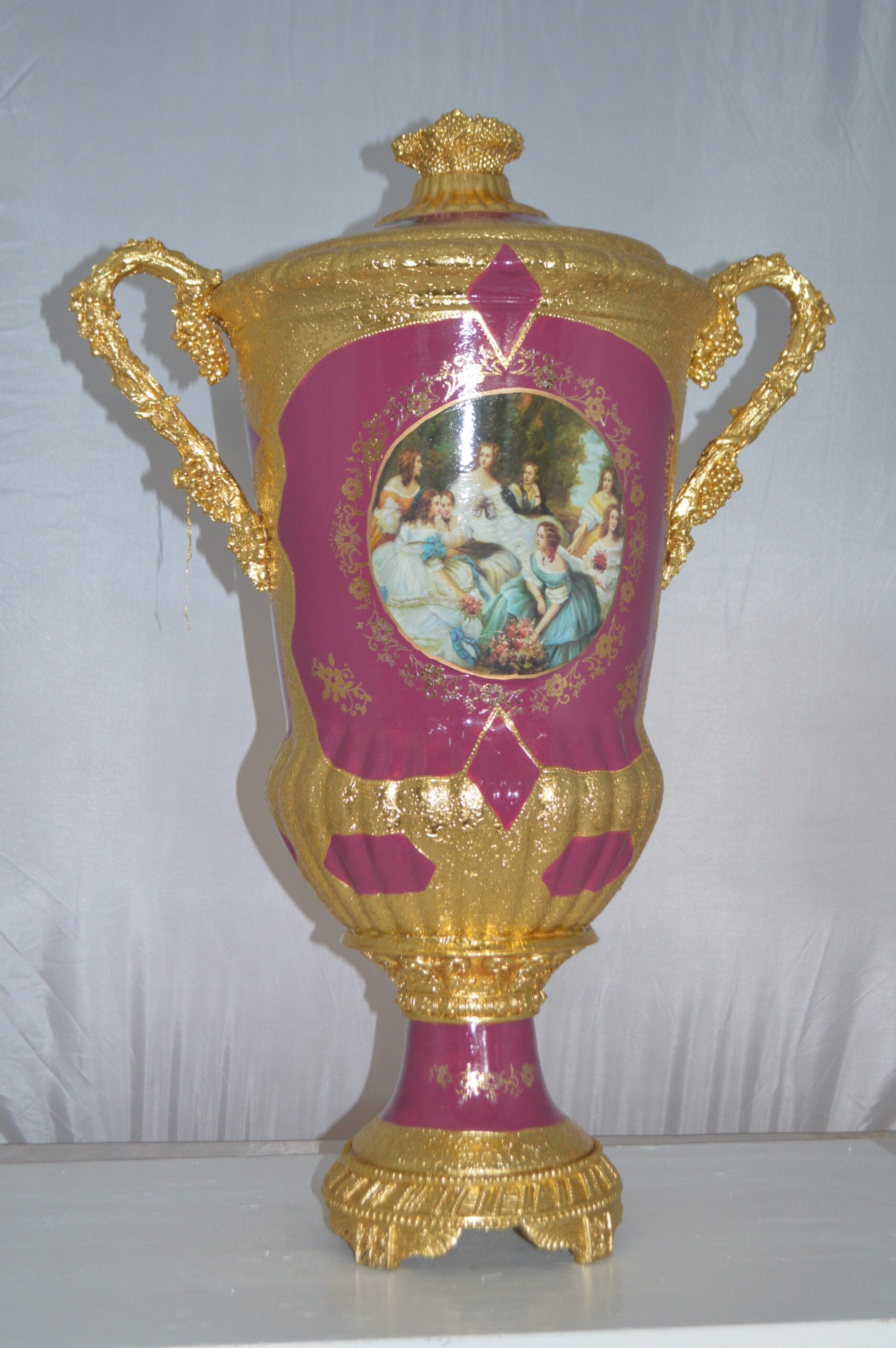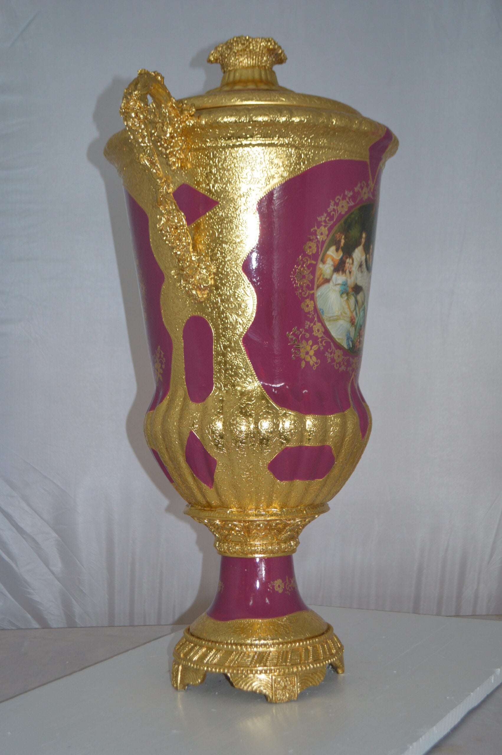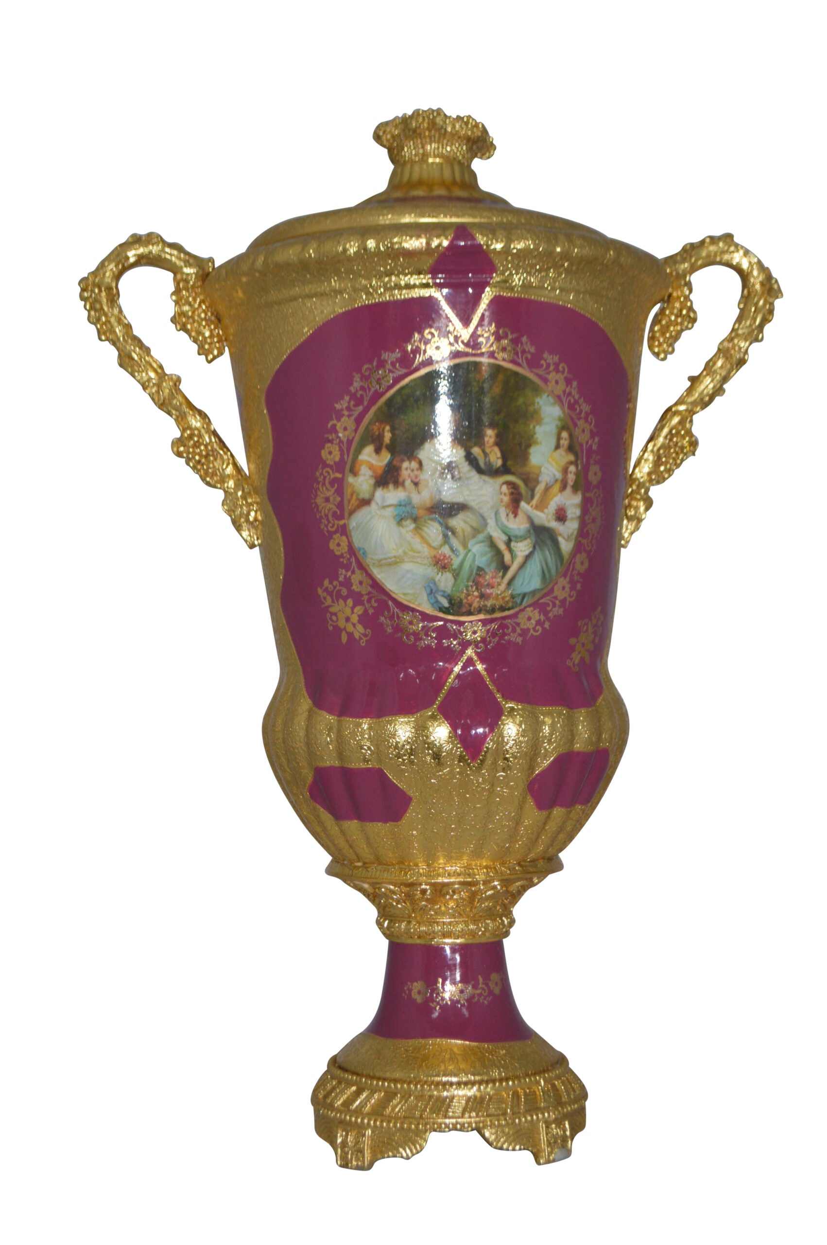 Decoration Vase with cover gold and pink - Size: 23"L x 16"W x 33"H.