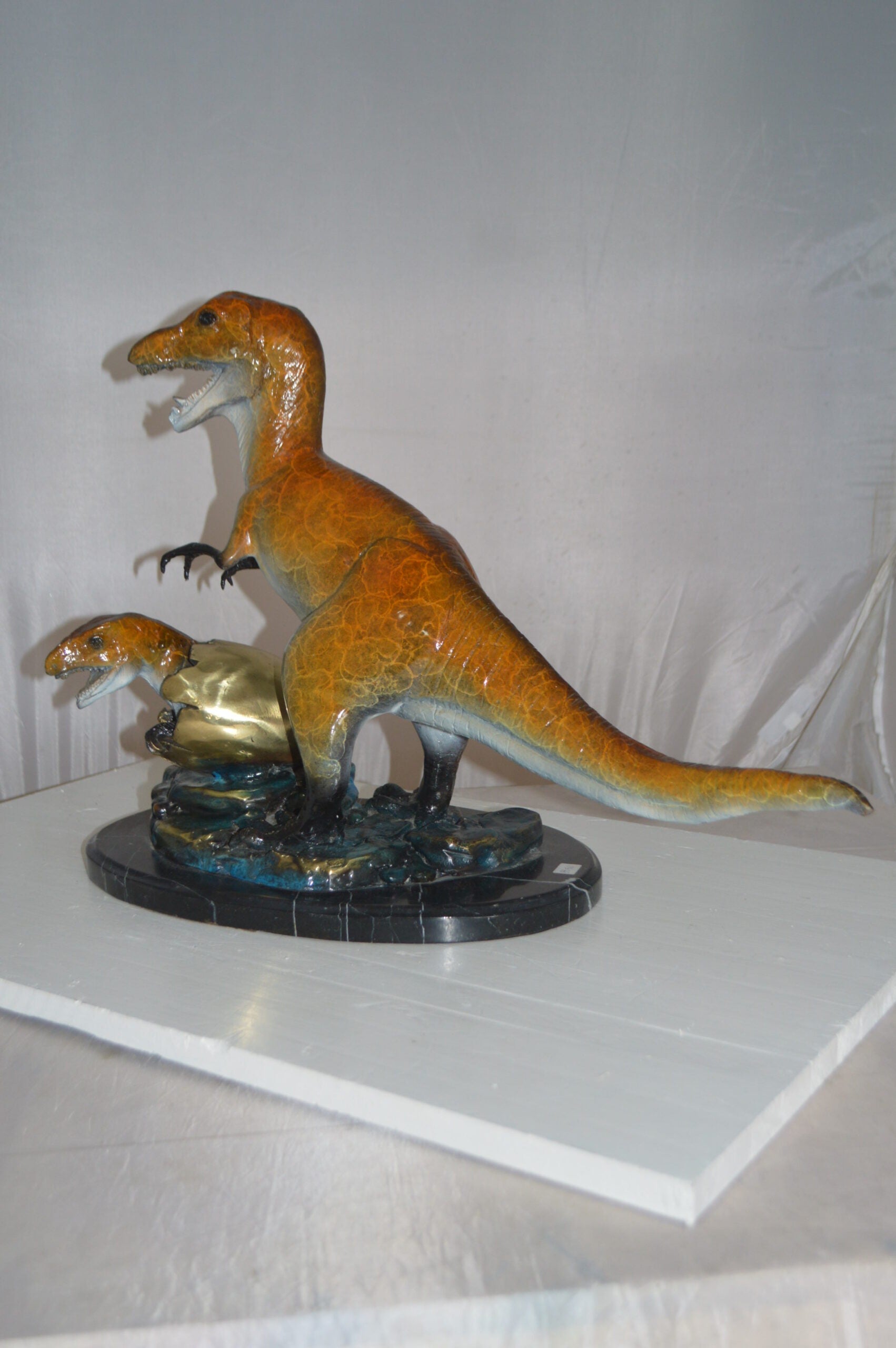 Dinosaur and baby Dino Bronze Statue - Size: 26"L x 11"W x 18"H.