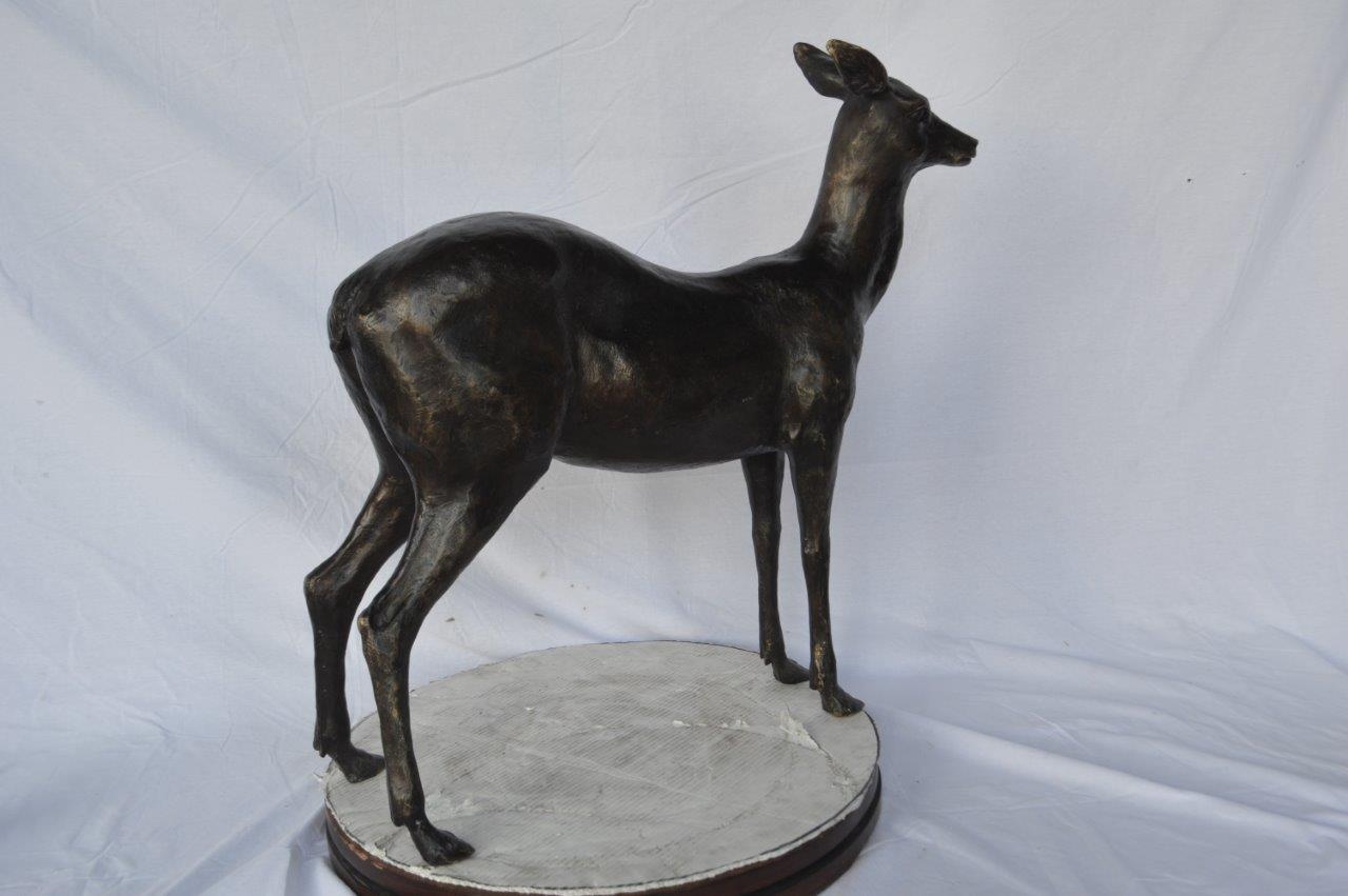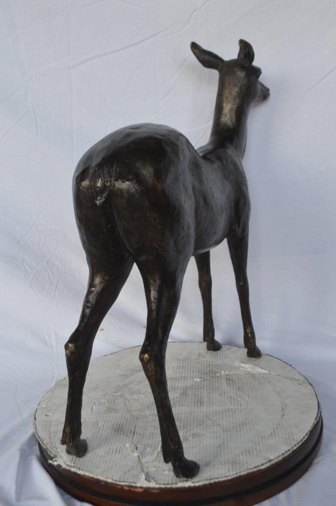 Doe - baby deer bronze statue - Size: 30"L x 8"W x 30"H.