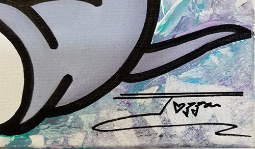 Dumbo, A Wall Art Painting, by Jozza, Original Mixed Media on canvas, hand signed by artist. Jozza, born in 1958 in Hidrolandia, a small town located in central Brazil, one of the most exciting Pop Artists in the world today, creates his artistic vision with vibrant imagery and combinations of bright color and hard-edged abstract subjects. This artwork comes stretched ready for framing. Image Size: 16x20.