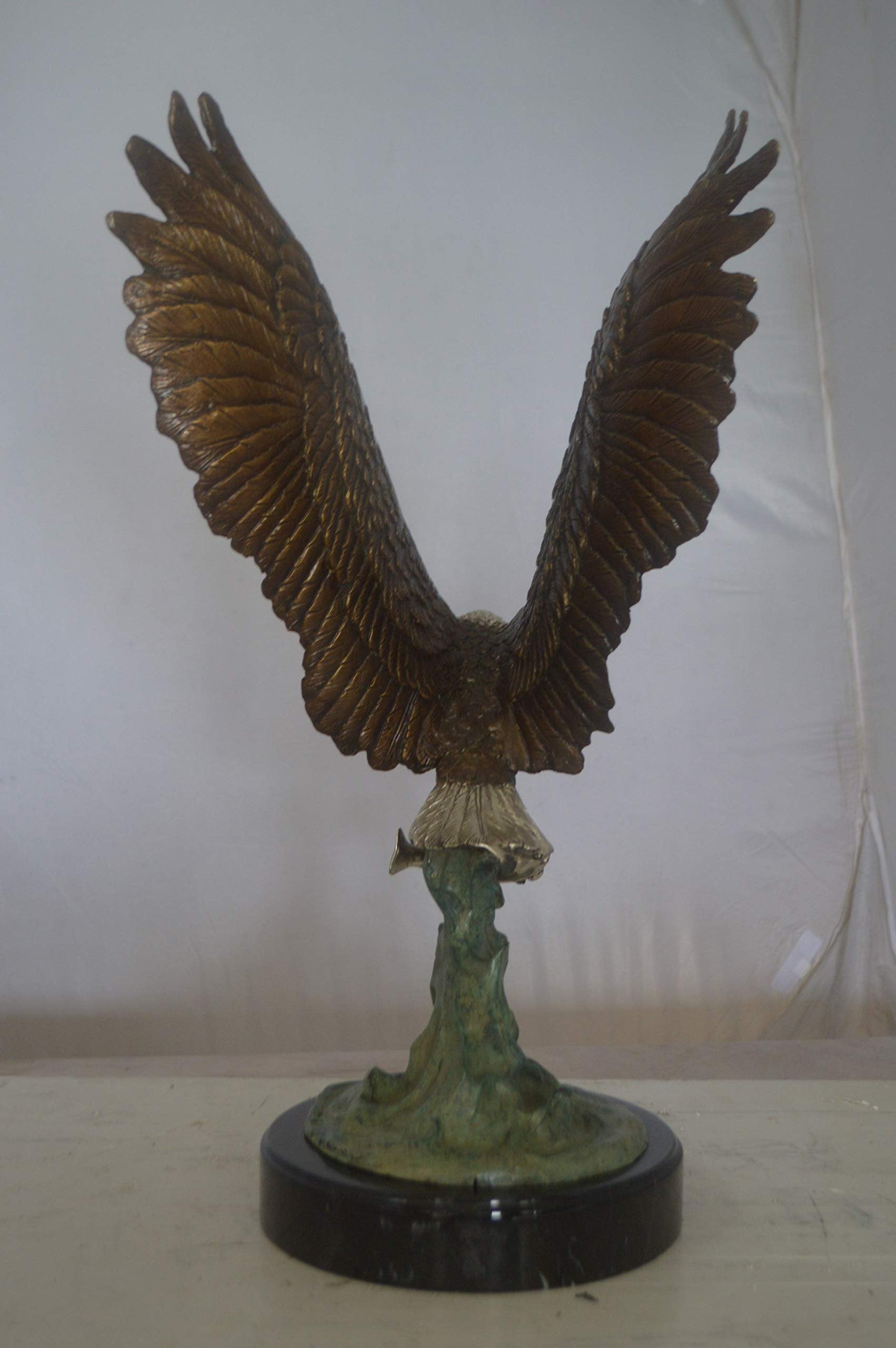 Eagle Catching His Prey from Water Bronze Statue - Size: 14"L x 13"W x 26"H.