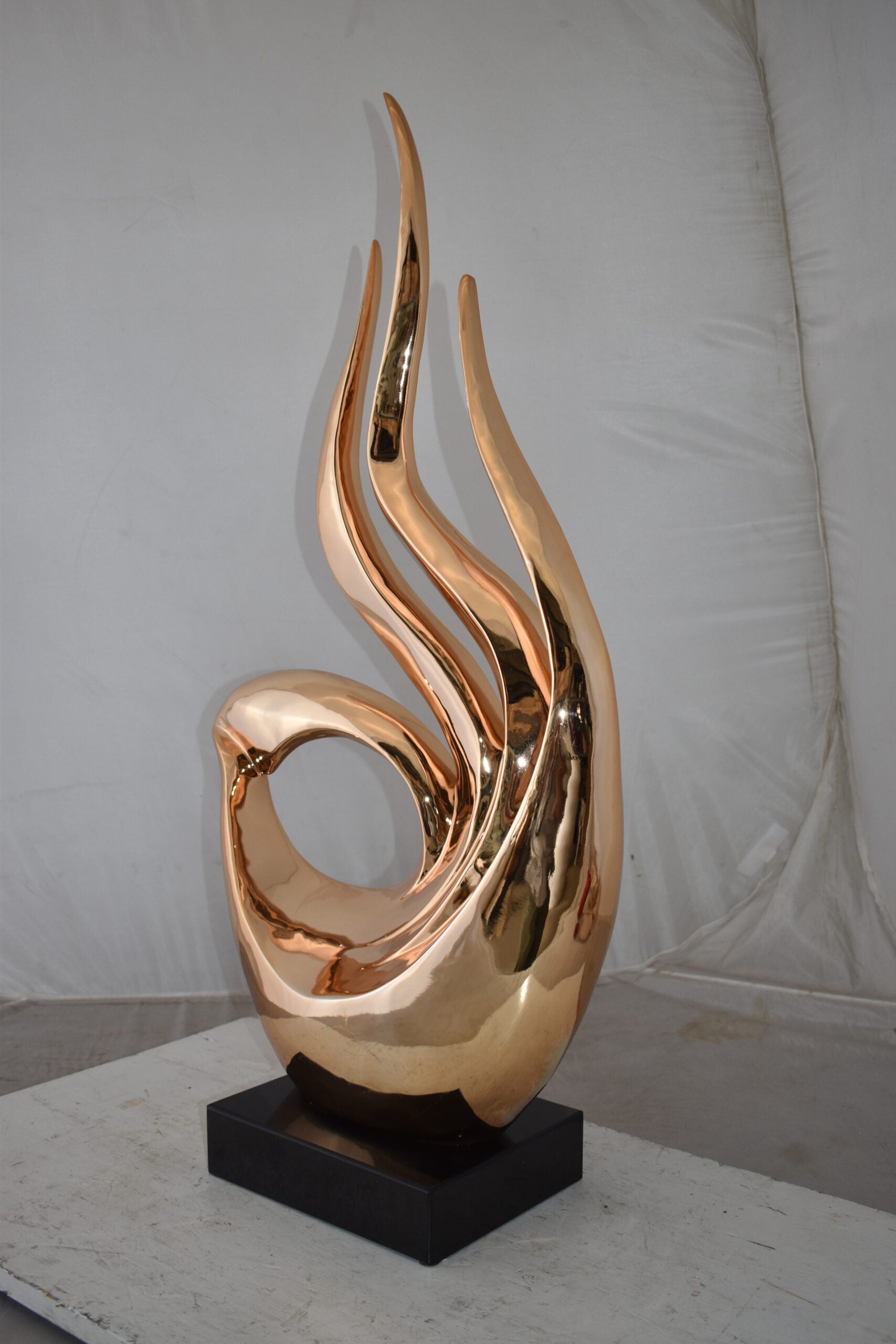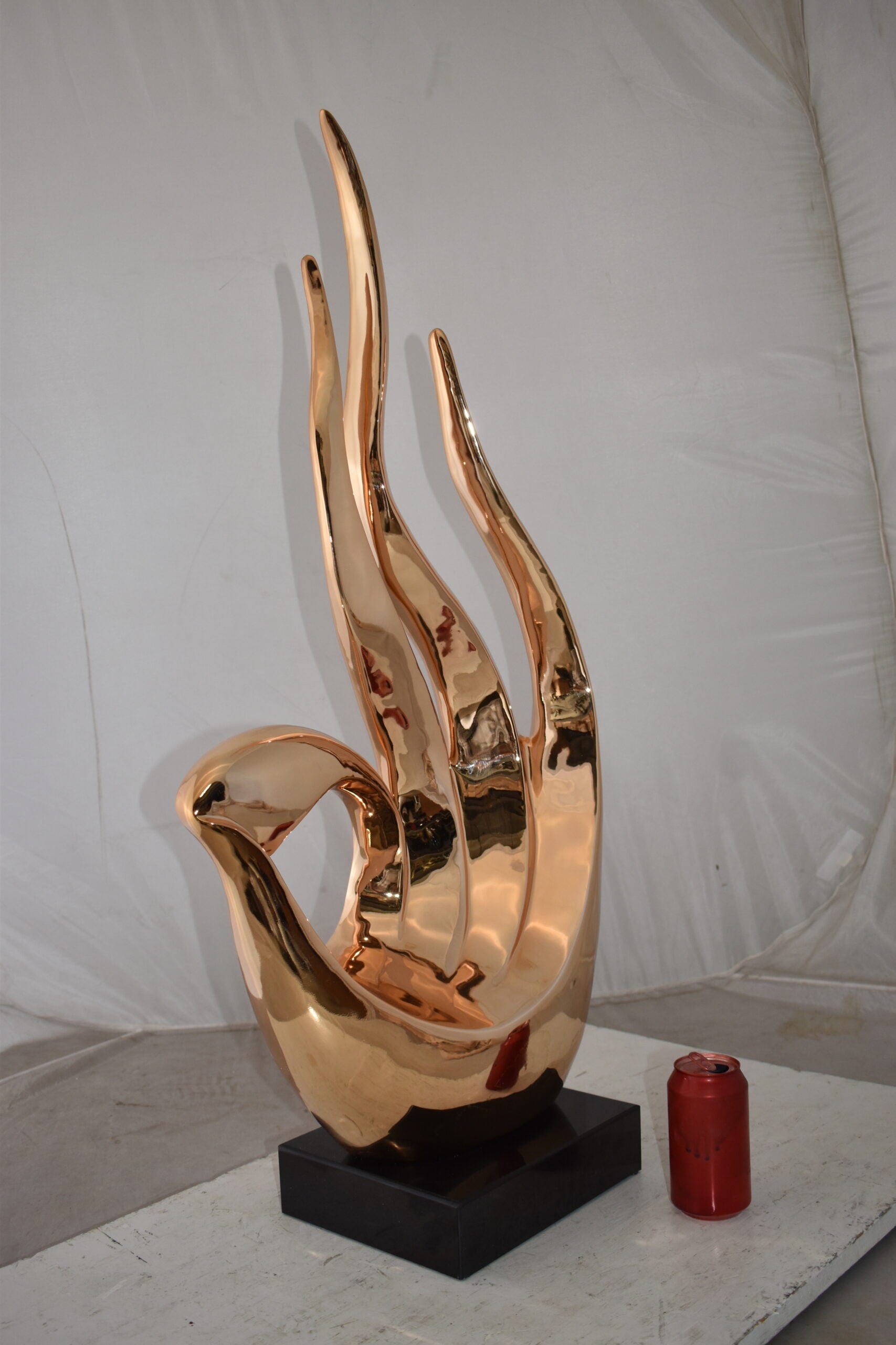 This unique piece leads viewers to be in awe at the different shapes and movements of the statue. From the shining rose gold resin finish to the motion of the extensions of the piece, the pure artistry and quirkiness of this piece make it a modern addition to any space. Size: 19"L x 11"W x 36"H. Weight is: 21Lb