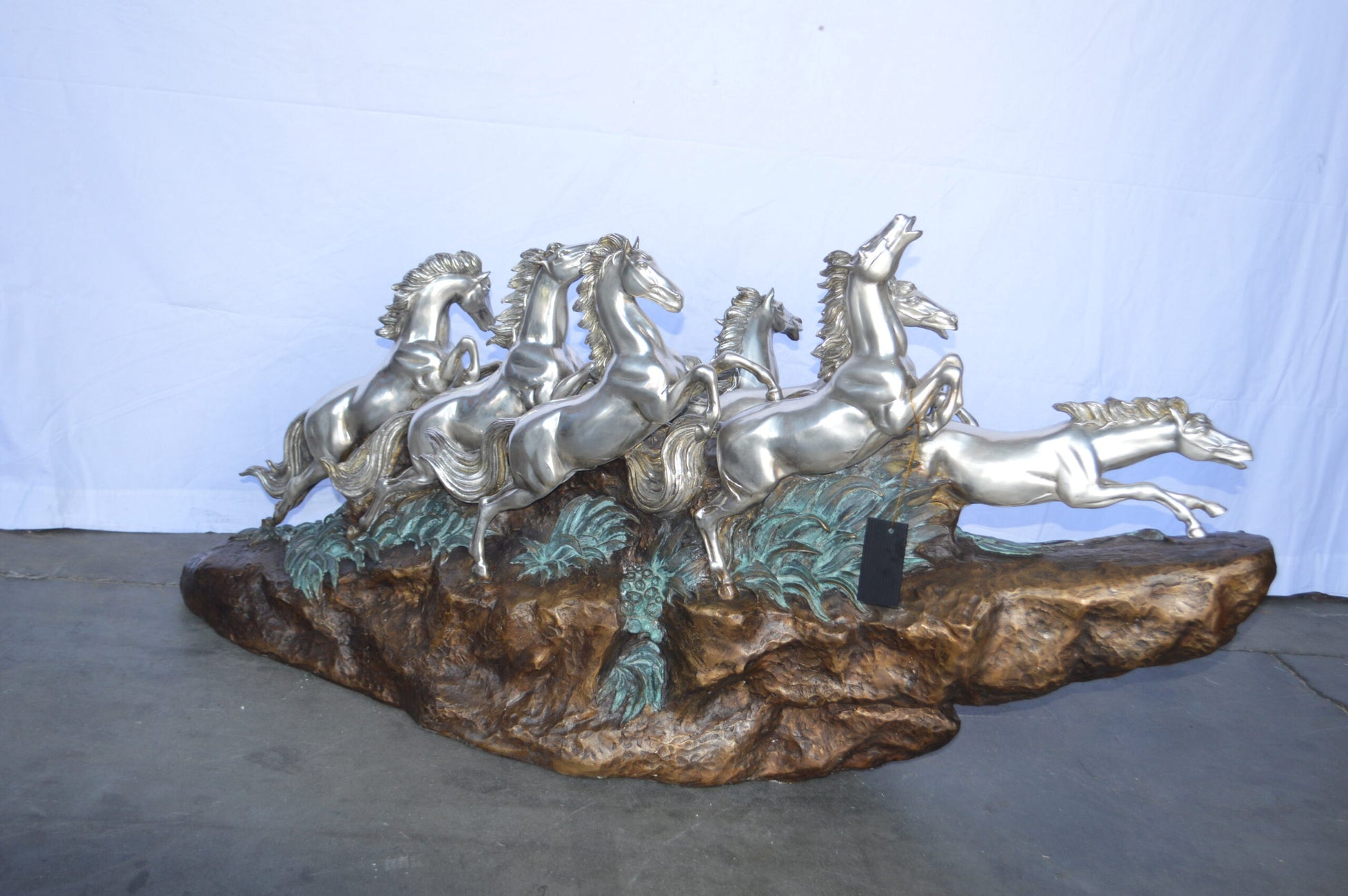 Eight Horses Running Bronze Statue Silver Finish - Size: 59"L x 20"W x 28"H.
