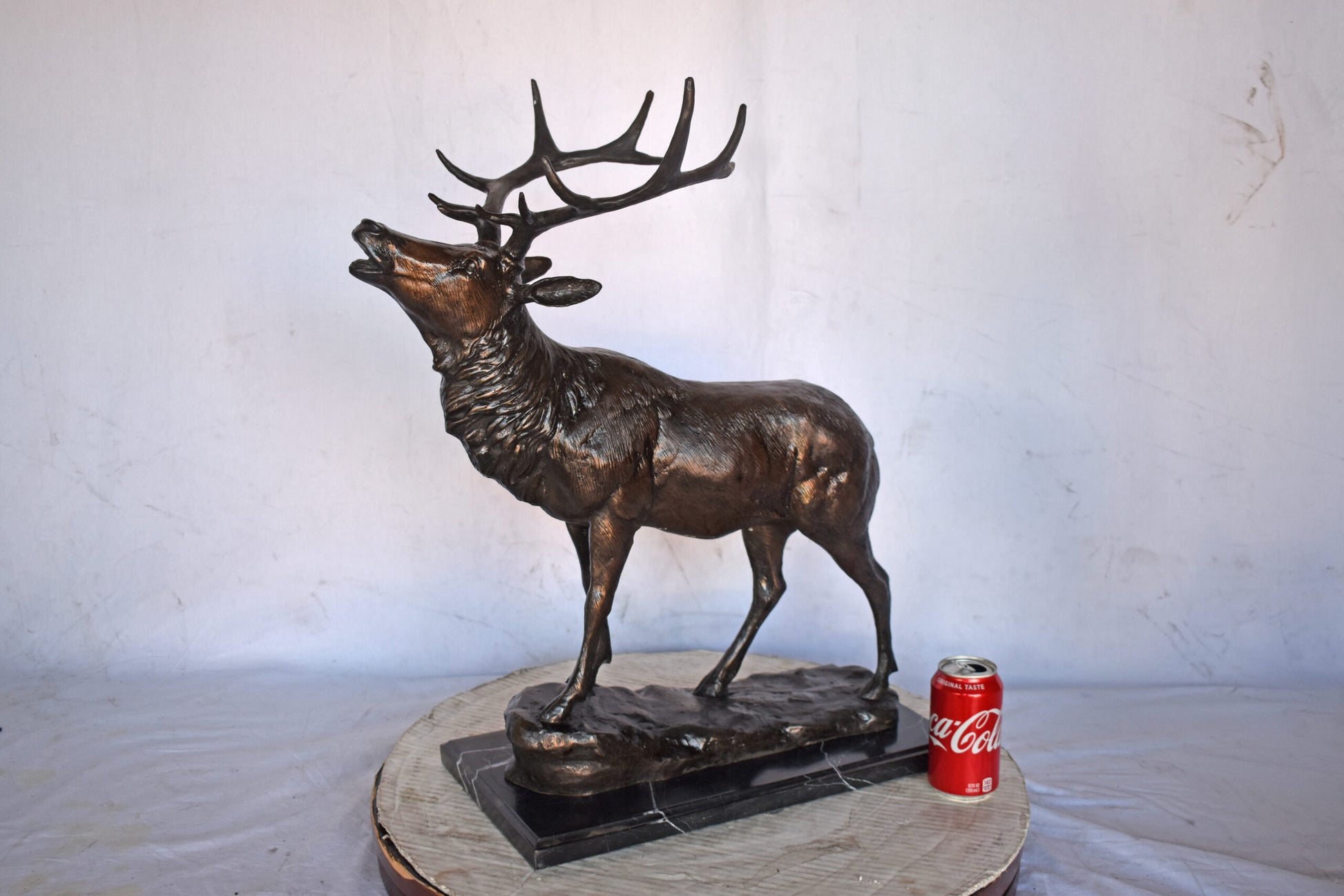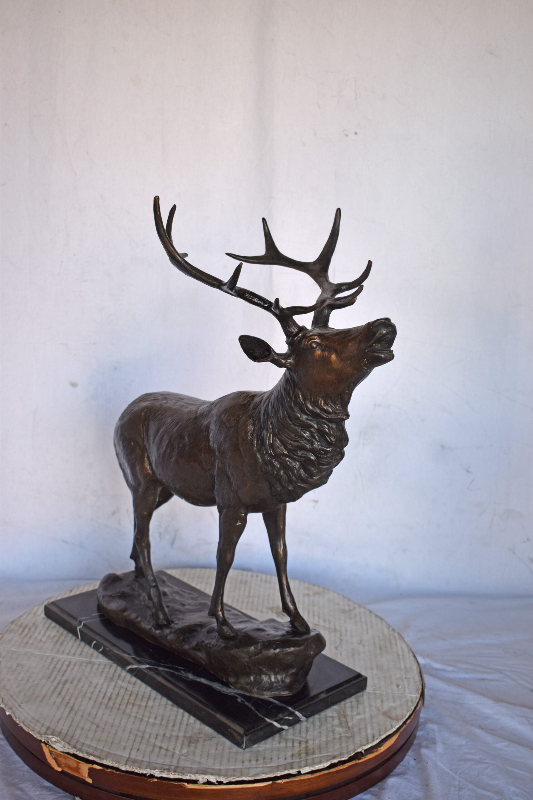 Elk Looking Up Bronze Statue - Size: 20"L x 12"W x 25"H.