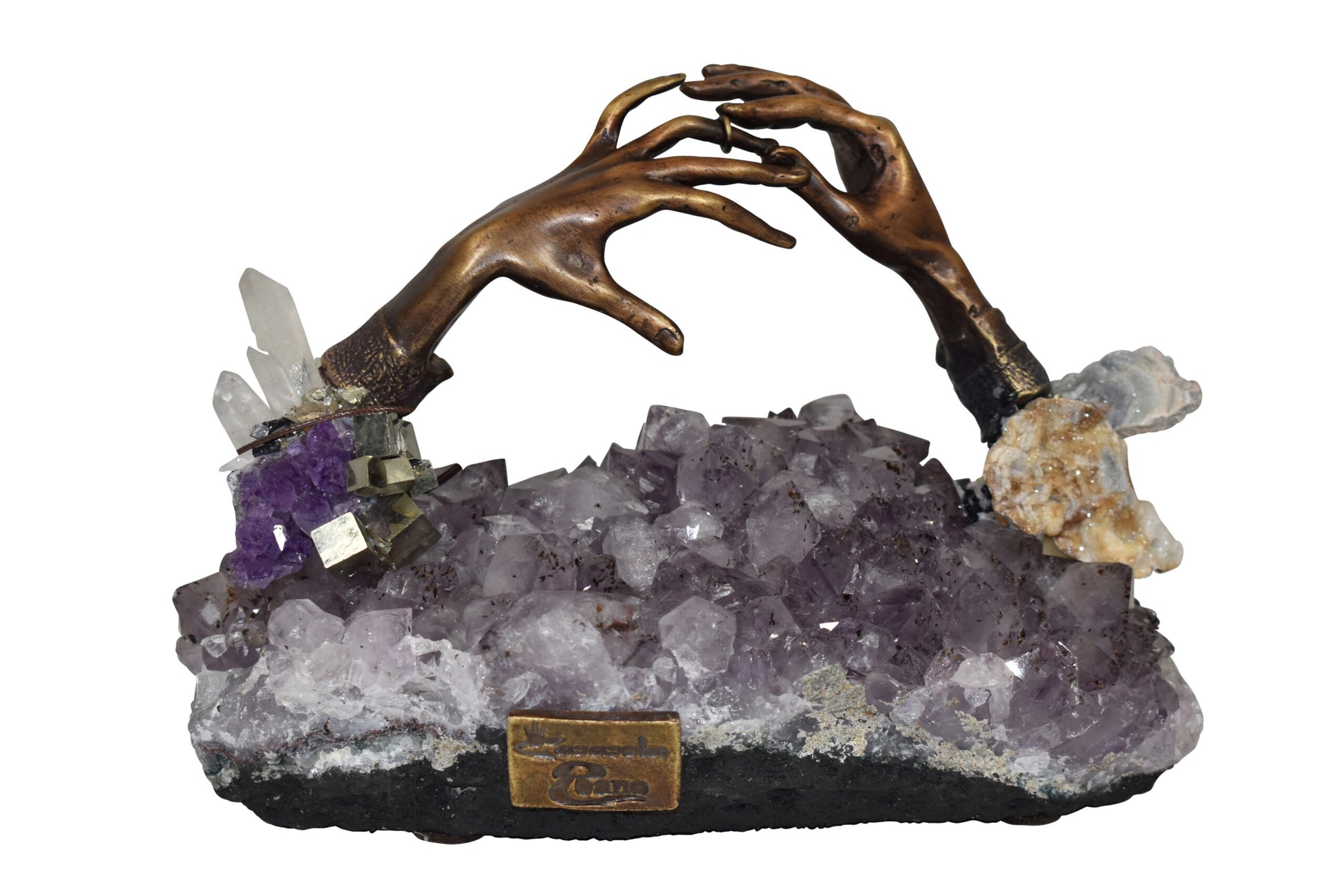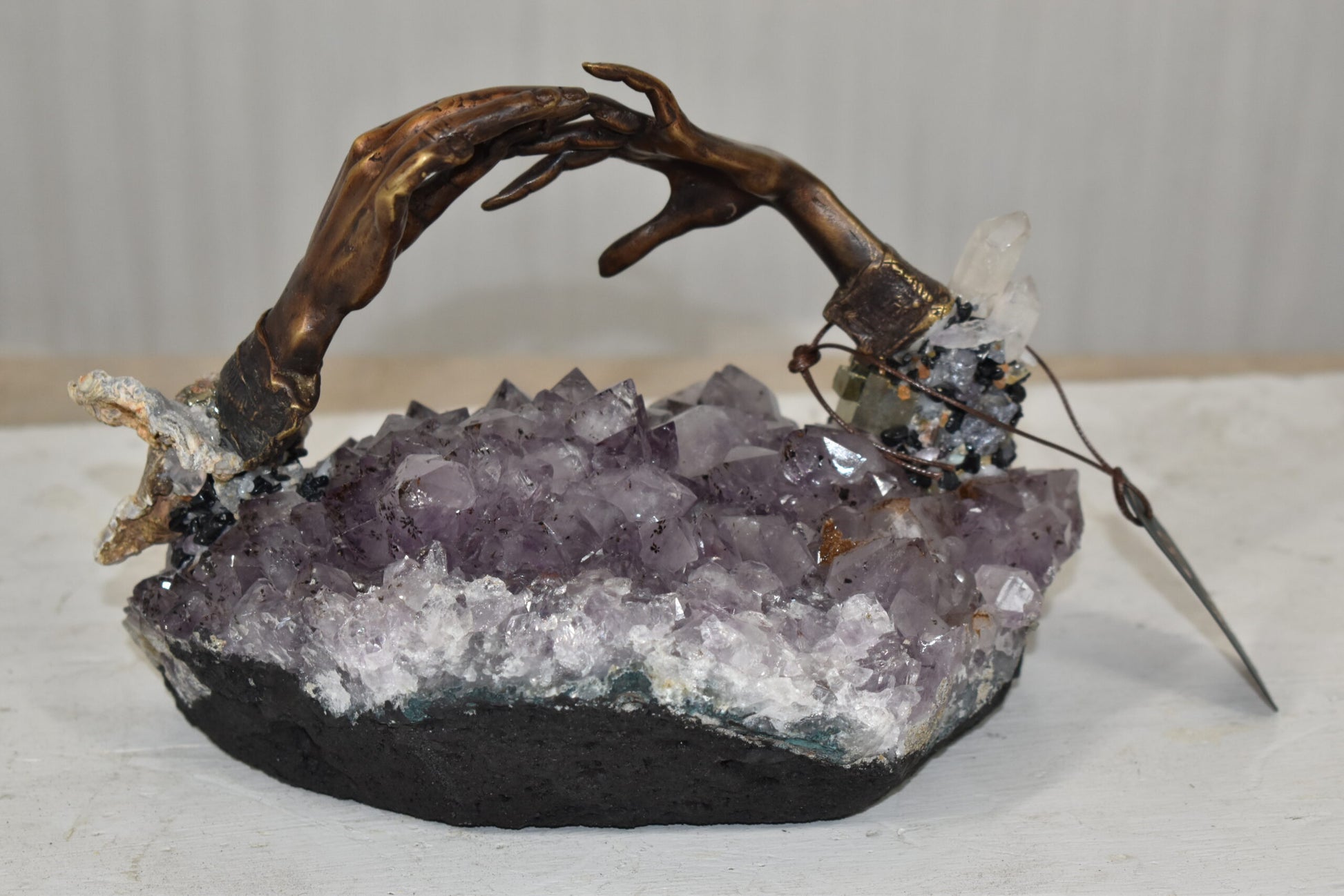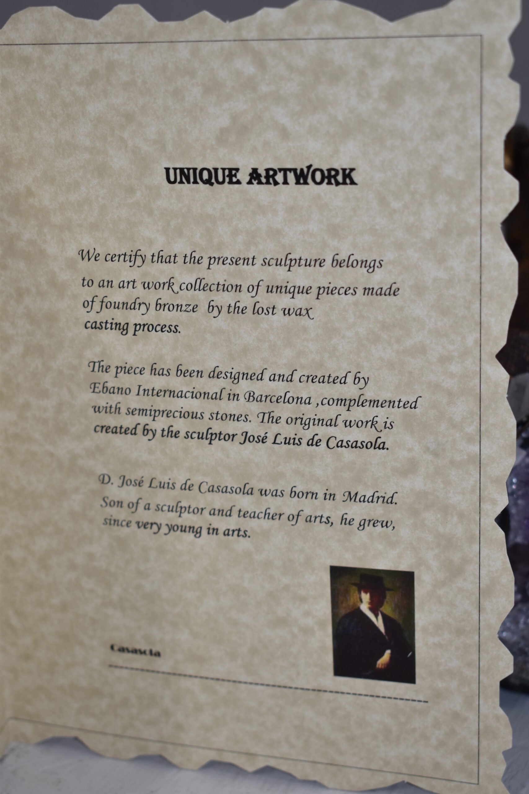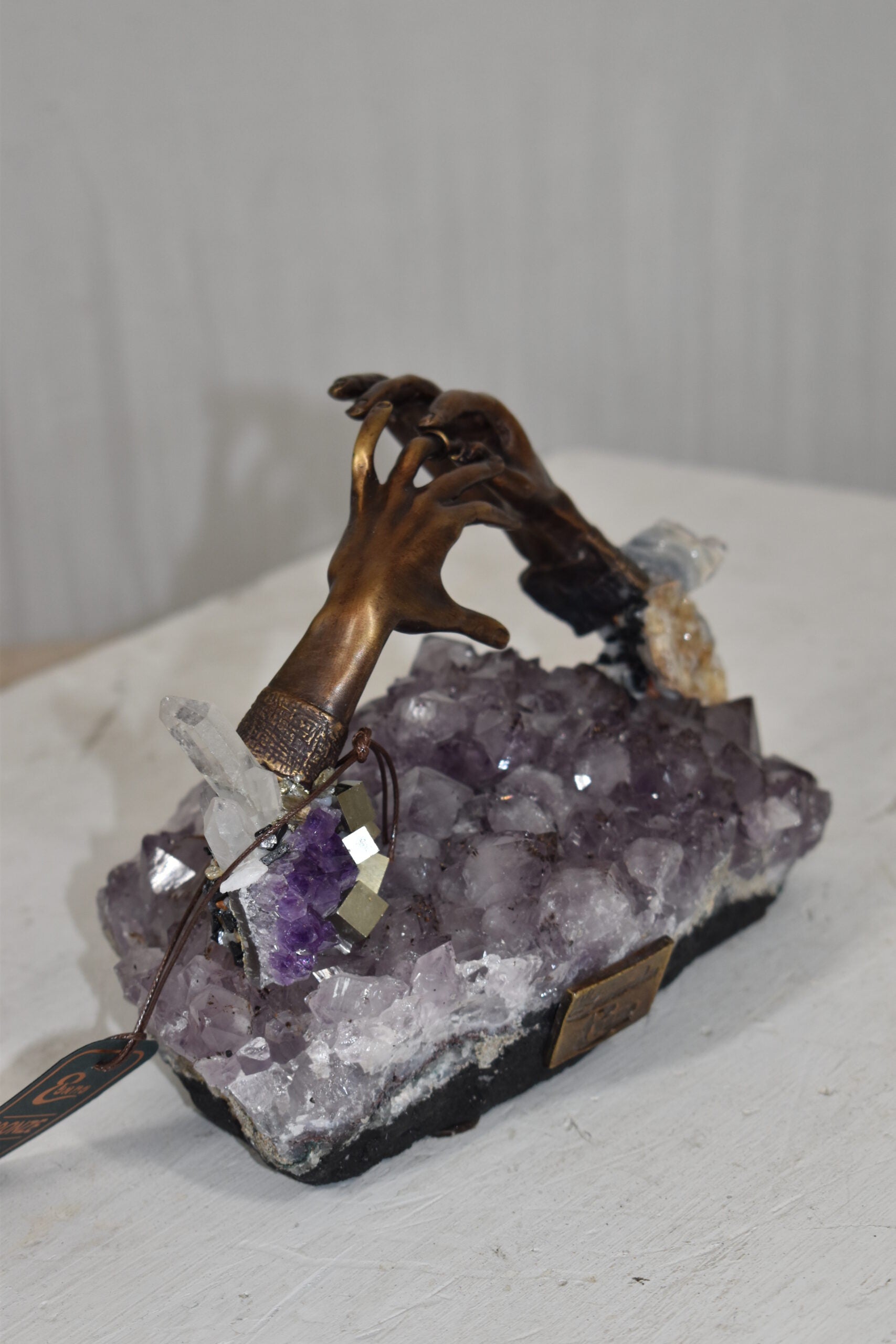 Ebano bronze sculpture, Engagement, from the Vidal collection. An elegant and decorative bronze sculpture decorated with amethyst and rock crystals of an engagement proposal in action. This sculpture comes with a certificate of authenticity. Size: 6"L x 6"W x 9"H. Weight is: 8Lb